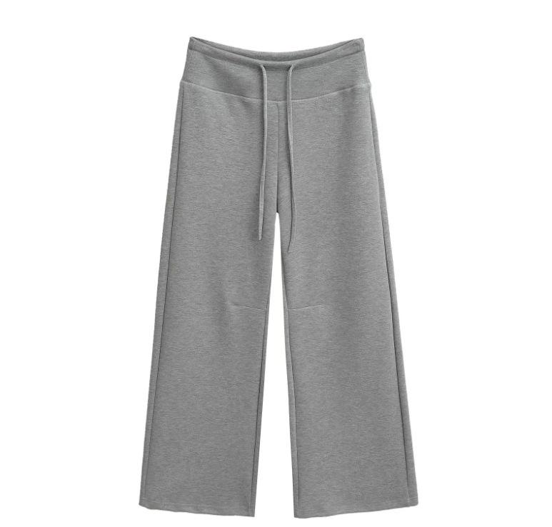 Moda 2025 Pantalones de pierna ancha rectos sueltos para chicas hot que combinan con todo para mujer de cintura alta adelgazantes que realzan la figura con cordón pantalones casuales