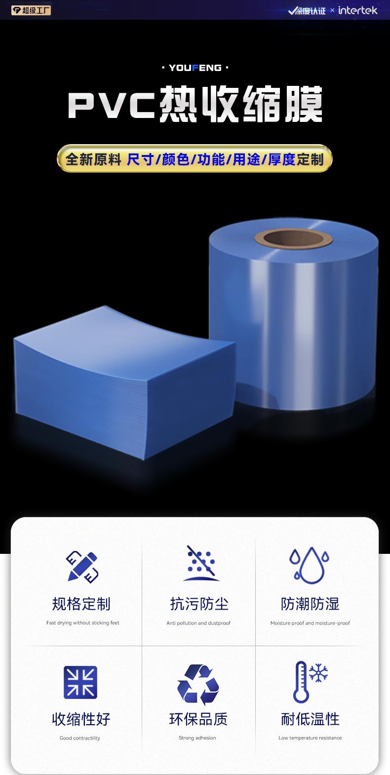 Película termorretráctil de PVC, resistente al agua y al polvo, para accesorios de teléfonos móviles, embalaje enlatado y bandejas frescas.