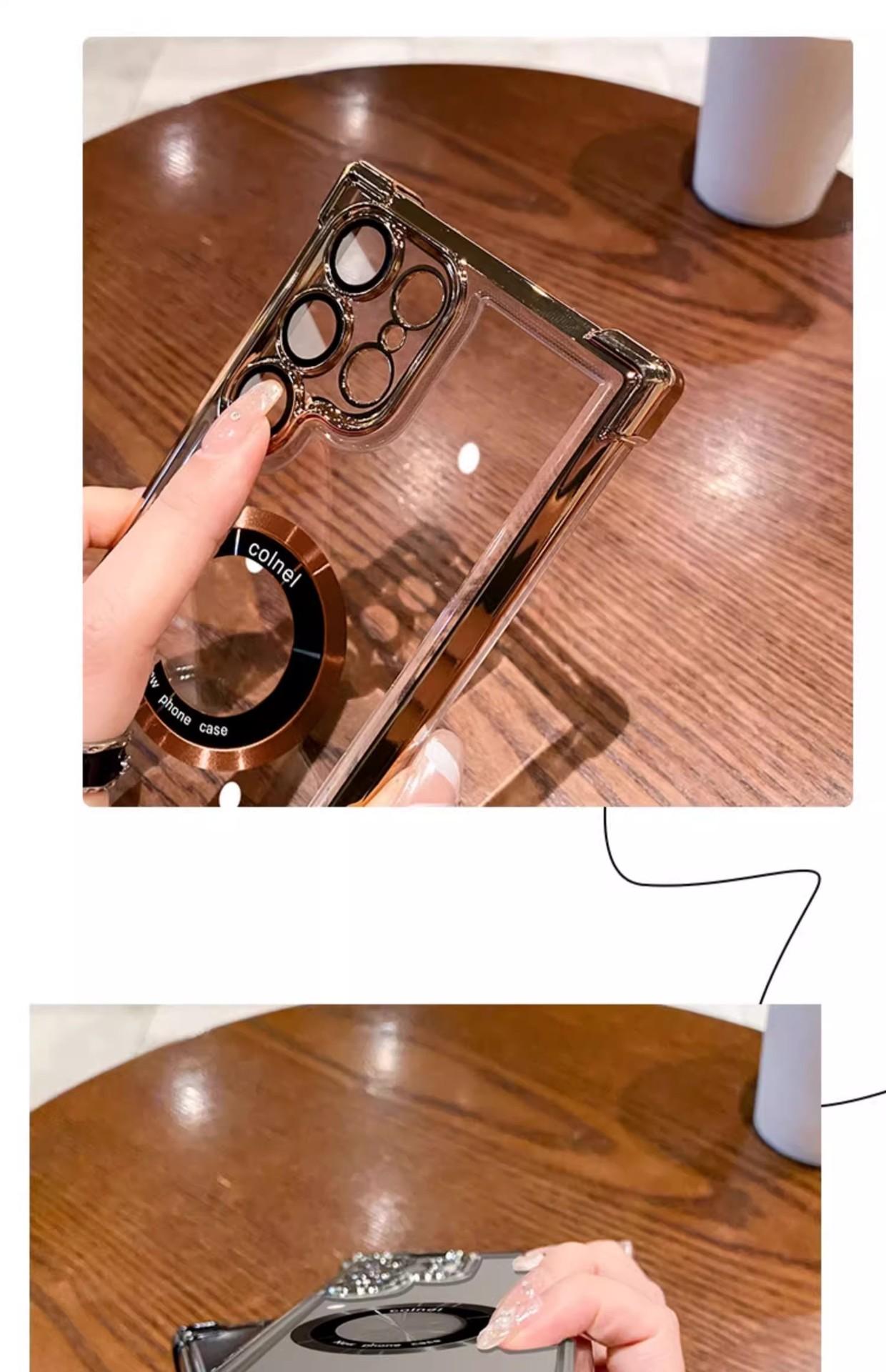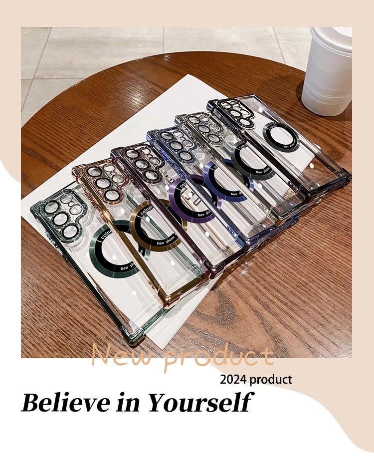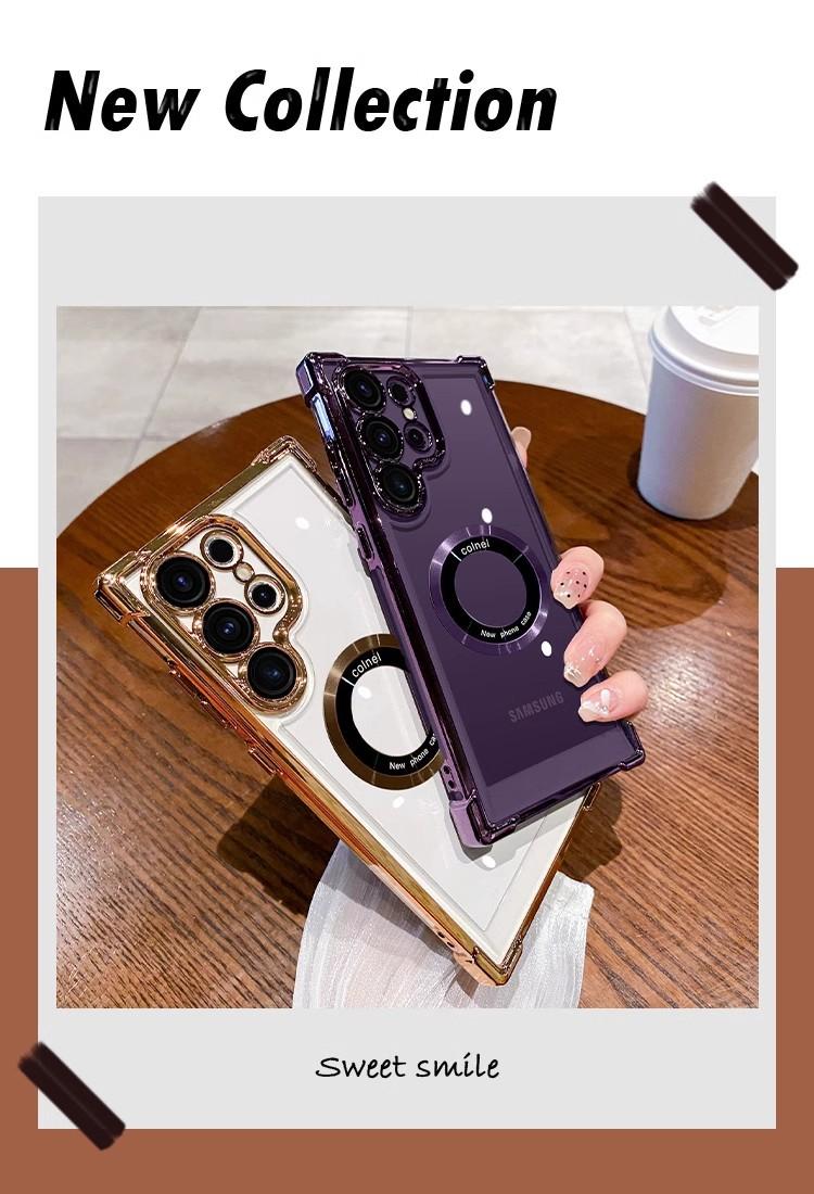 Carcasa para teléfono Samsung S25ultra con airbag de cuatro esquinas anticaída S24, carcasa magnética galvanizada S22 transparente