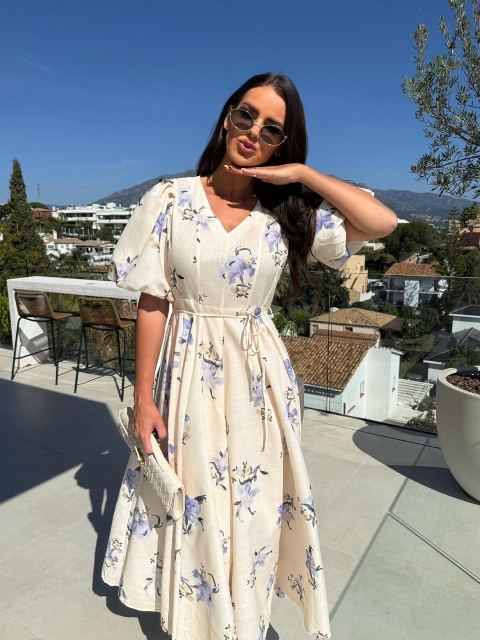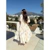 Vestido de manga corta con estampado de tirantes anchos, disponible en 2025 unidades en AliExpress, Europa y América.