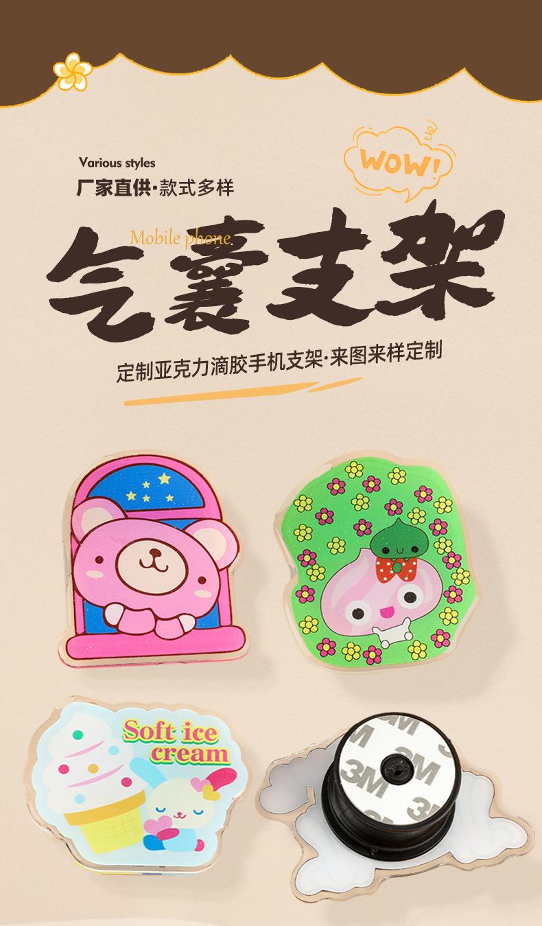 Lindo soporte adhesivo de airbag para teléfono móvil, bricolaje, acrílico, pegamento de gota, forma de dibujos animados, soporte telescópico plegable, venta al por mayor