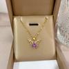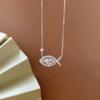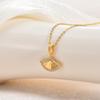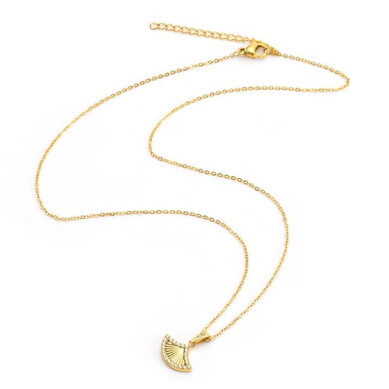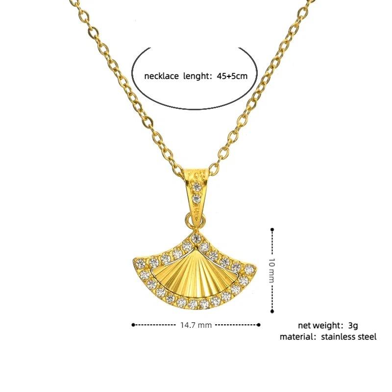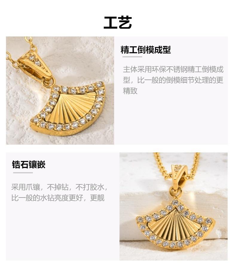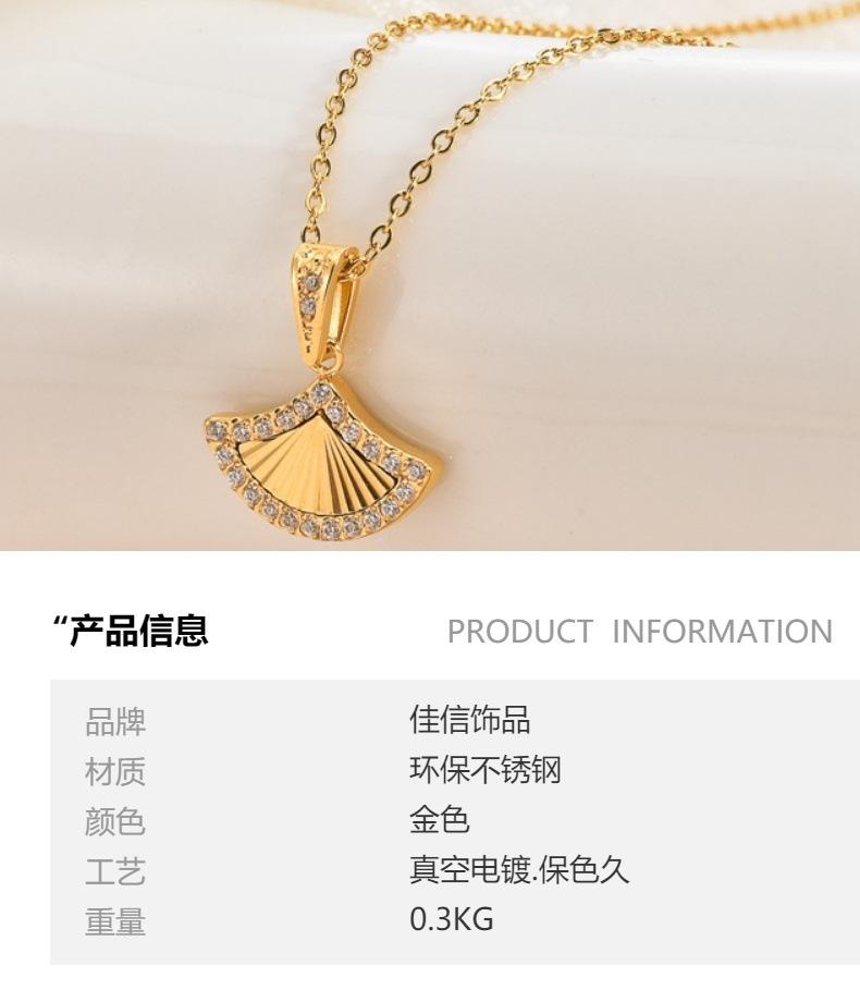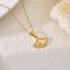 Collar de acero inoxidable chapado en oro de 18k con colgante en forma de abanico incrustado de diamantes de grano, estilo nicho de alta gama, estilo ins, joyería versátil para mujer