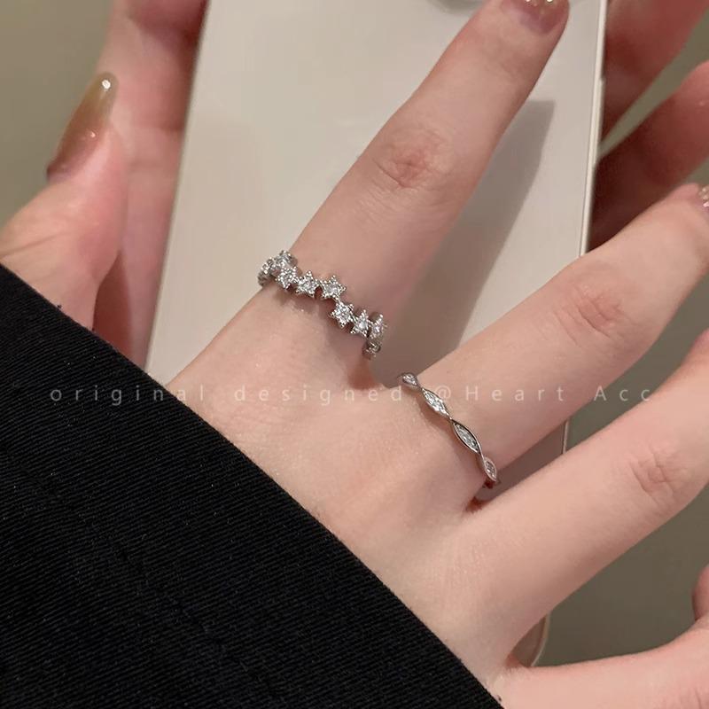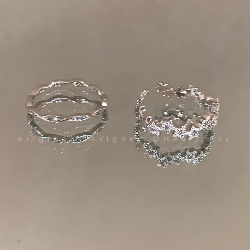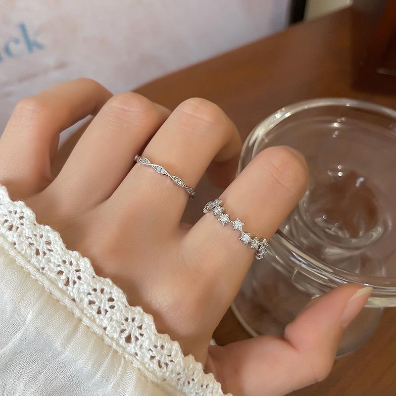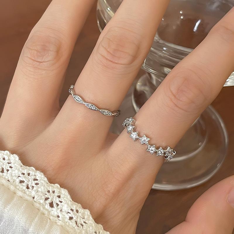 Gypsophila zircon open ring, Twist zircon open ring, Star twist zircon ring set of two