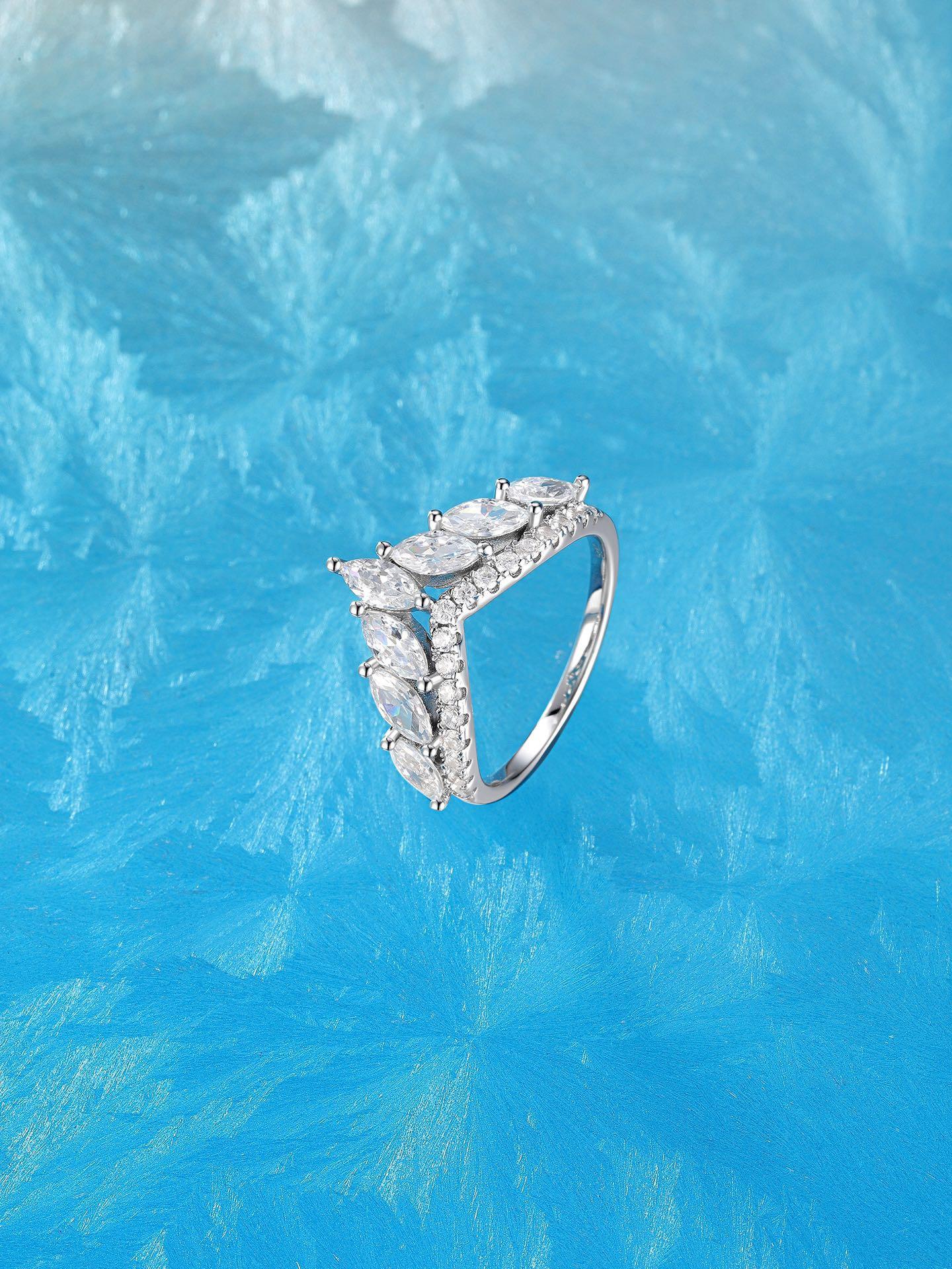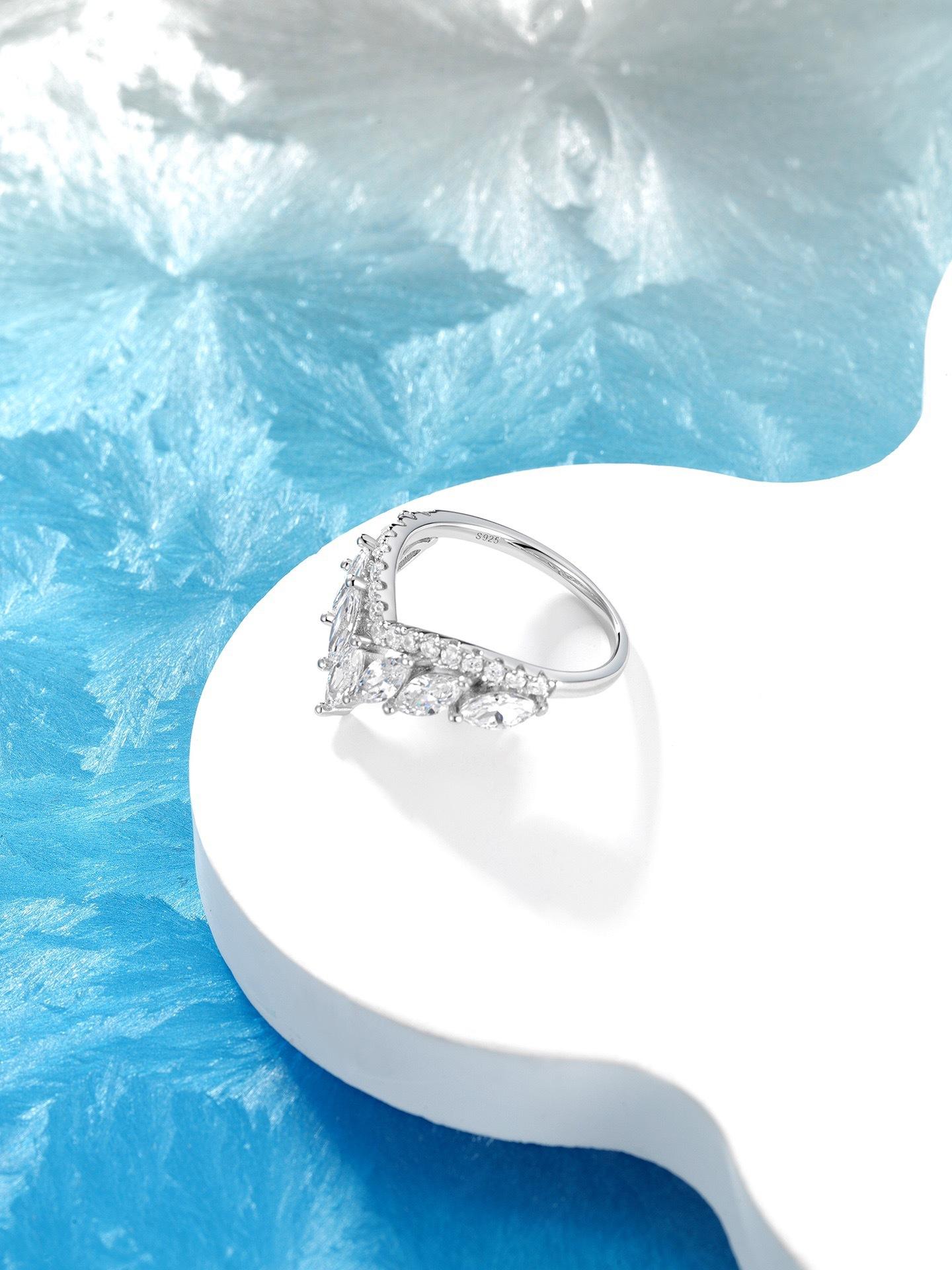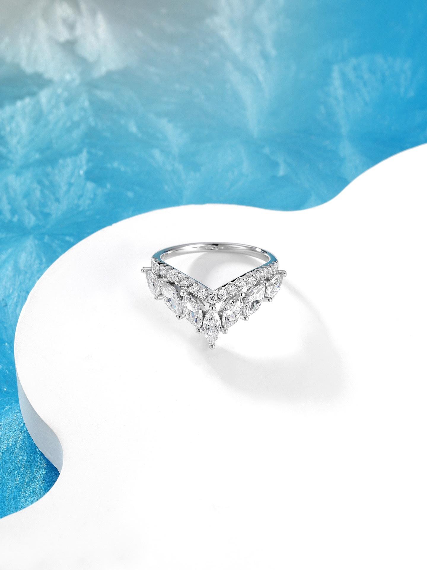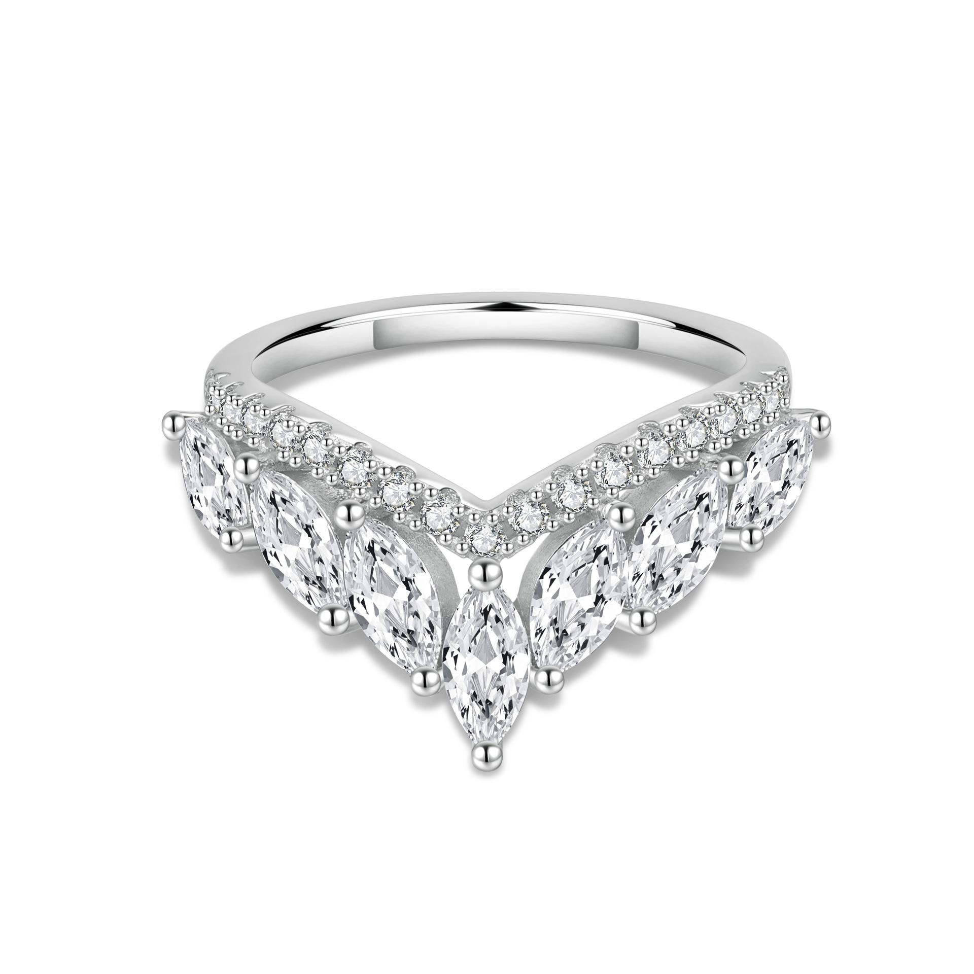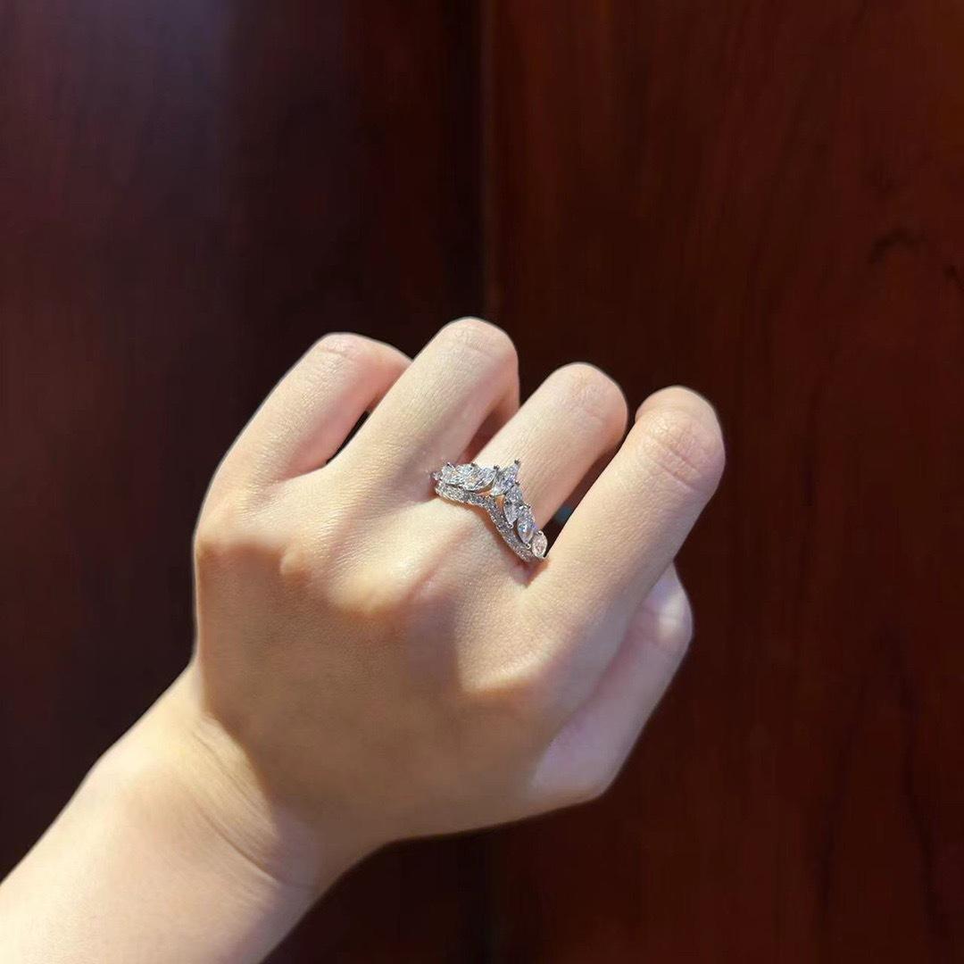 Anillo Corona de Diamantes Rai de Diamante Completo en Forma de V de Gota de Agua Nicho para Mujer Plata de Ley 925 Diamante Ojo de Caballo Anillo de Diamantes en Forma de V Lujo Ligero Sentido de Alta Gama