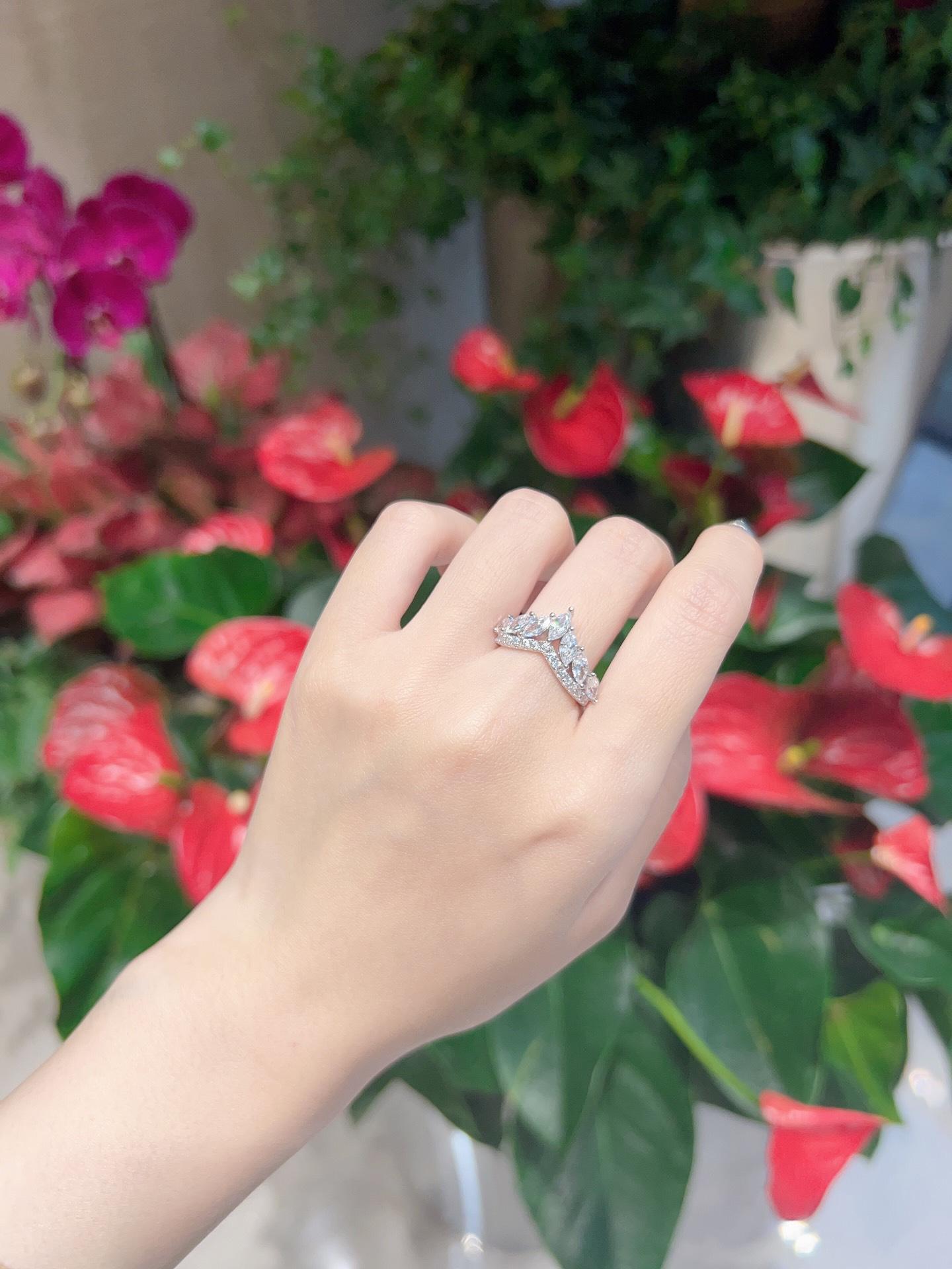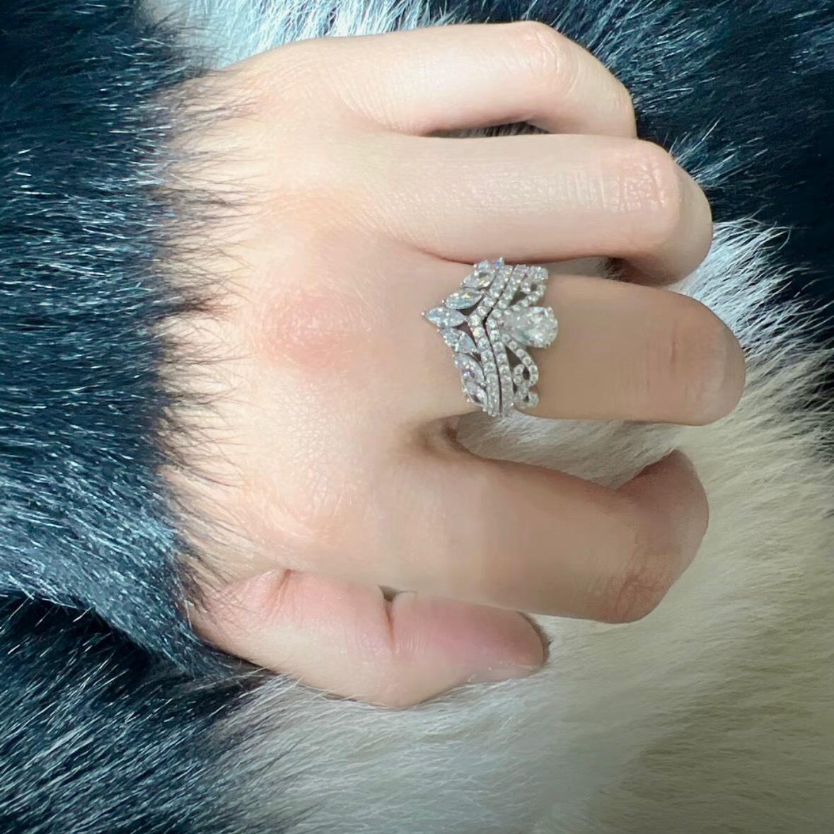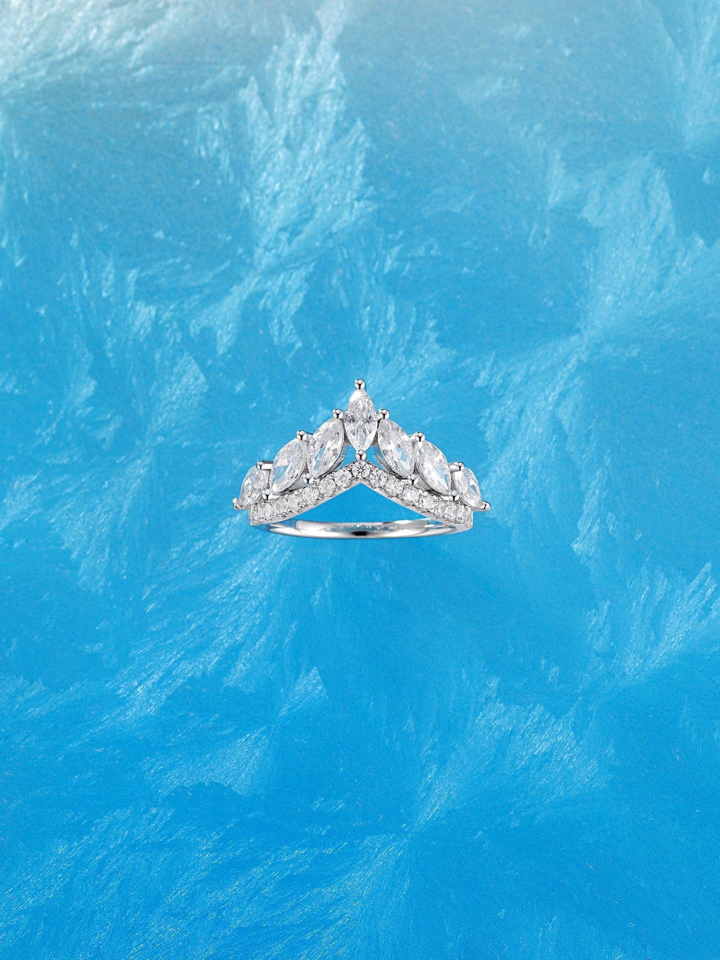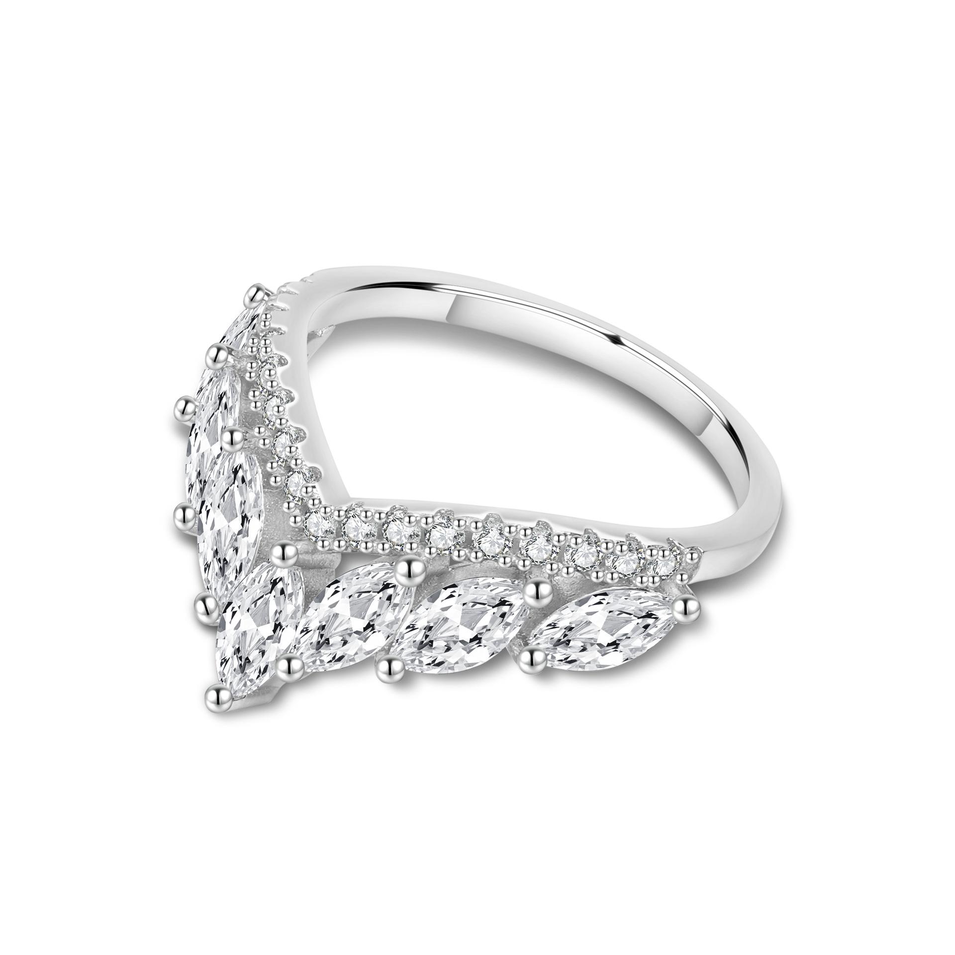 Anillo Corona de Diamantes Rai de Diamante Completo en Forma de V de Gota de Agua Nicho para Mujer Plata de Ley 925 Diamante Ojo de Caballo Anillo de Diamantes en Forma de V Lujo Ligero Sentido de Alta Gama