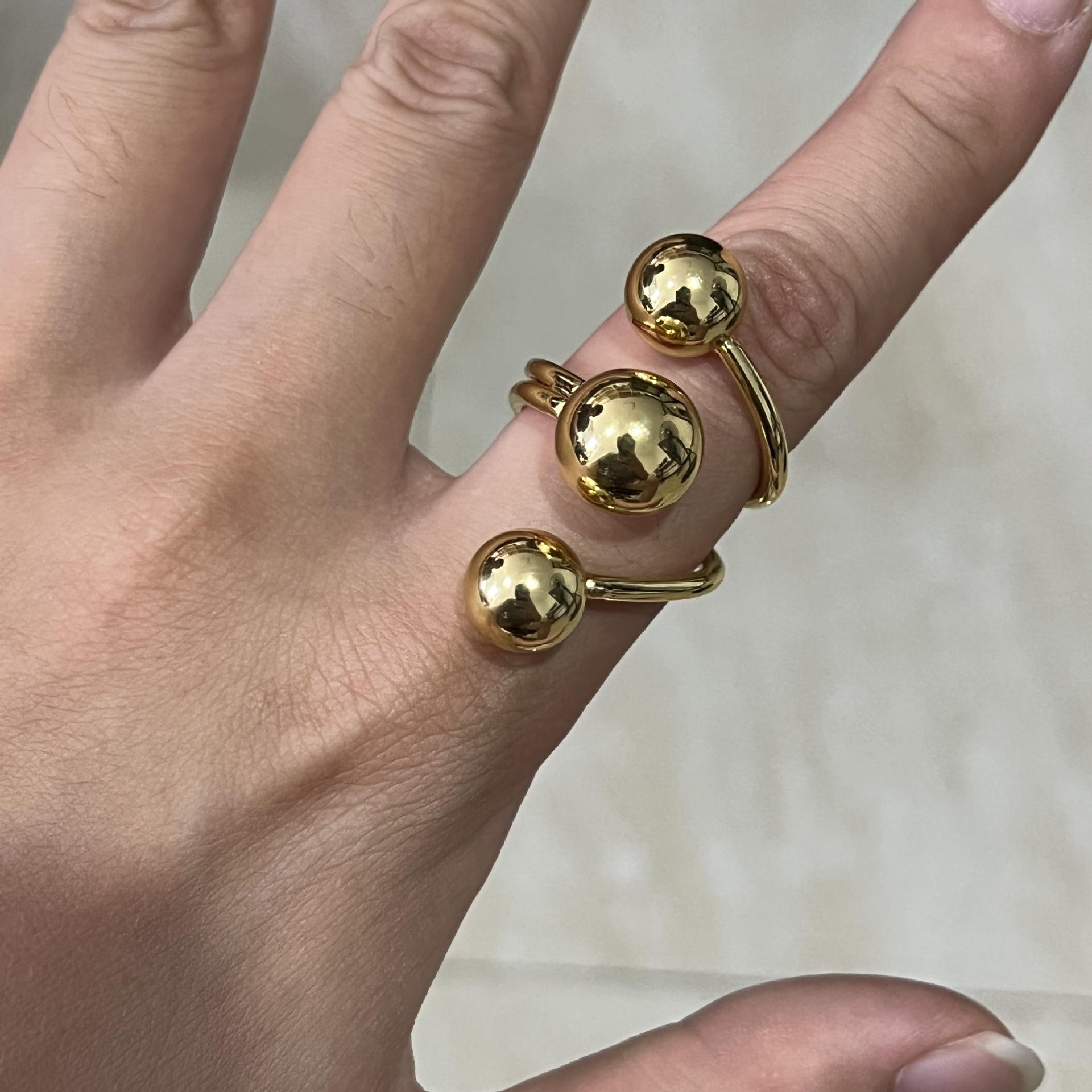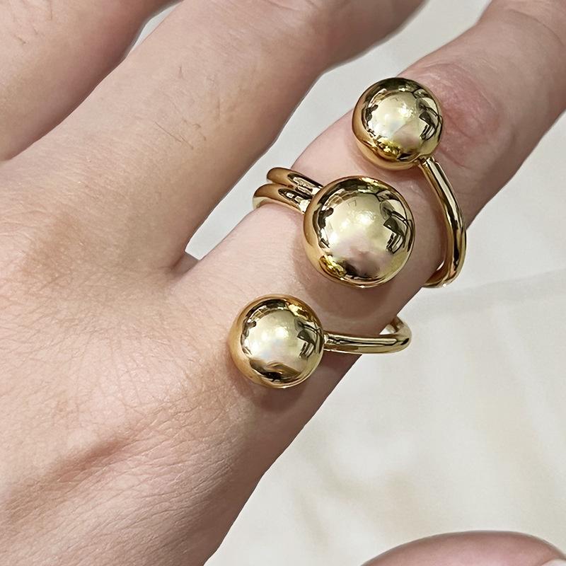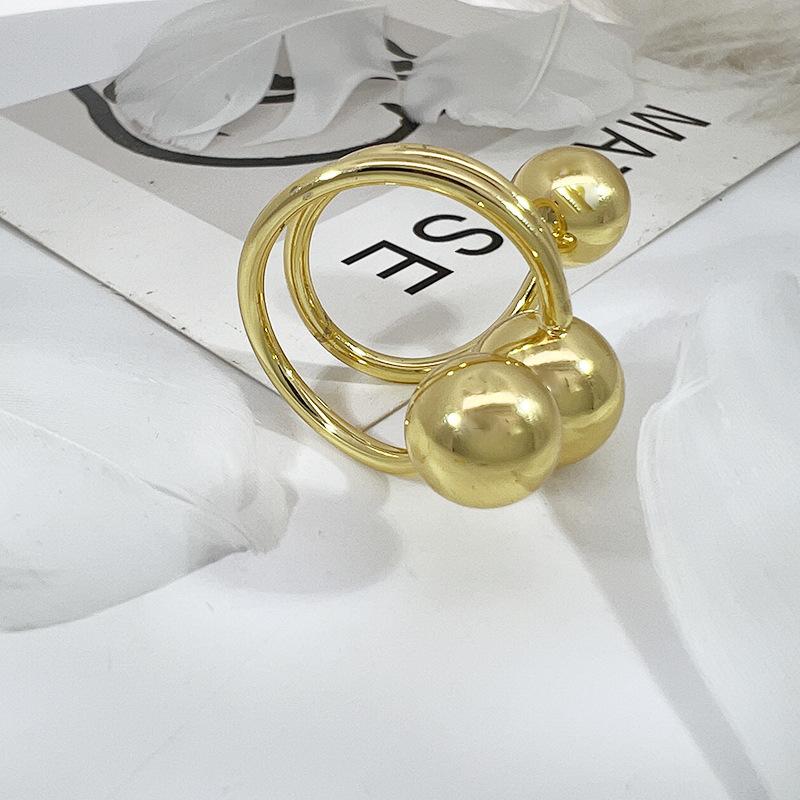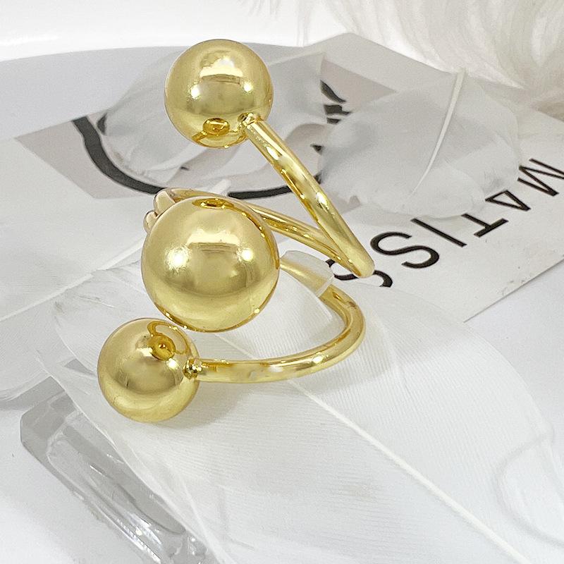 Nuevo Anillo Exagerado Europeo y Americano Transfronterizo Anillo de Dedo Índice Irregular de Tres Bolas de Moda para Mujer Anillo Exagerado Ajustable