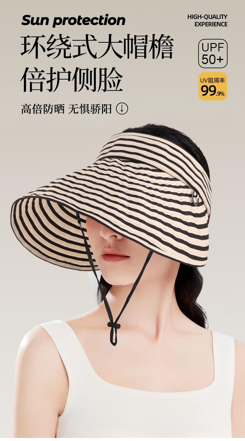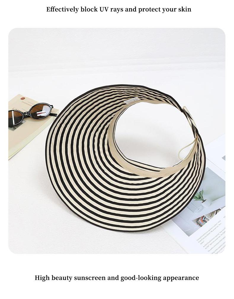 Nuevo Sombrero de Sol de Copa Hueca a Rayas Sombrero de Sol Deportivo para Ciclismo al Aire Libre Verano Estilo Caliente de Celebridad de Internet Sombrero Ajustable de Ala Ancha
