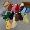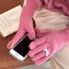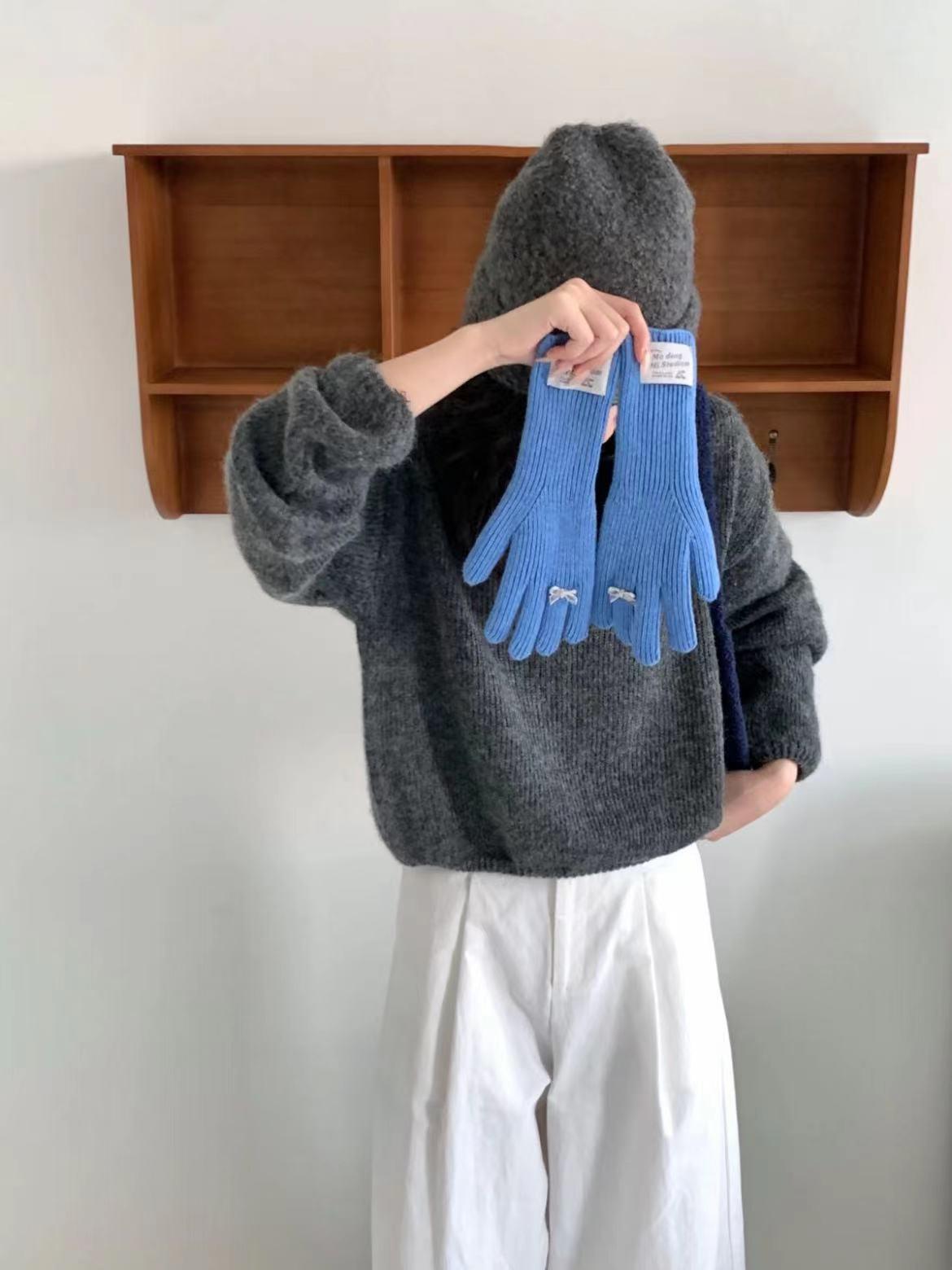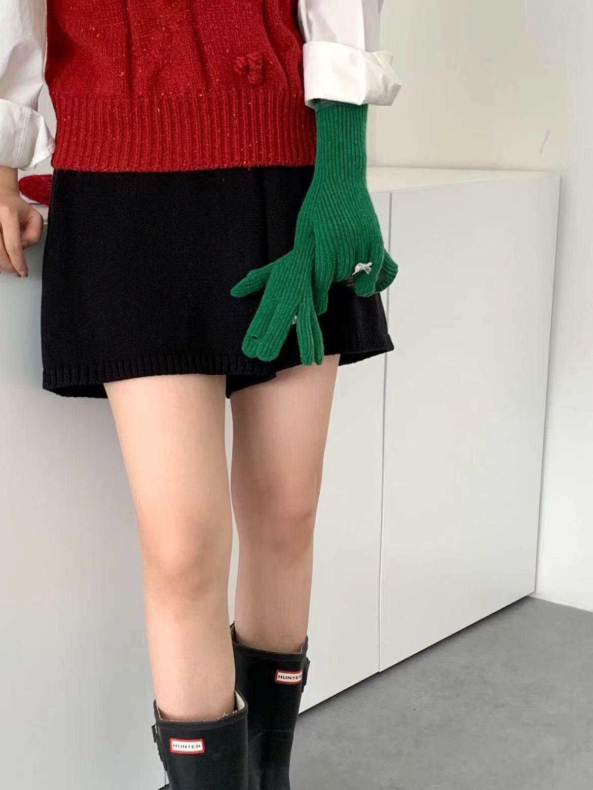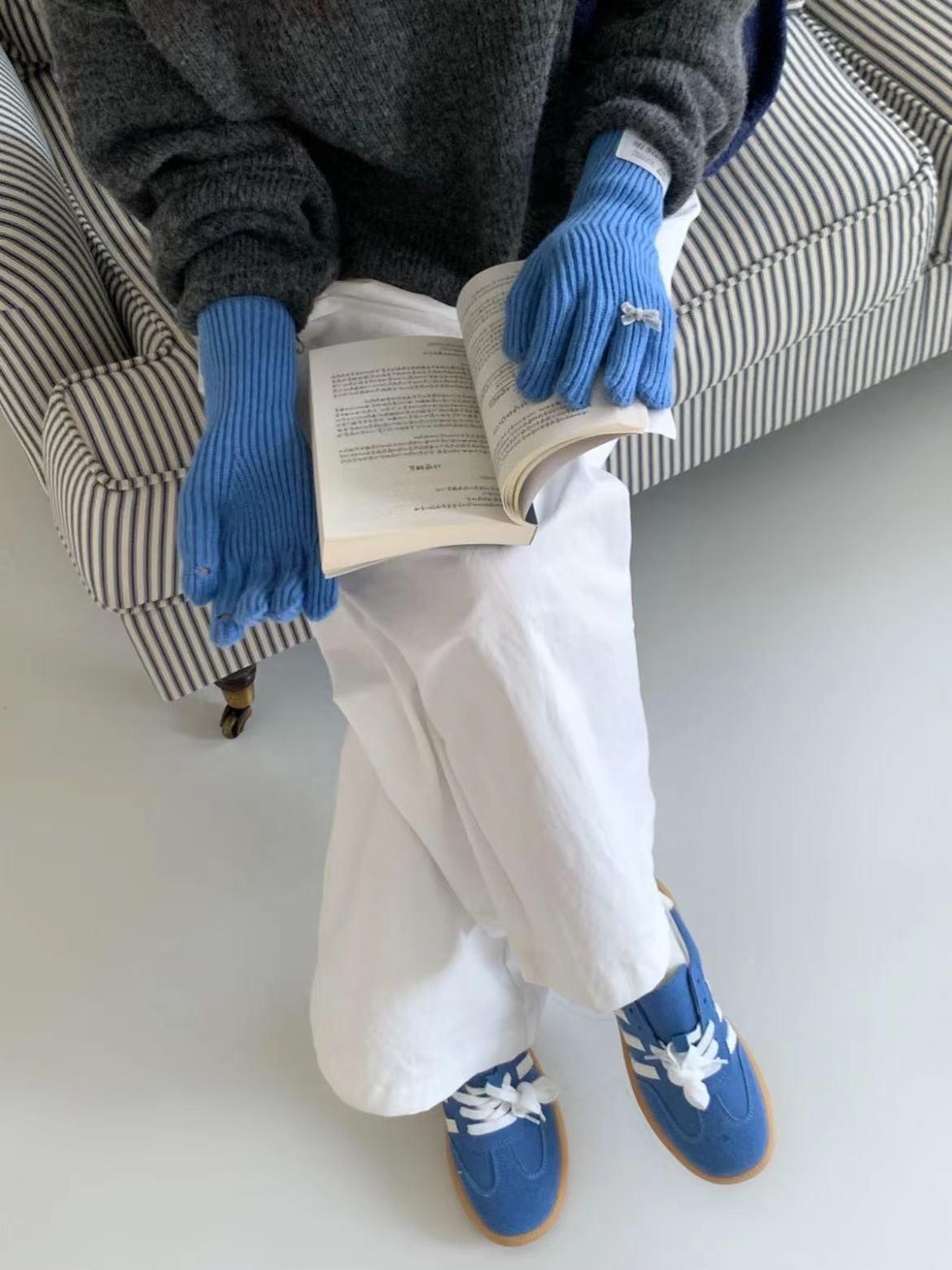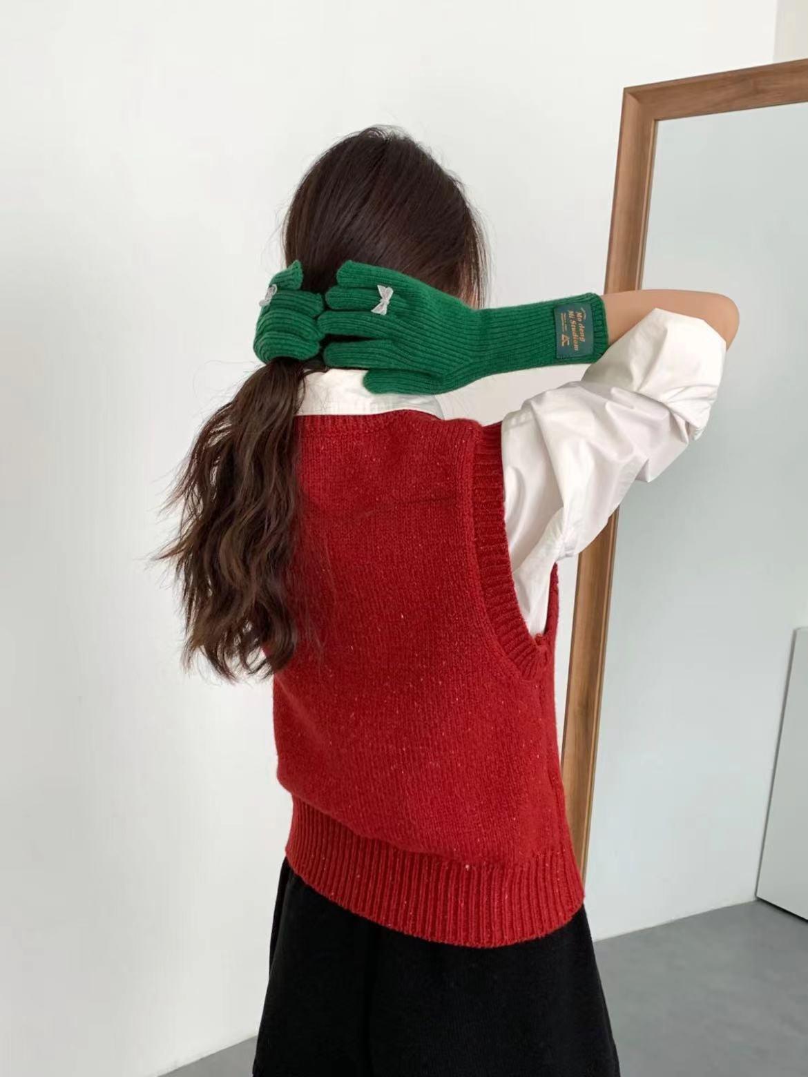 Guantes de lana de punto cálidos con cinco dedos, estilo coreano Miu, estilo dulce, con lazo largo y resistente al frío y pantalla táctil para mujer