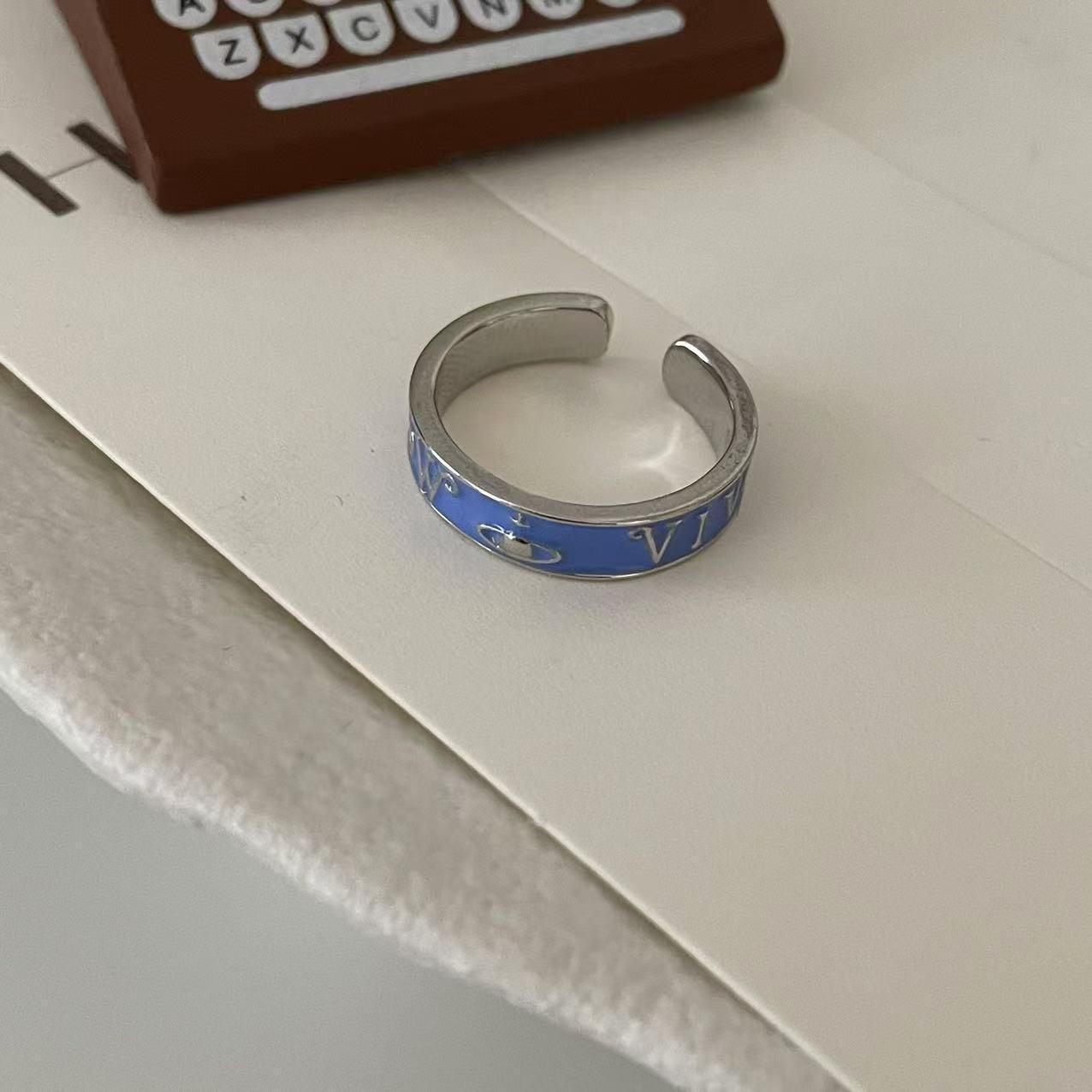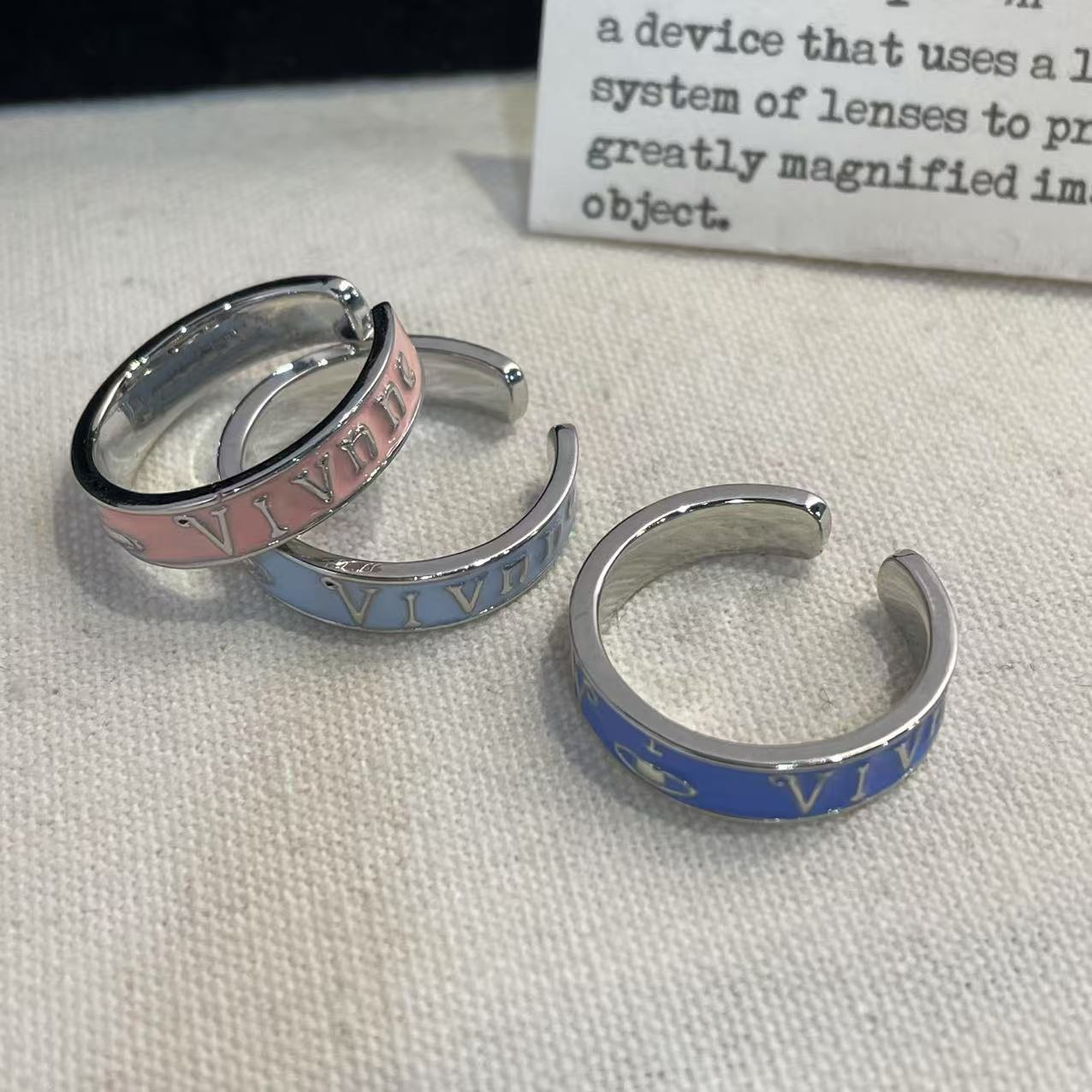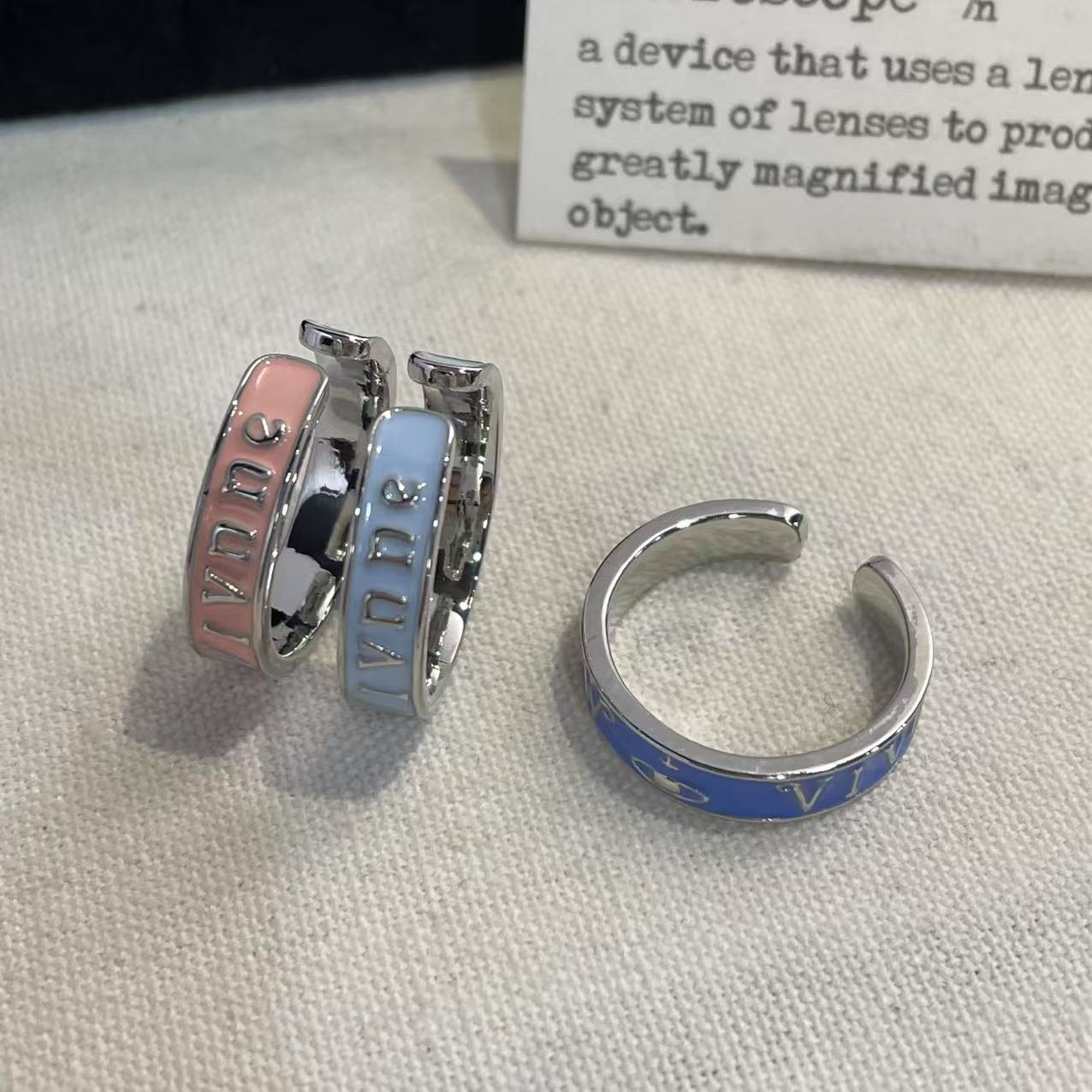 Nuevo anillo Saturno con apertura de aceite en forma de gota tricolor para chicas, estilo coreano, primavera y verano, anillo con letras tridimensionales que combina con todo.