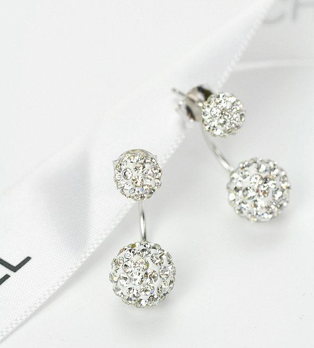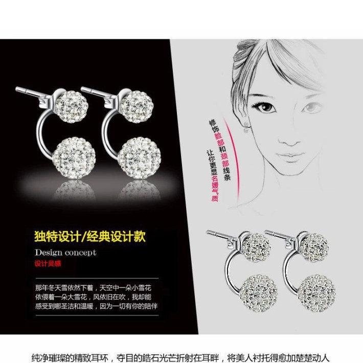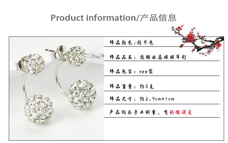 Pendientes de bola de cristal bañados en plata, estilo coreano, exquisita joyería para la oreja, pendientes colgantes de bola de diamante Shambhala, pendientes de moda al por mayor