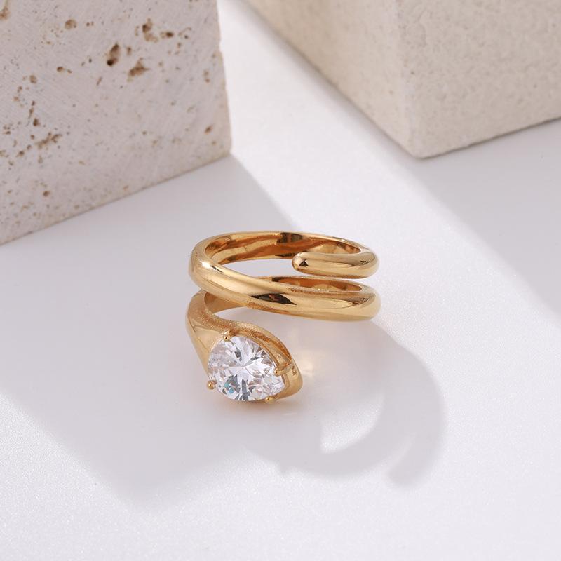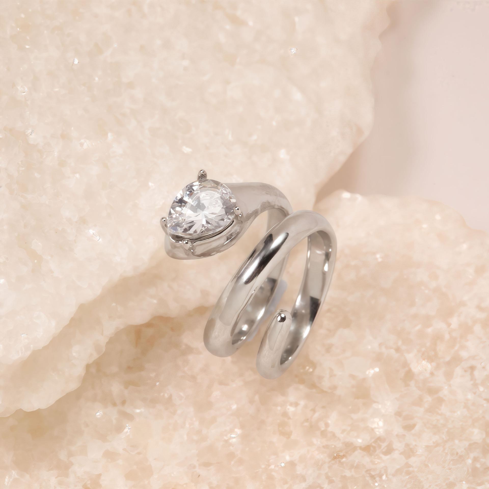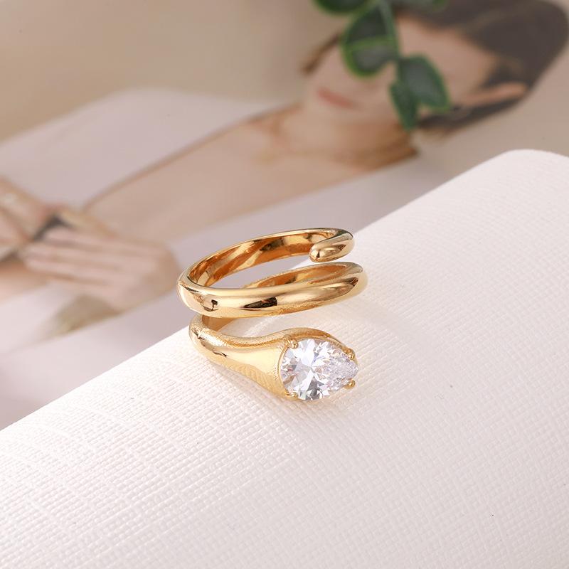 Anillo de Serpiente de Diamantes de Lujo Ligero de Moda Diseño Nicho Simple Coreano Elegante Acero Titanio Joyería de Mano Directo de Fábrica Combinable