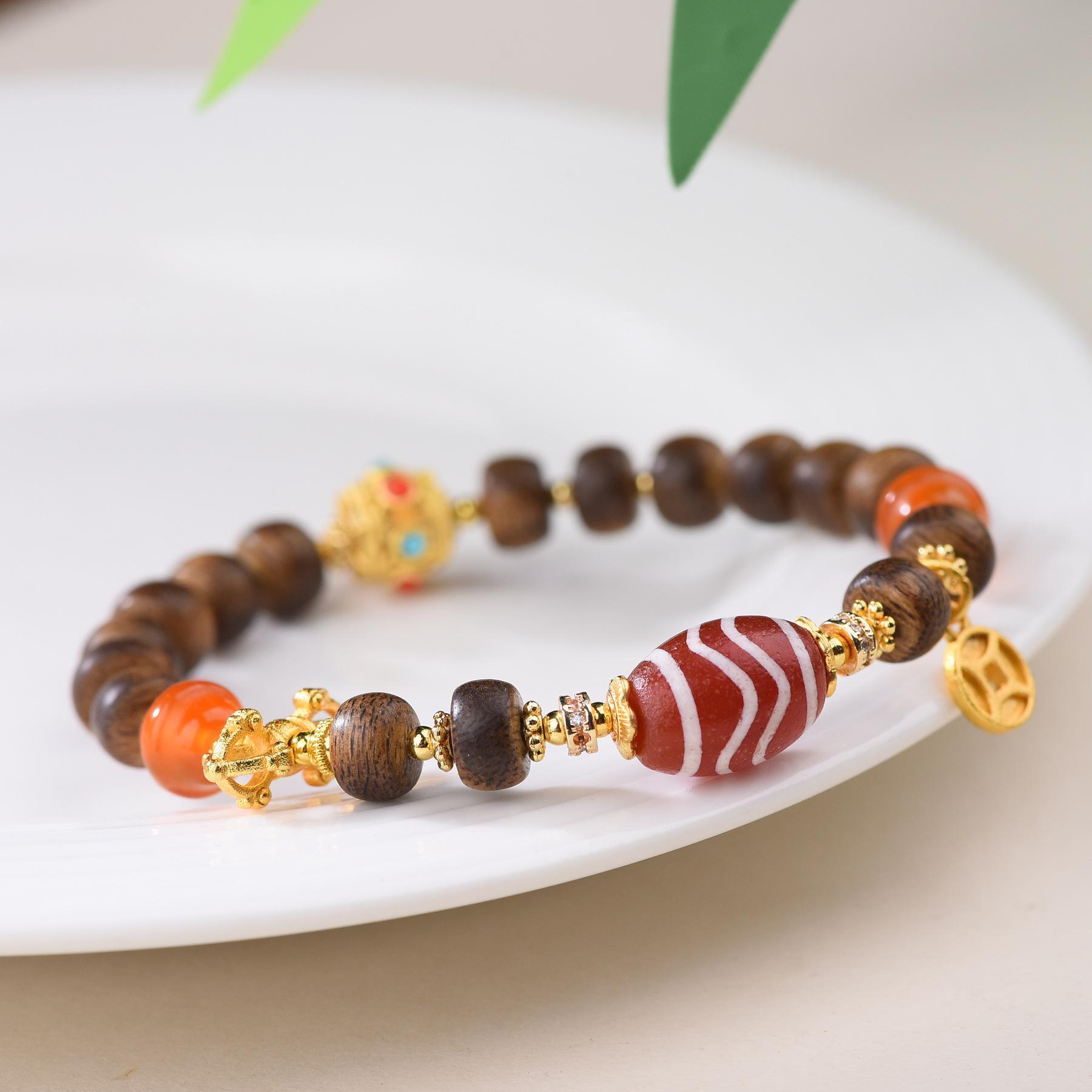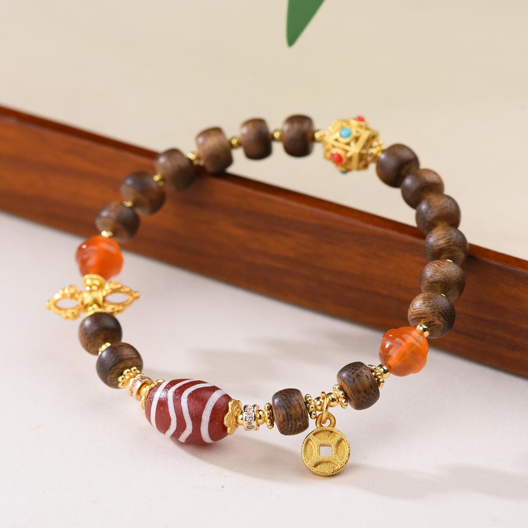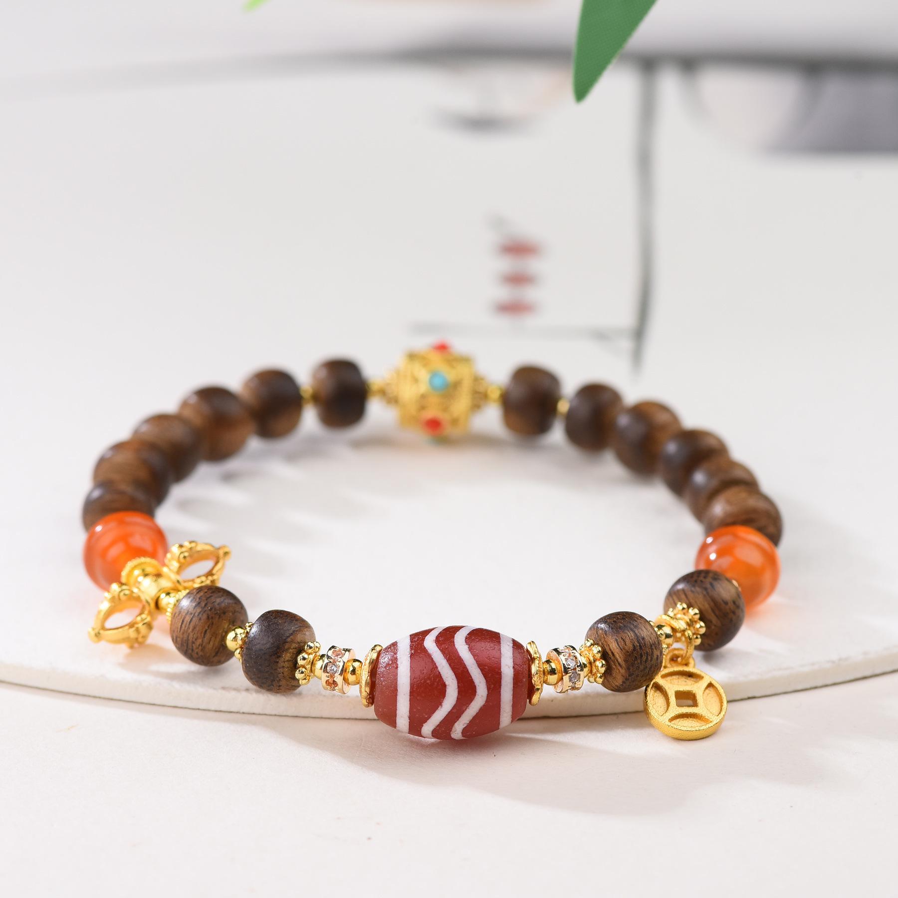 Agarwood water pattern dzi bead bracelet (copper accessories)
