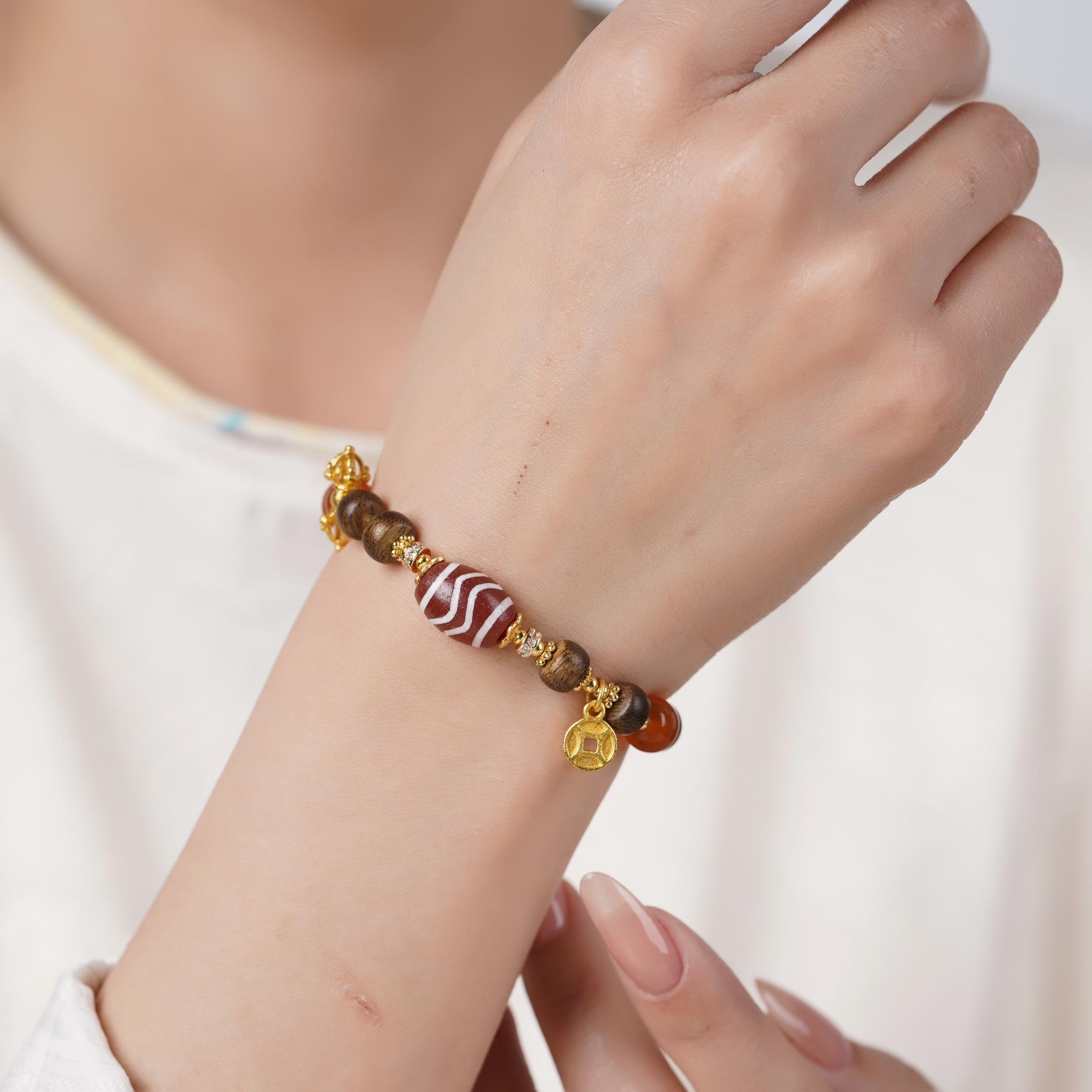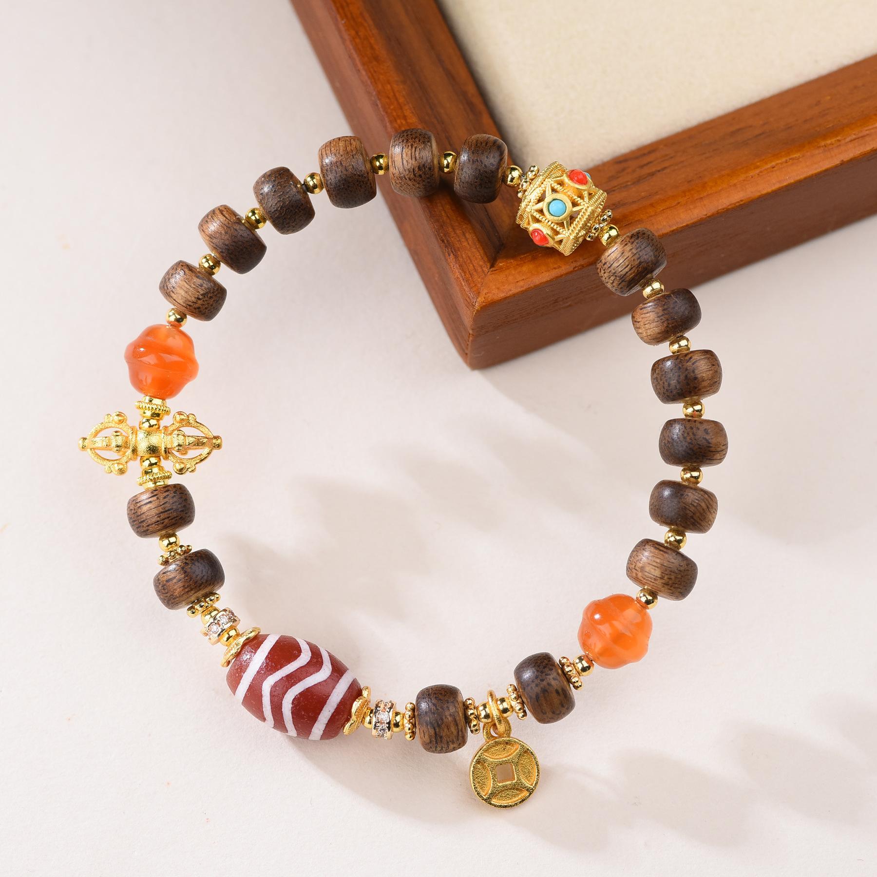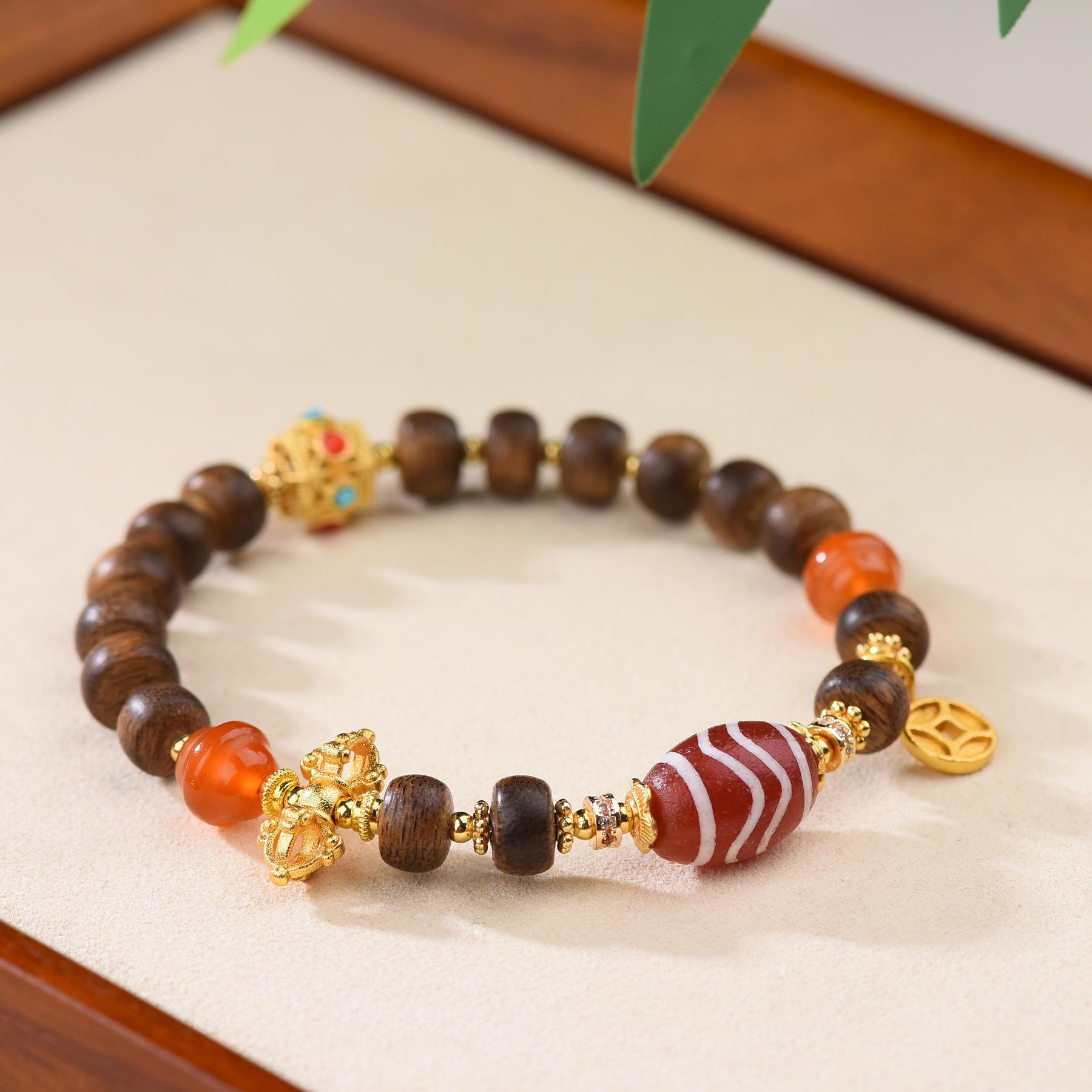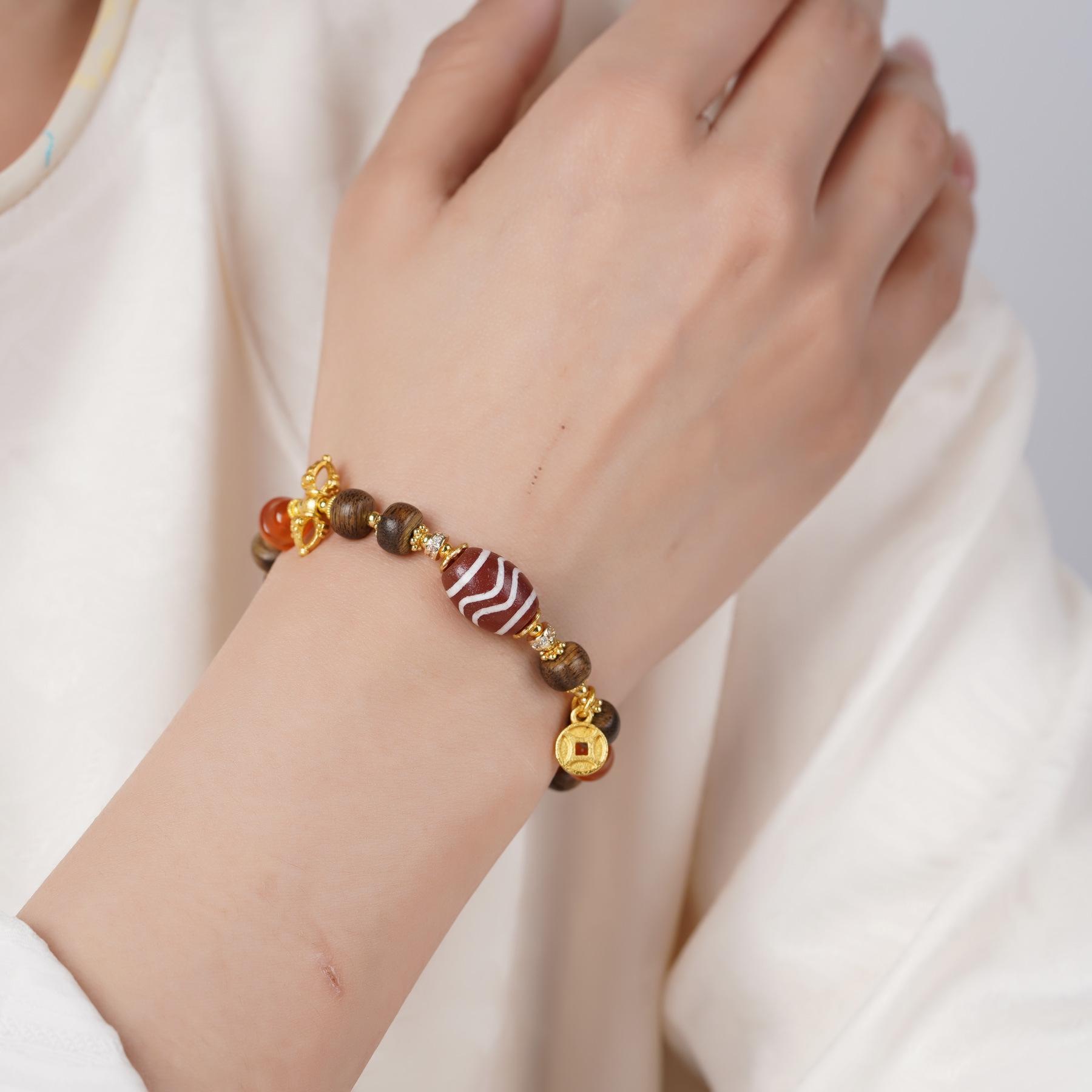 Agarwood water pattern dzi bead bracelet (copper accessories)