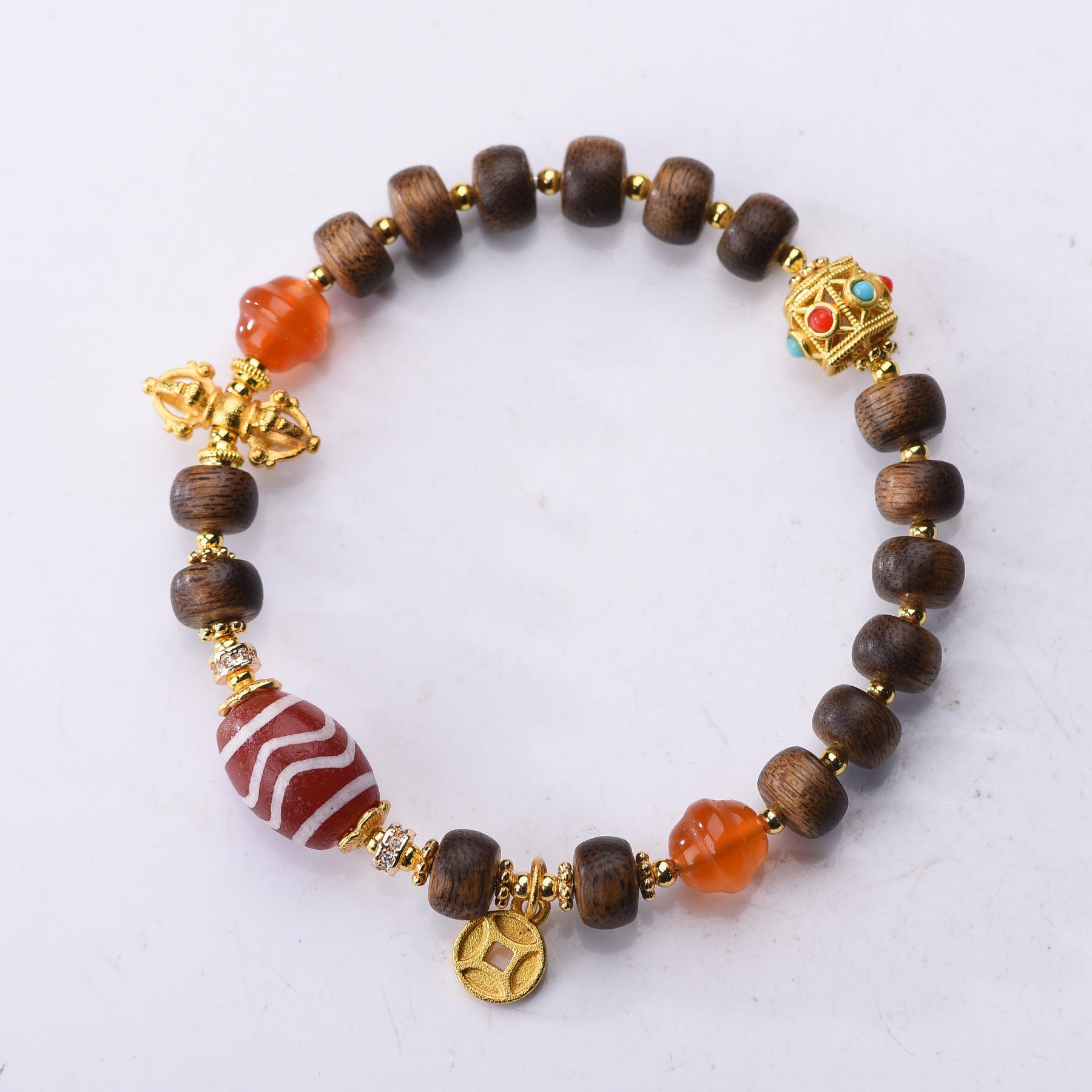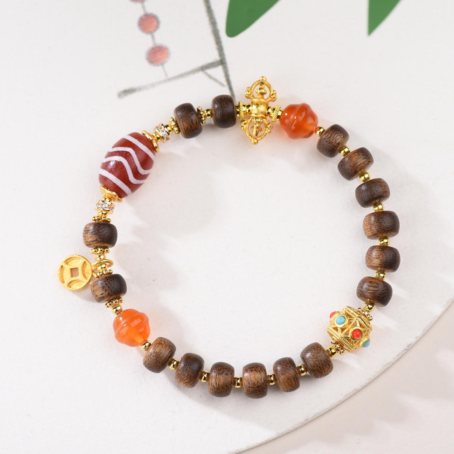 Pulsera de madera de agar con cuentas de ágata para mujer, diseño de estilo chino, nueva red de venta al por mayor de joyas Joker.