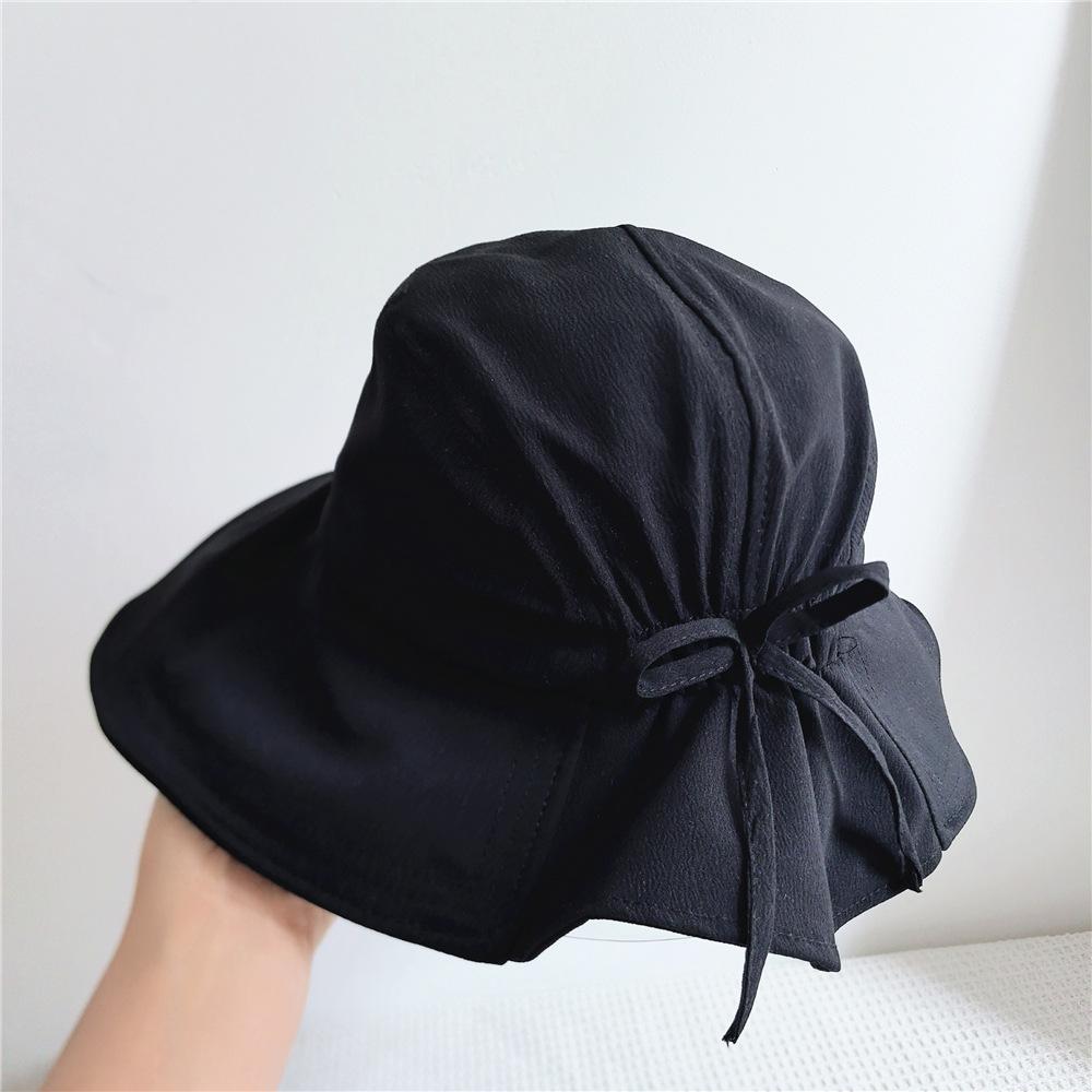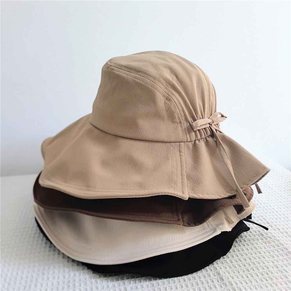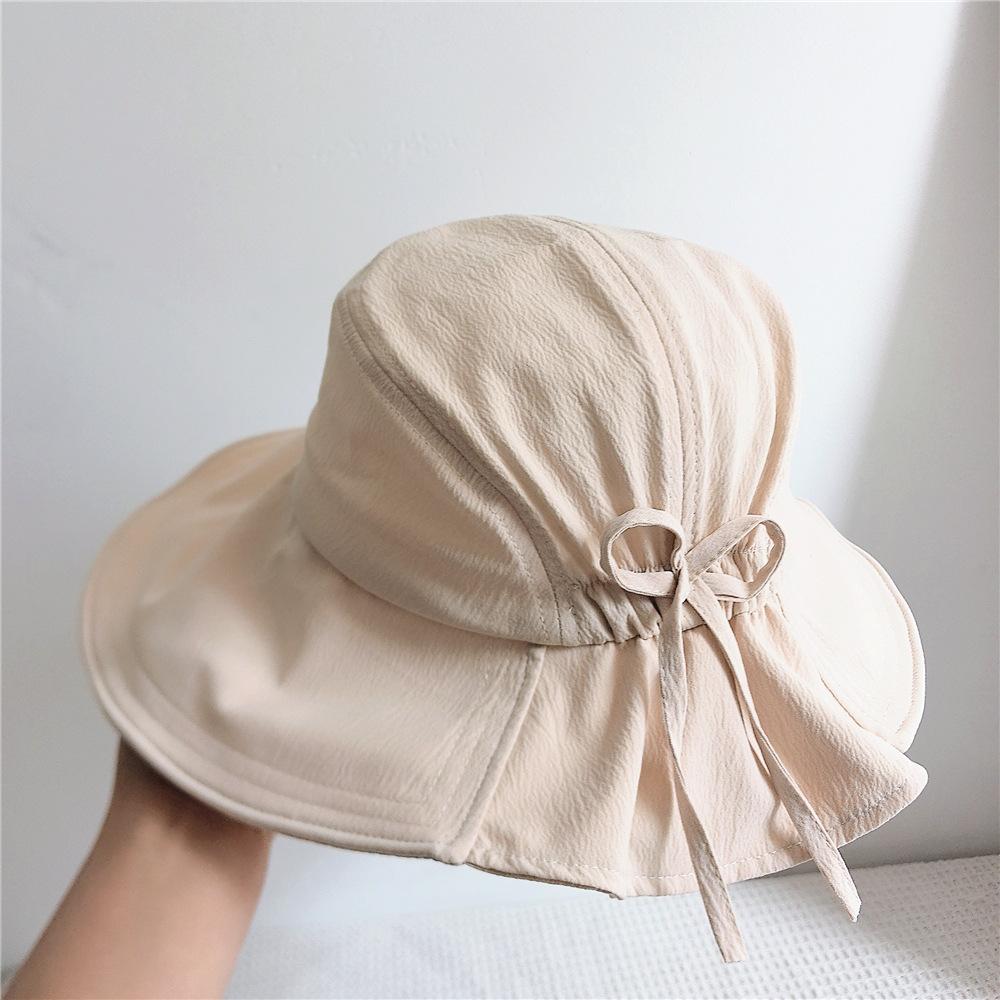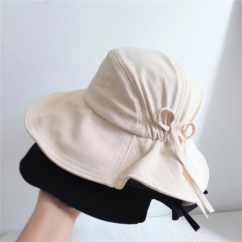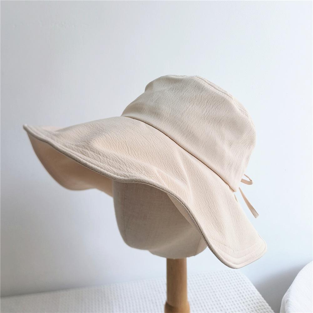 Sombrero de Pescador con Visera Grande y Protección Solar de Verano para Mujer, Moda Coreana, Plegable, con Lazo, Transpirable, Sombrero de Cubo, Sombrero para el Sol