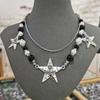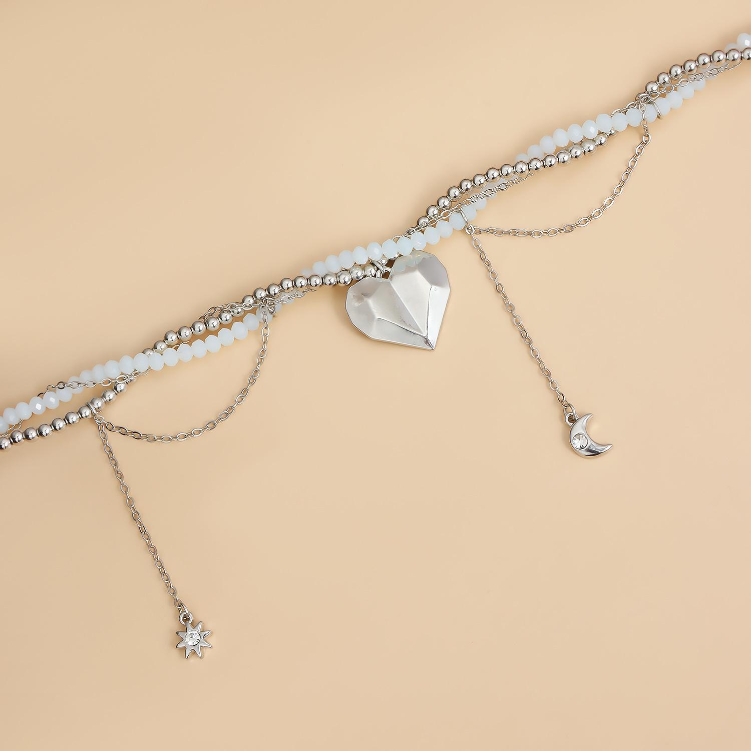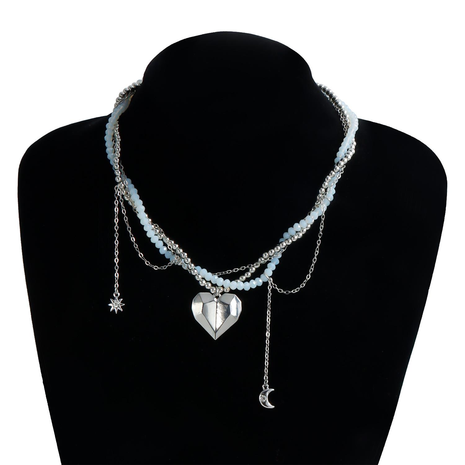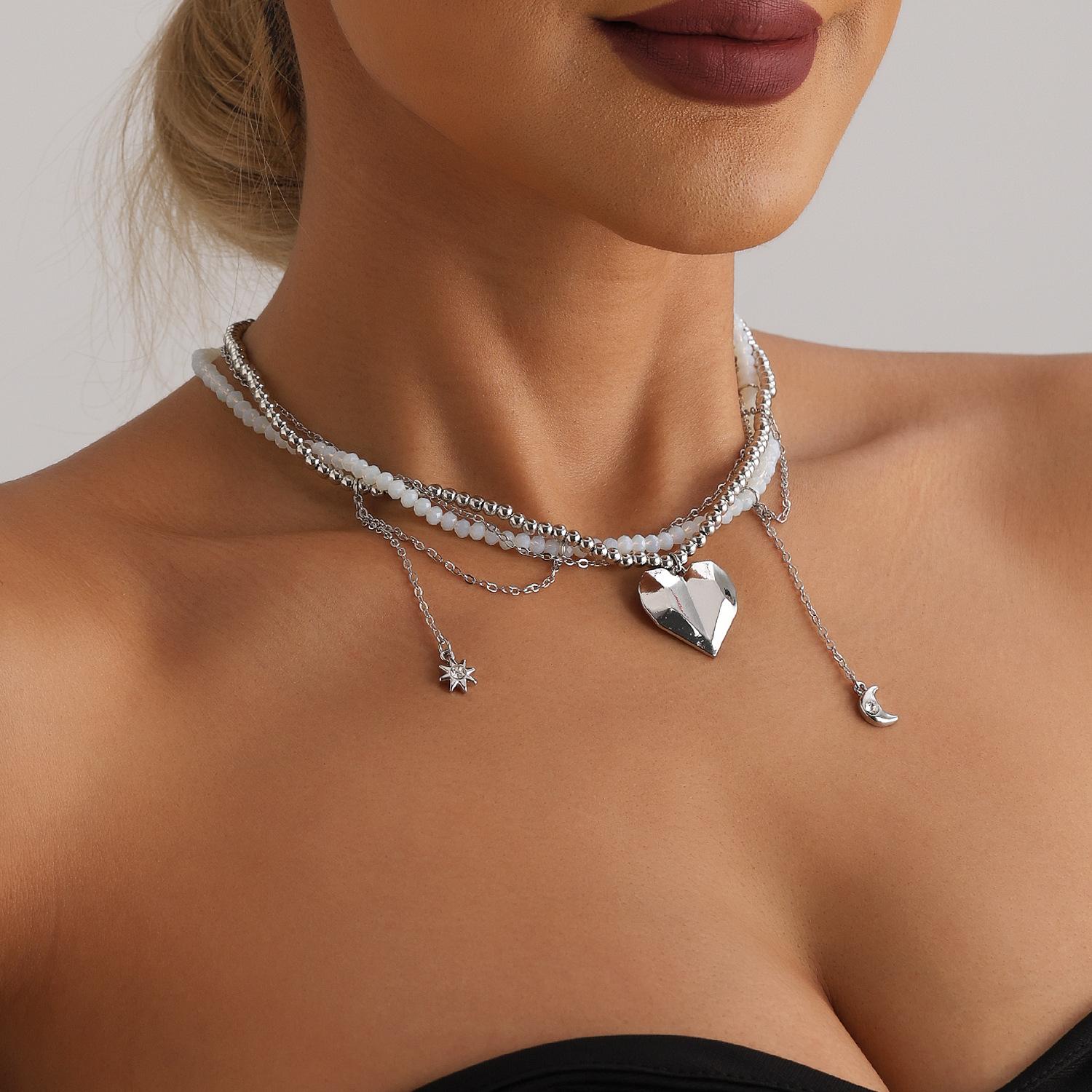 Europa y Estados Unidos joyería transfronteriza ins moda de lujo ligero luna estrella borla cadena clavícula collar con cuentas de vidrio mujeres