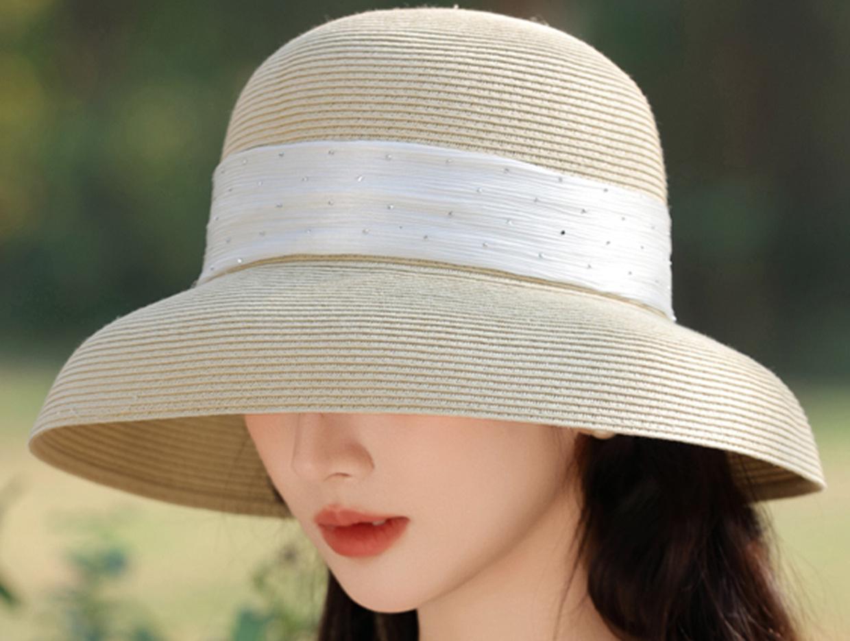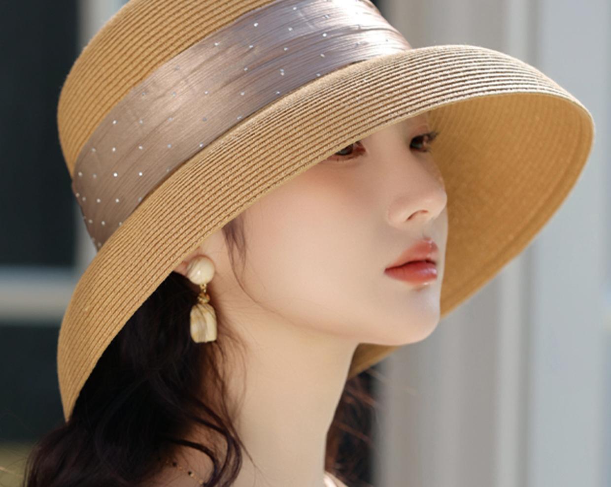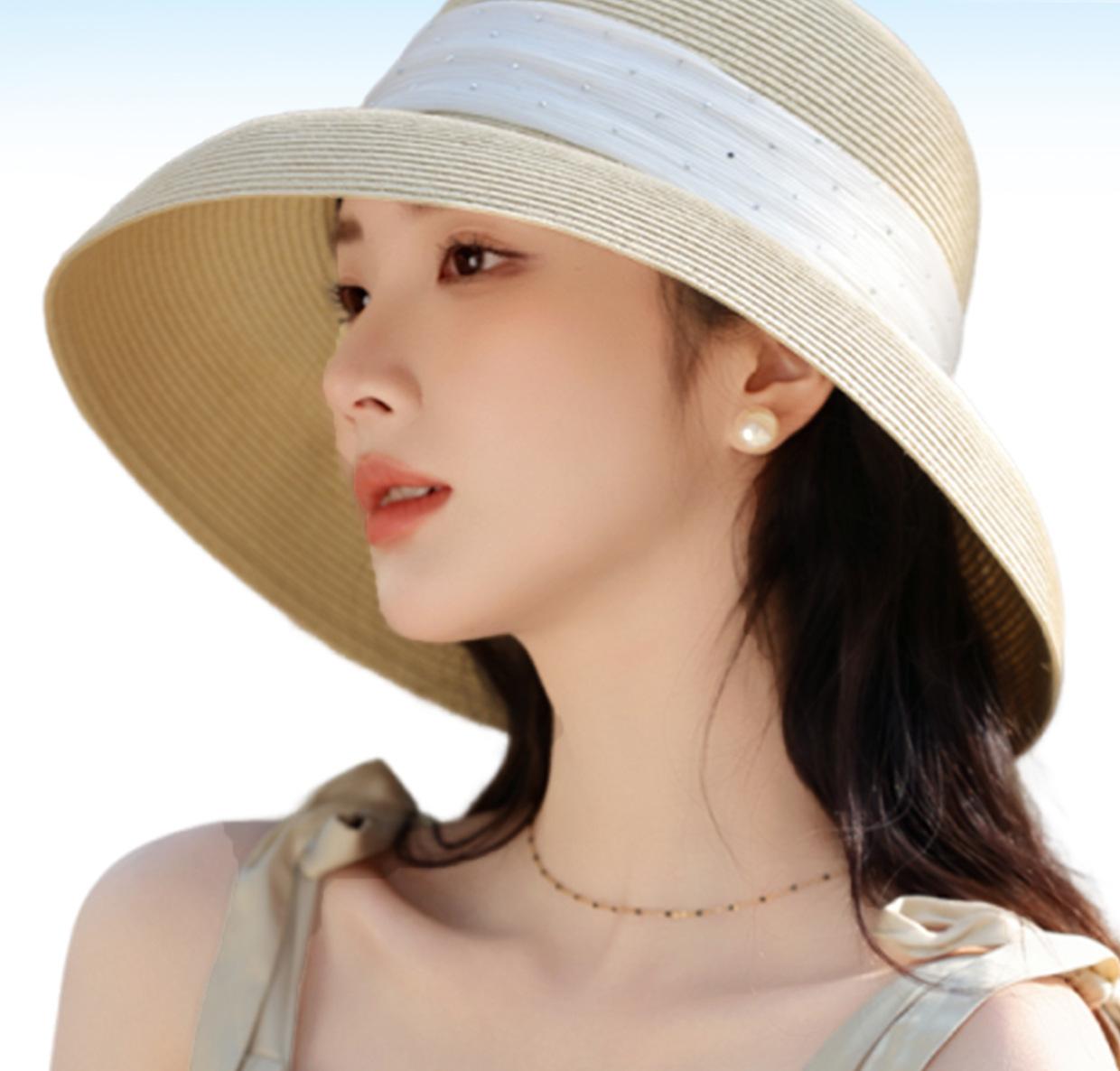 Sombrero de Primavera Verano Estilo Francés para Mujer Sombrero de Paja Rafi Estilo Hepburn de Alta Gama Sombrero para el Sol de Playa Sombrero para el Sol de Verano