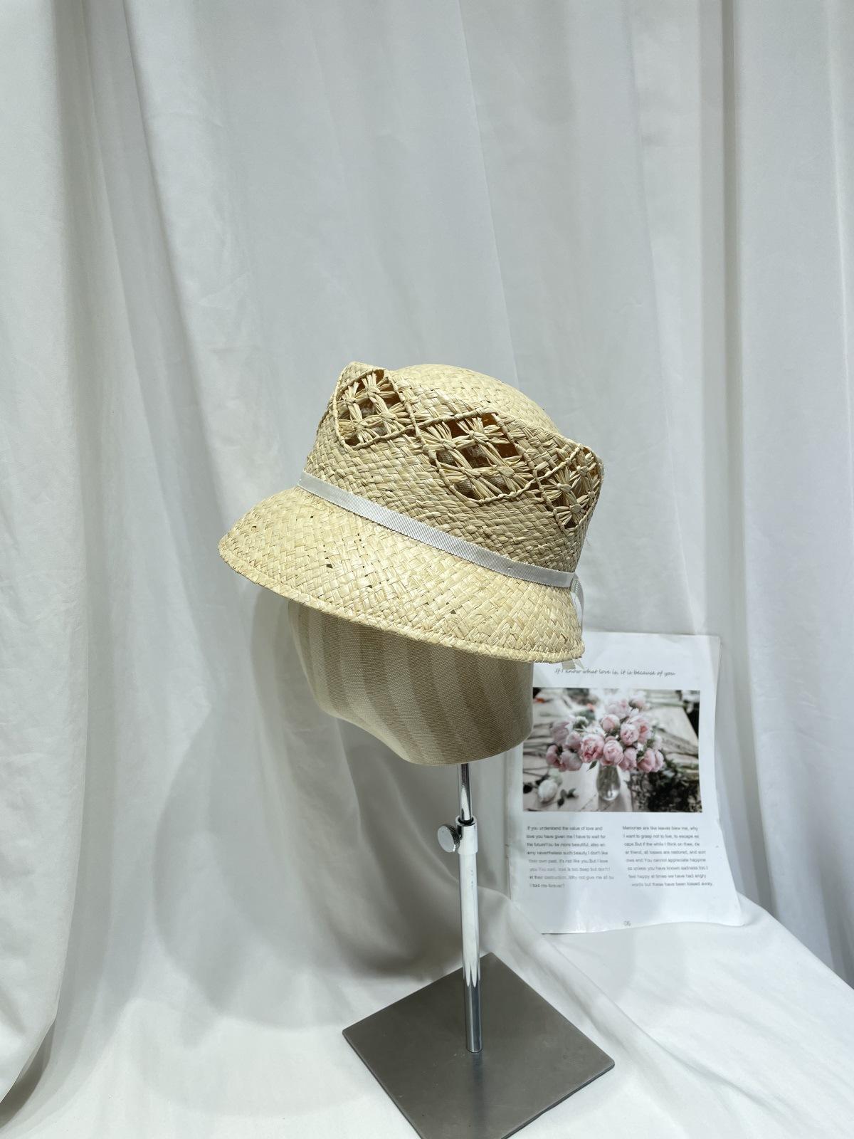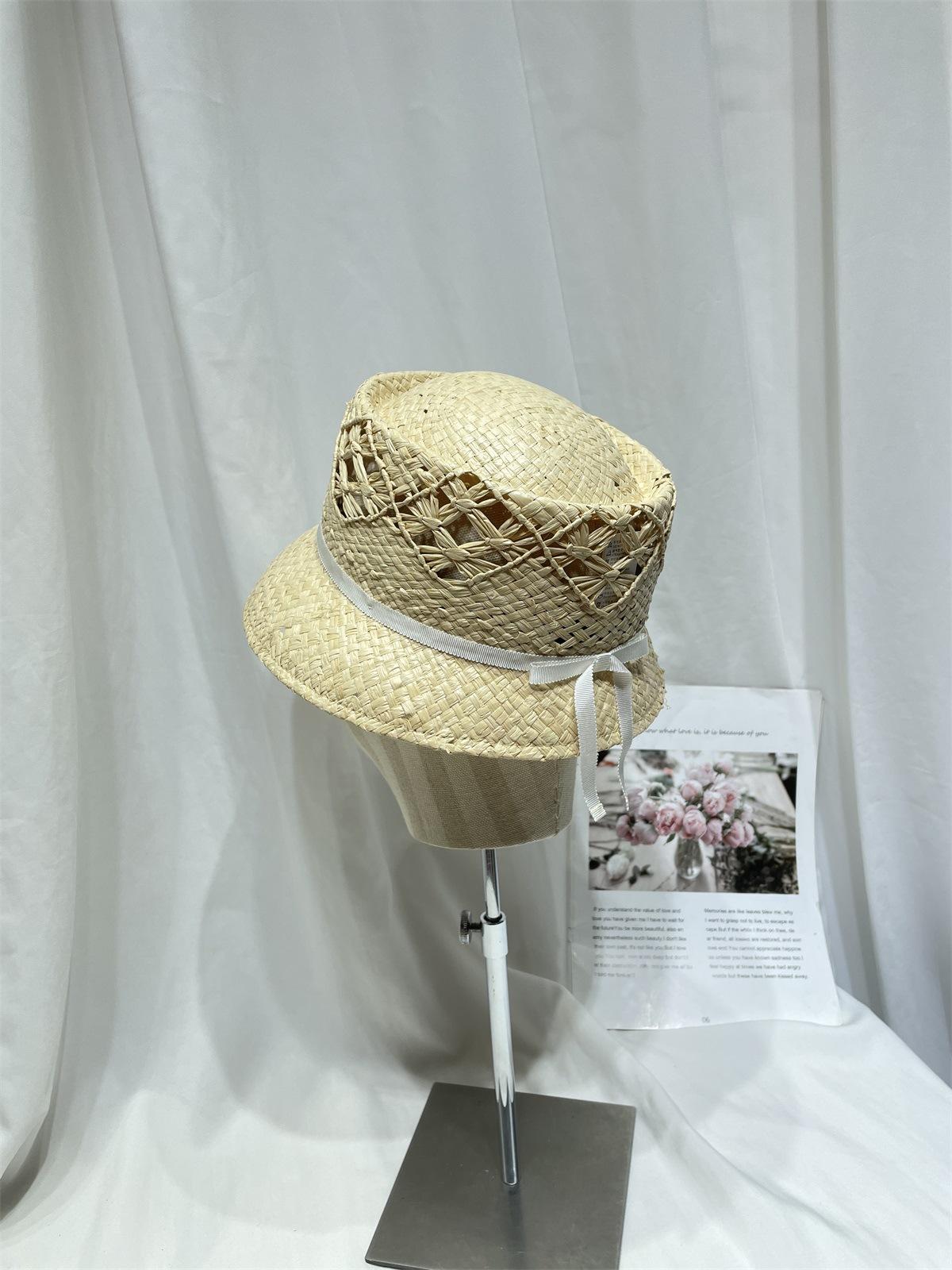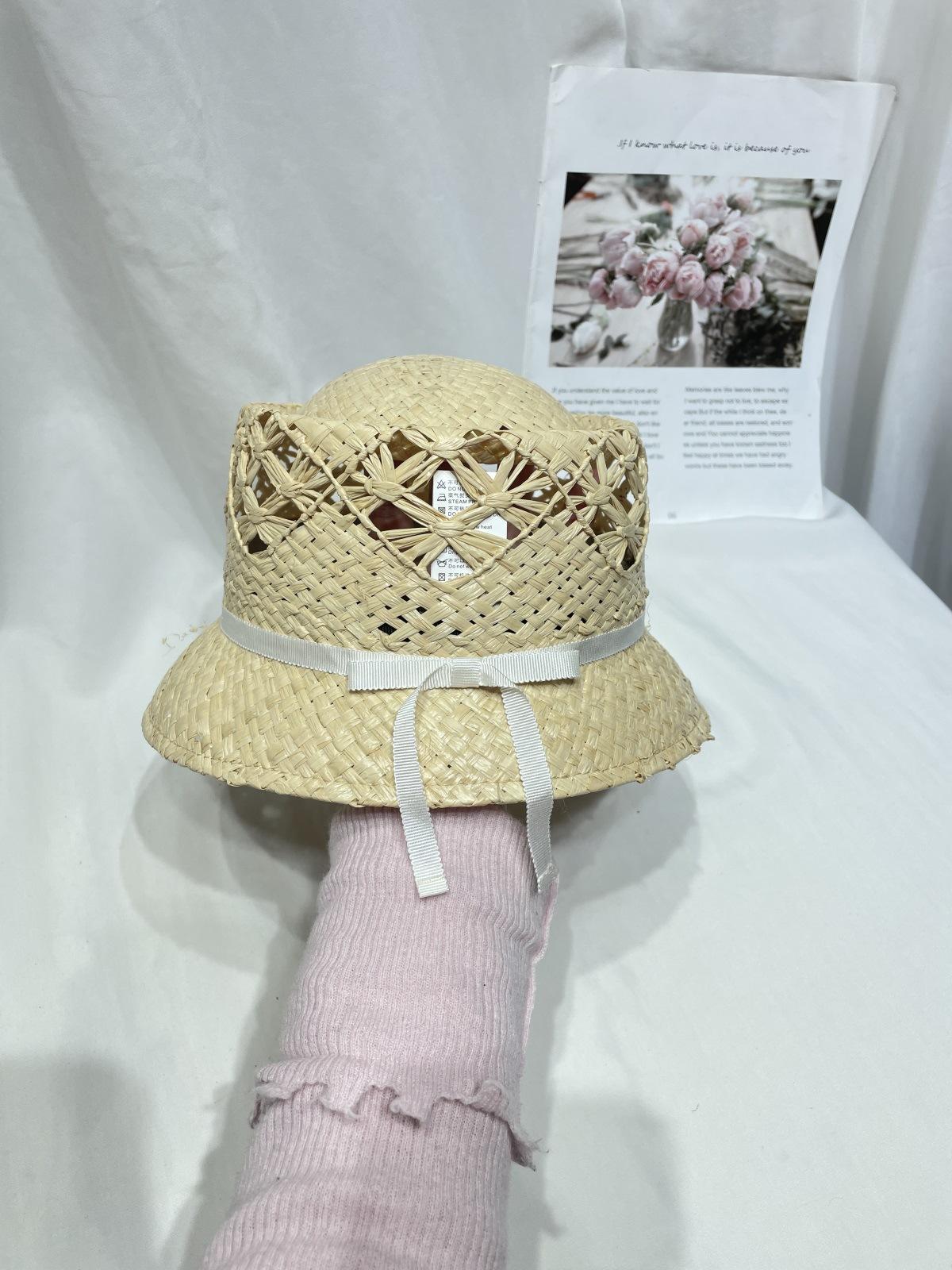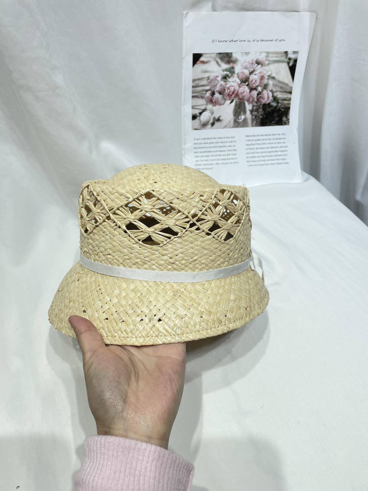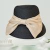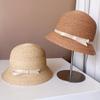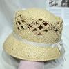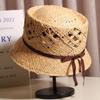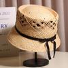 Sombrero de Paja de Rafia Vintage de Estilo Japonés Tejido a Mano Sombrilla Sombrero de Paja para Mujer Verano Hueco Transpirable Lazo Sombrero de Pescador Sombrero de Playa