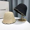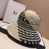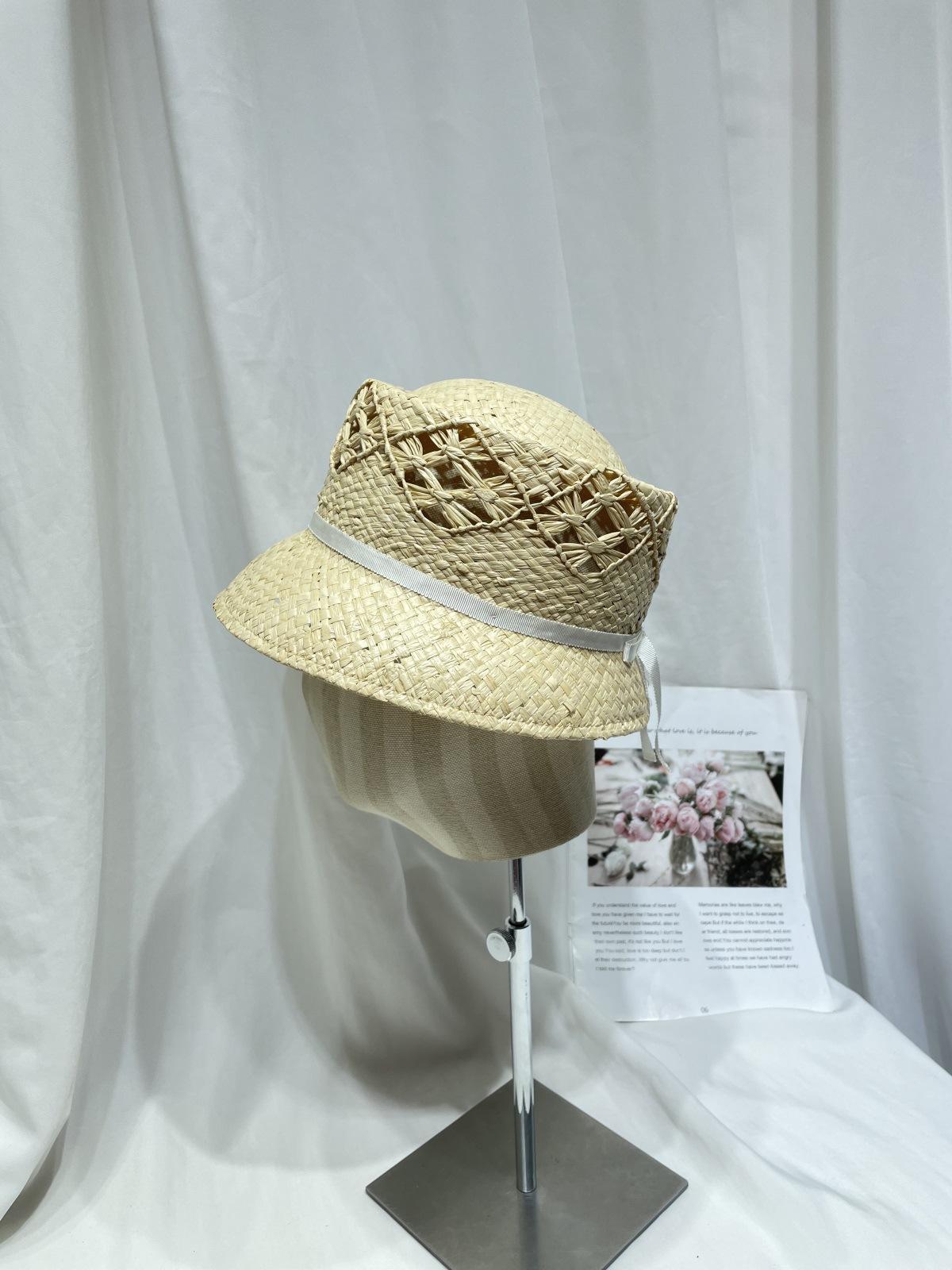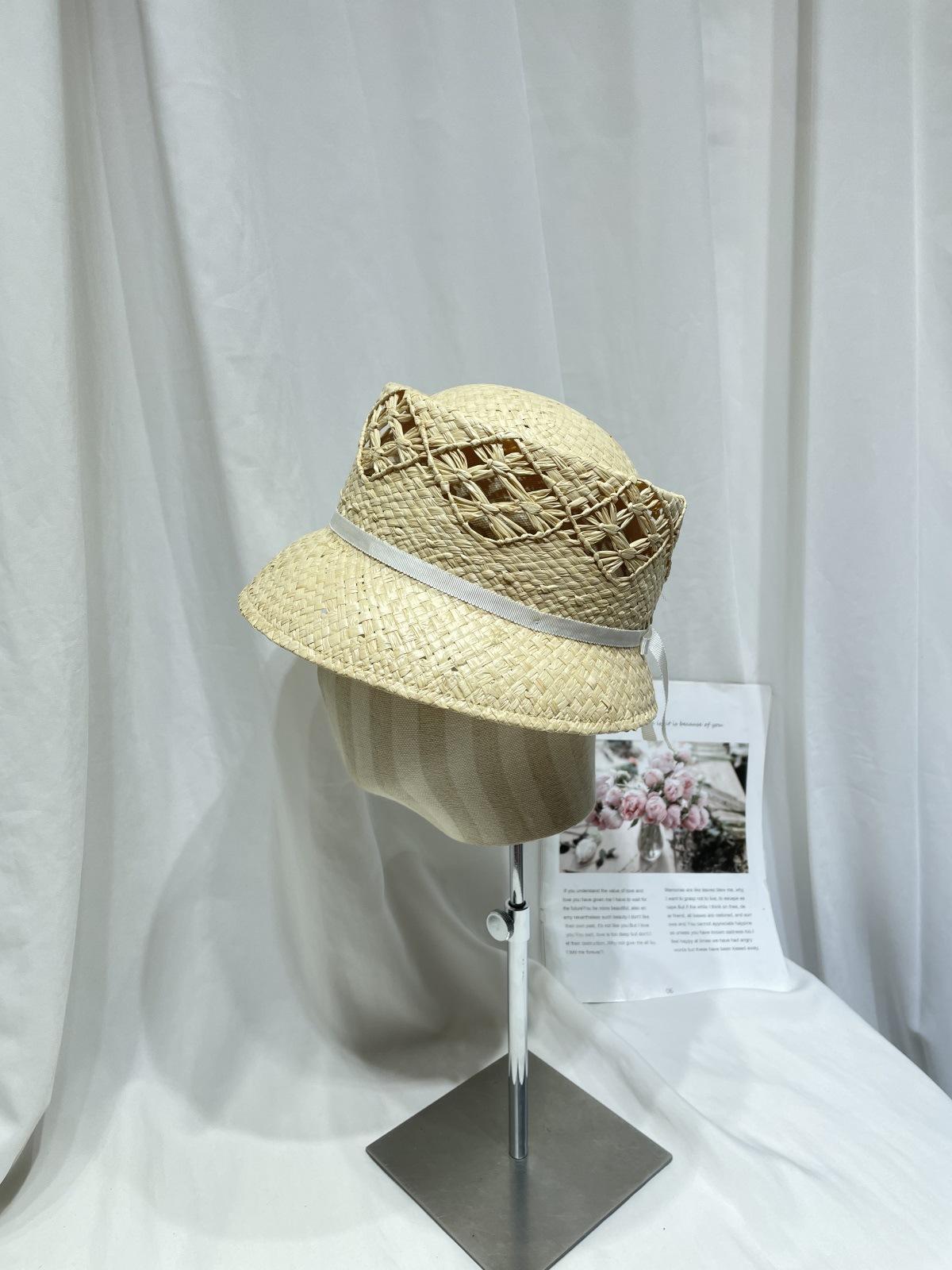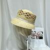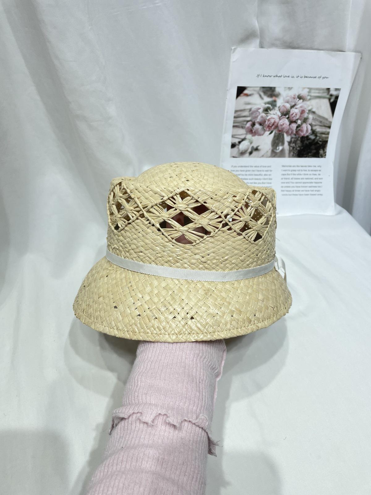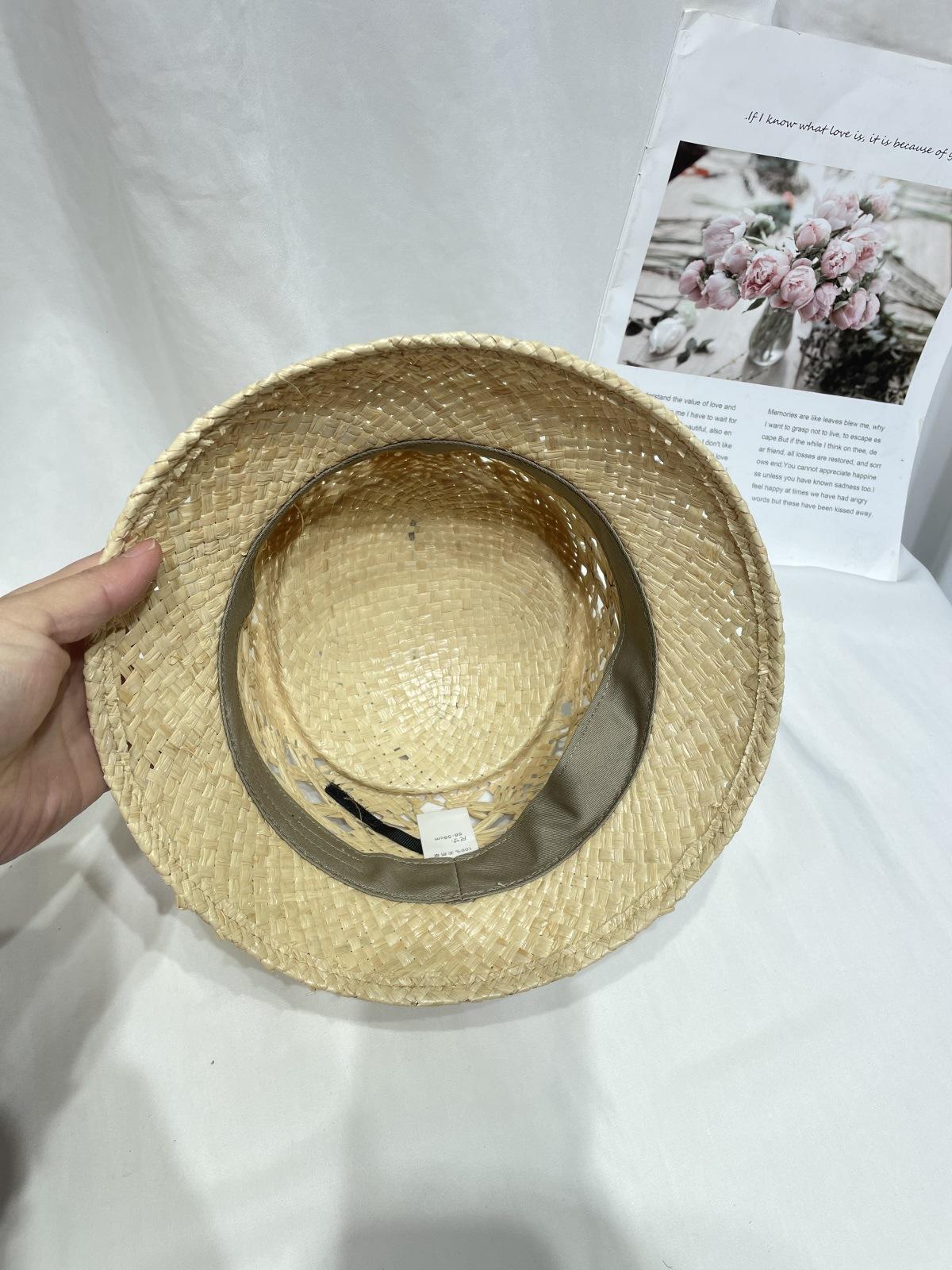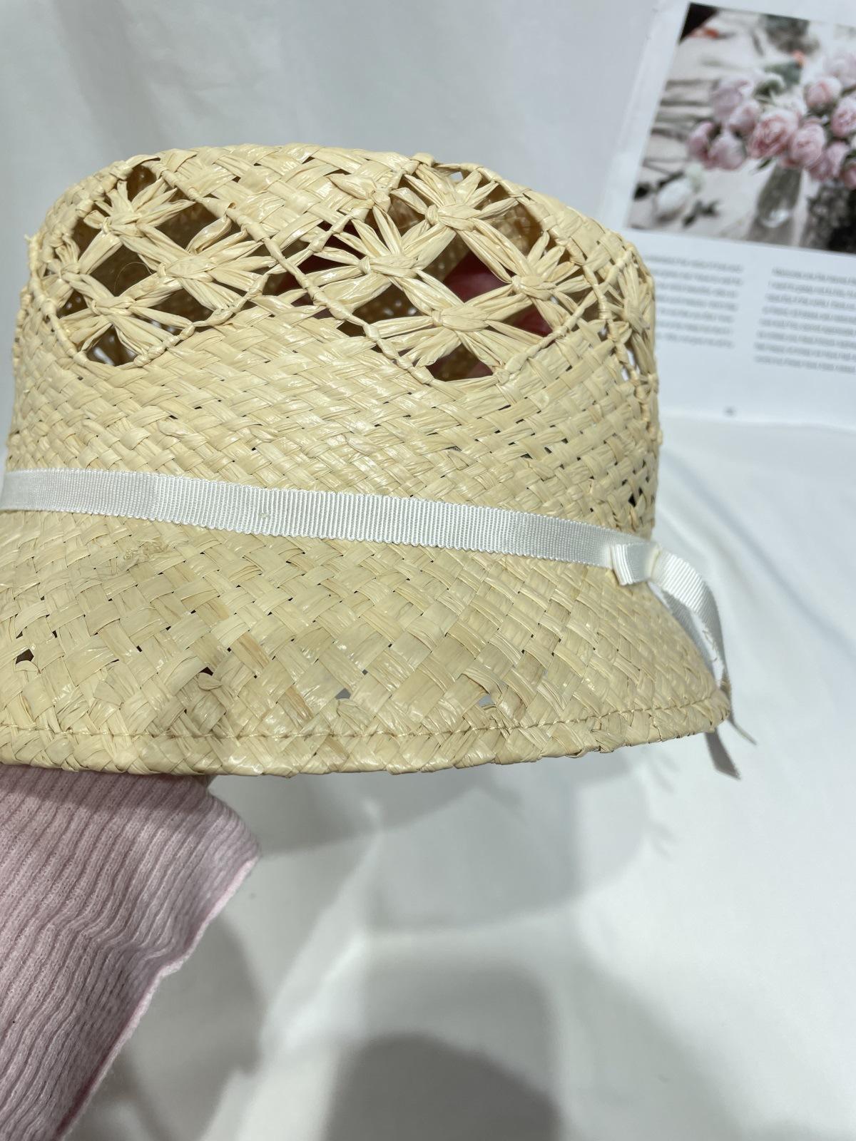 Sombrero de Paja de Rafia Vintage de Estilo Japonés Tejido a Mano Sombrilla Sombrero de Paja para Mujer Verano Hueco Transpirable Lazo Sombrero de Pescador Sombrero de Playa