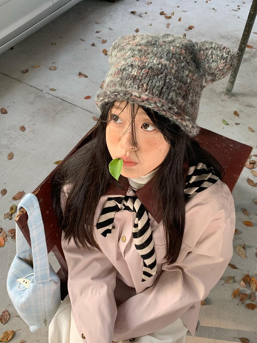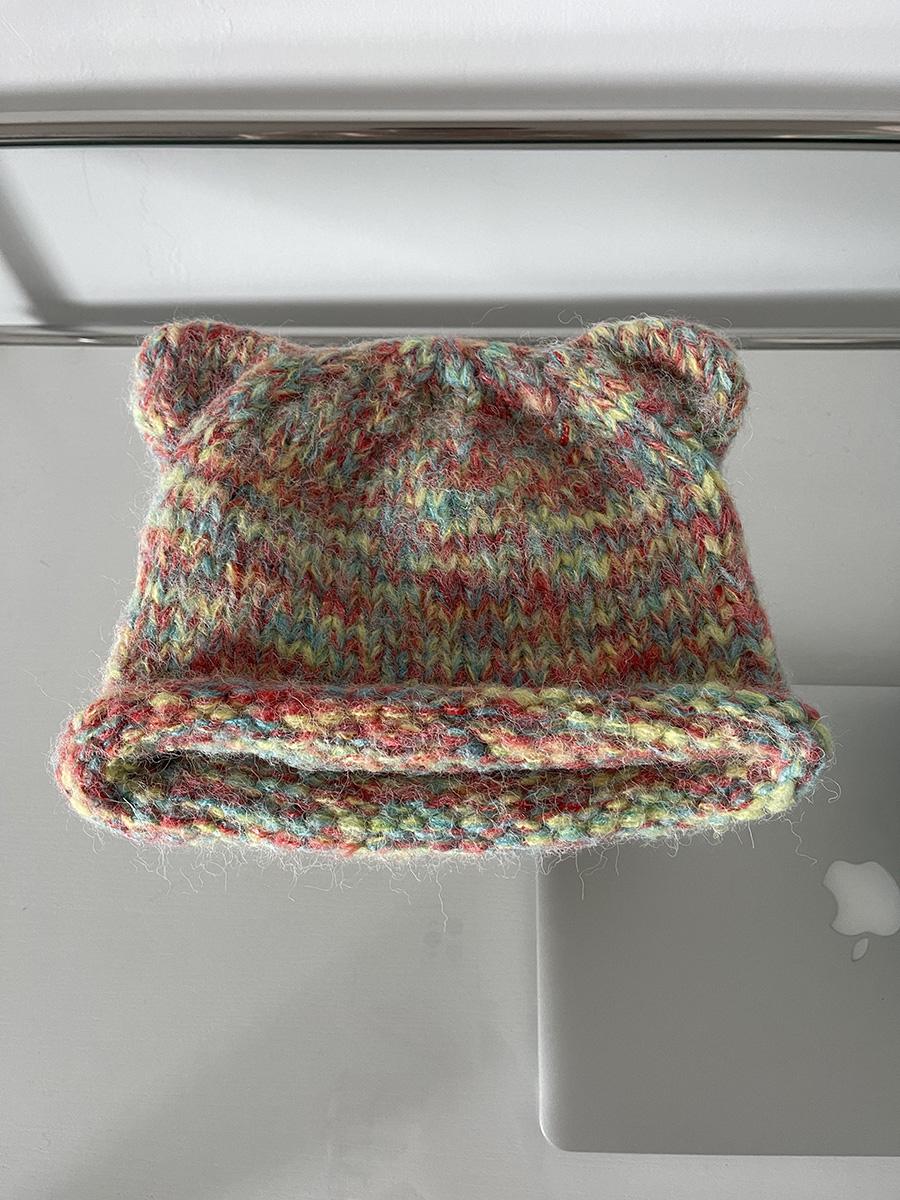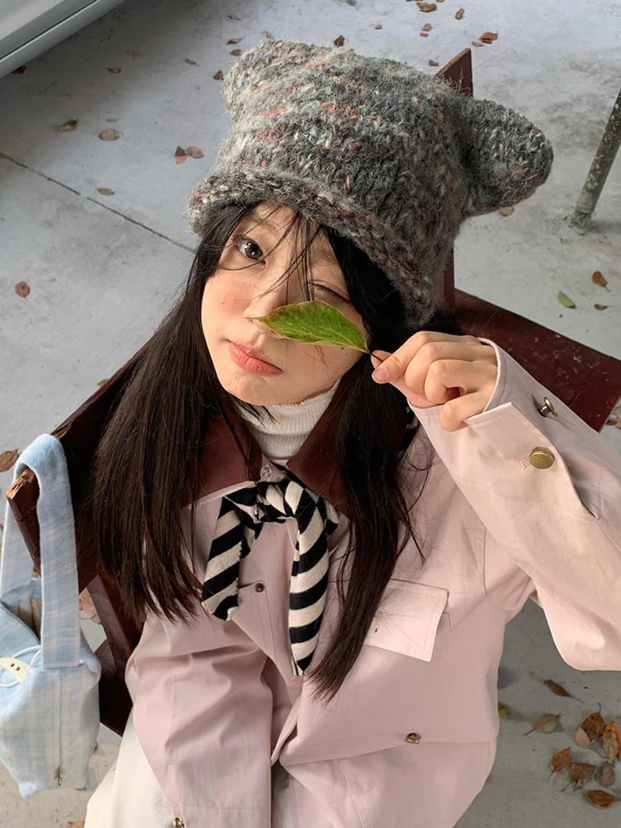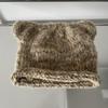 Gorro de lana con orejas de oso para mujer, estilo coreano, de invierno, con cabeza grande, elástico, de cera, con orejas de gato, cálido