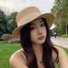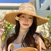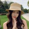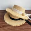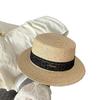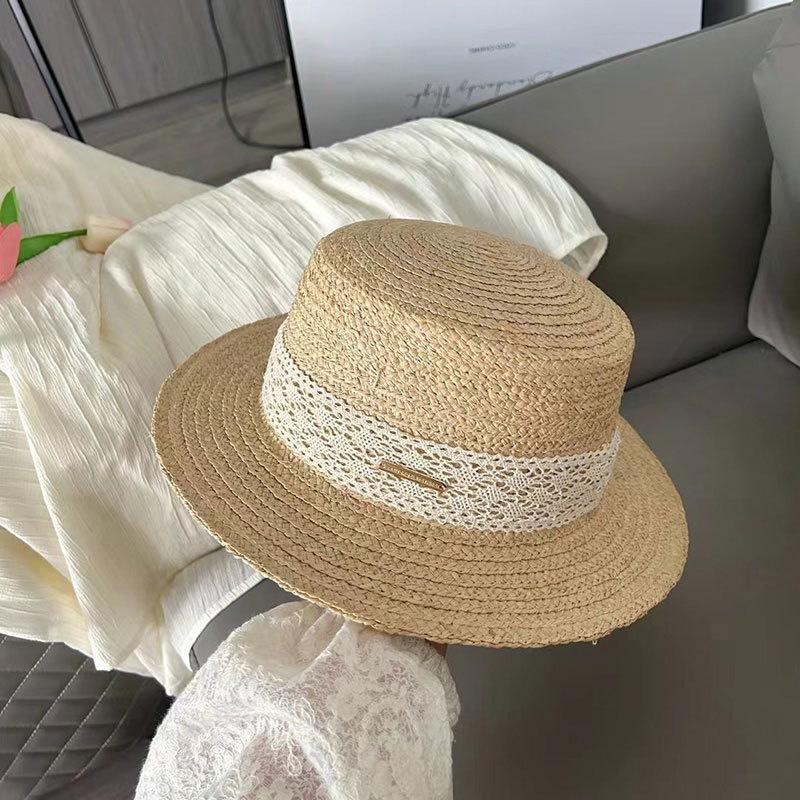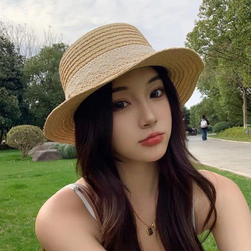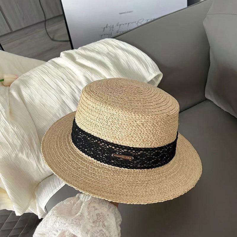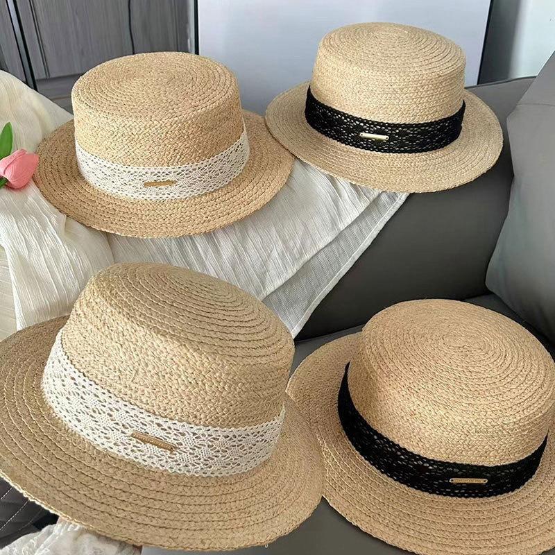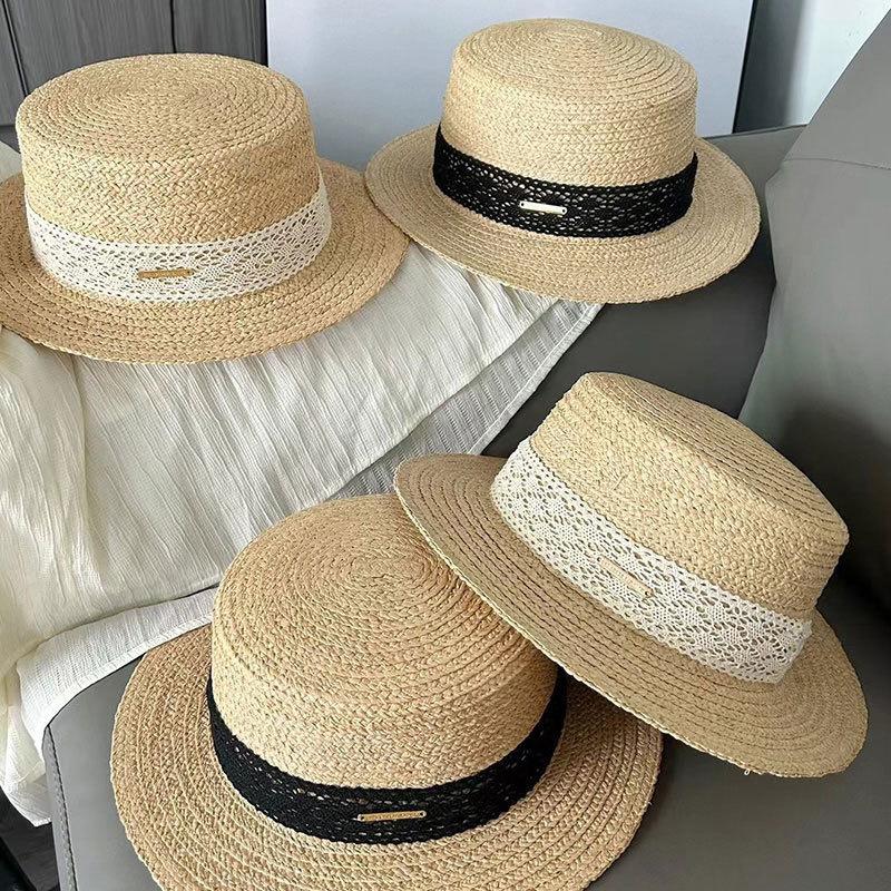 Sombrero de Paja de Copa Plana con Encaje de Rafia Elegante Francés Británico Sombrero de Copa Verano Vacaciones Junto al Mar Sombrero Protector Solar Moderno