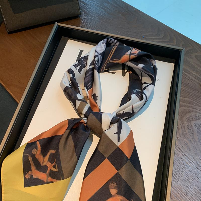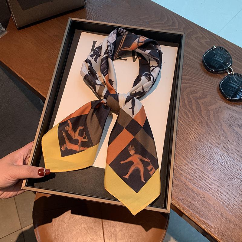 Bufanda de seda de 70*70 cm, pequeña bufanda cuadrada de alta calidad, bufanda de seda de imitación para primavera y verano, temperamento Joker, mujeres europeas y americanas, venta al por mayor