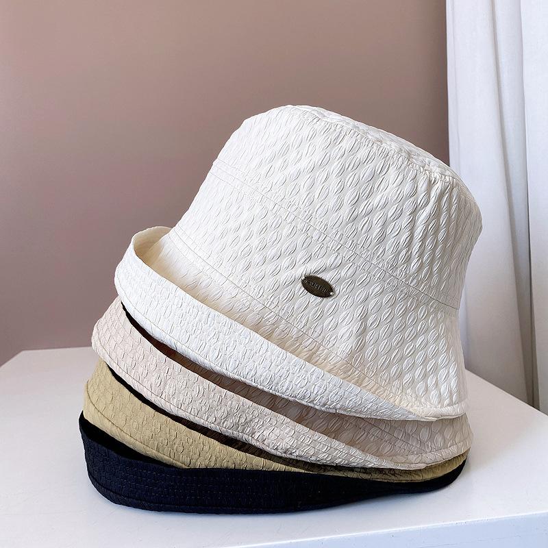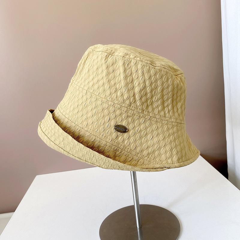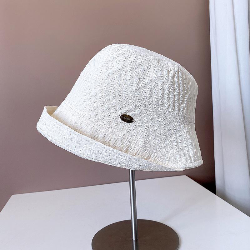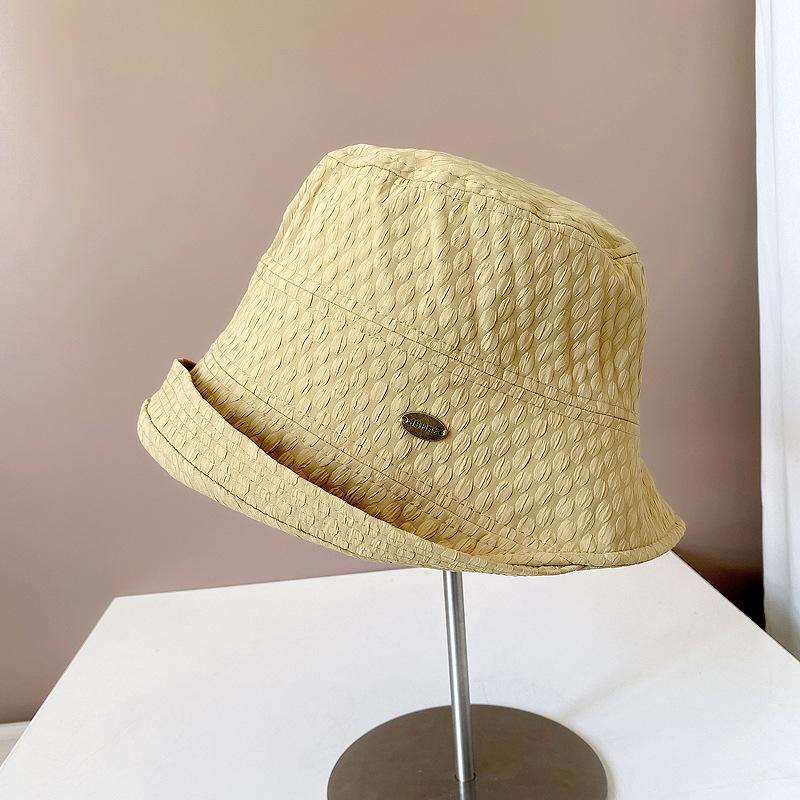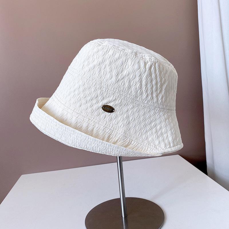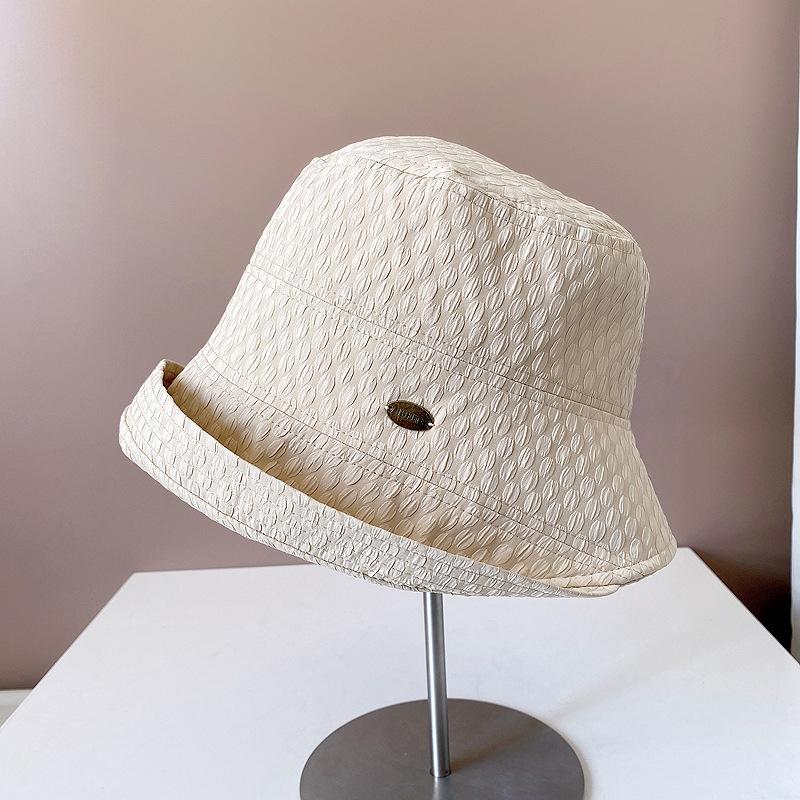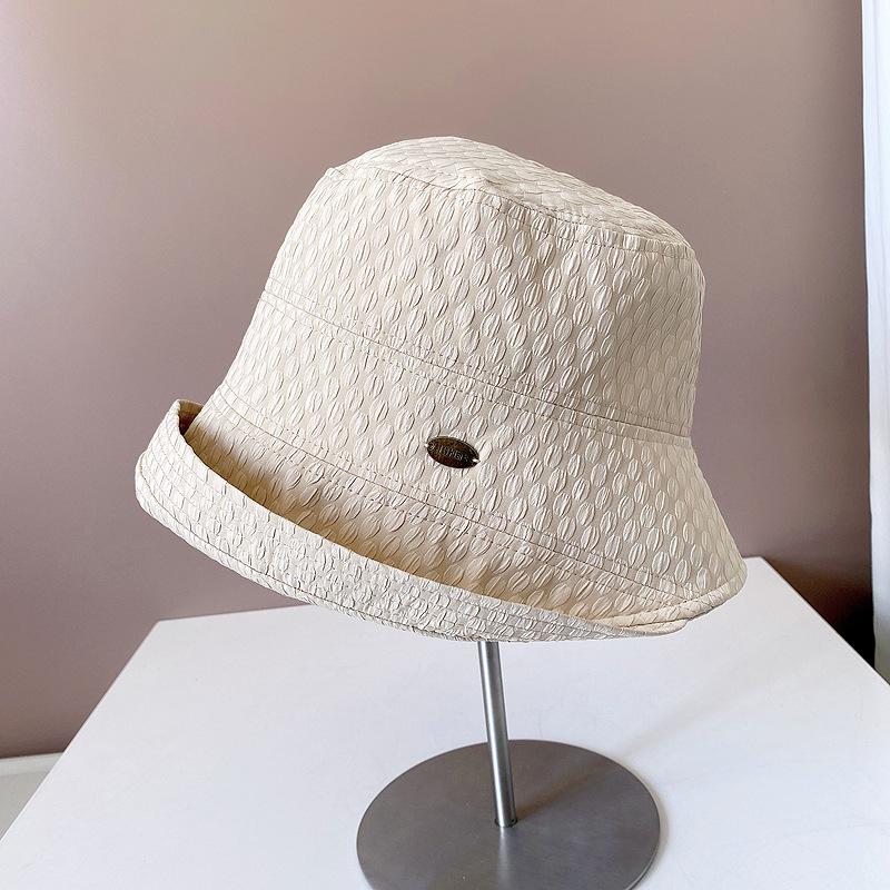 Sombrero de pescador jacquard de lunares con borde curvo estilo japonés para mujer, verano versátil, protección solar, sombrero para el sol para mujer, sombrero de cubo casual estilo coreano, sombrero de tela