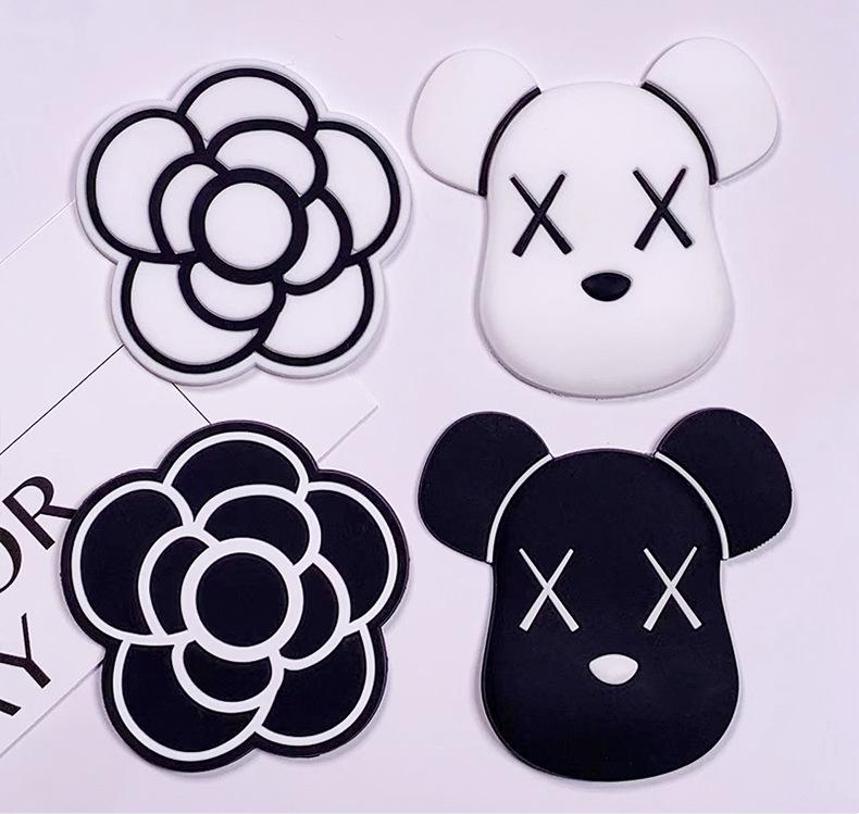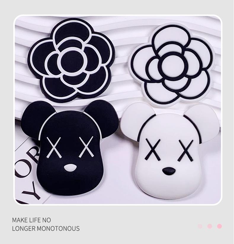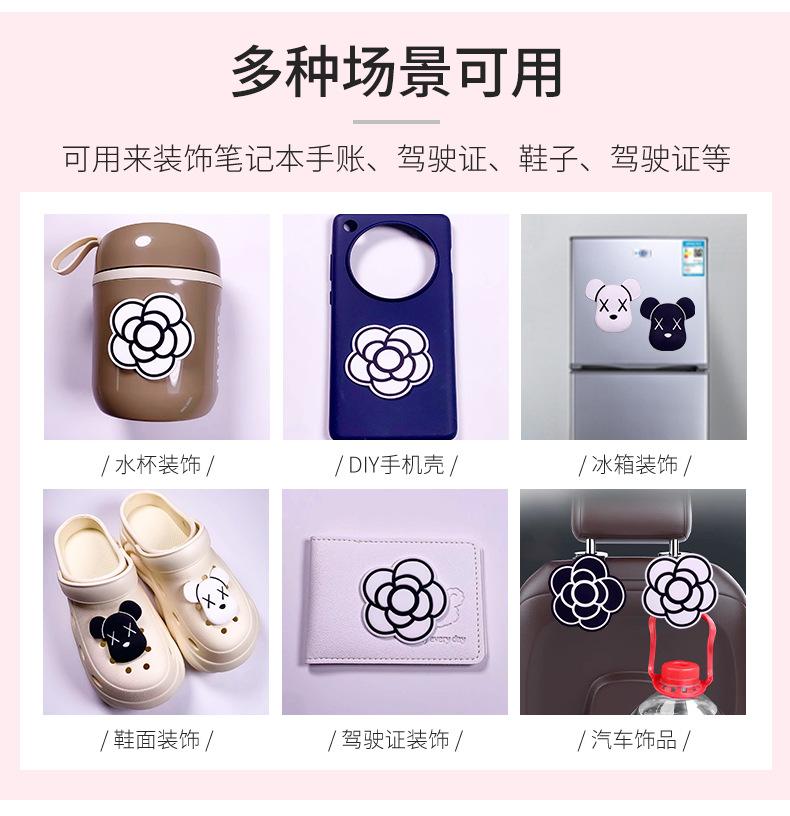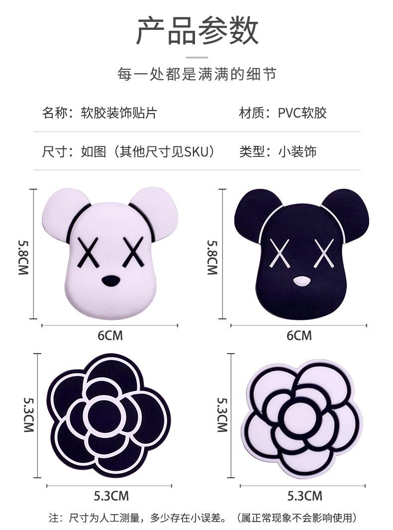 Soft glue: black camellia (5.3*5.3cm), Soft glue: white camellia (5.3*5.3cm), Soft glue: black explosive bear ...