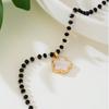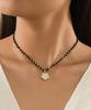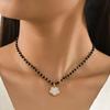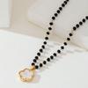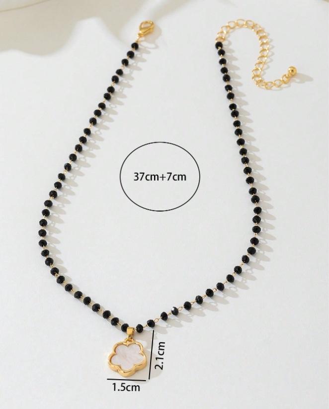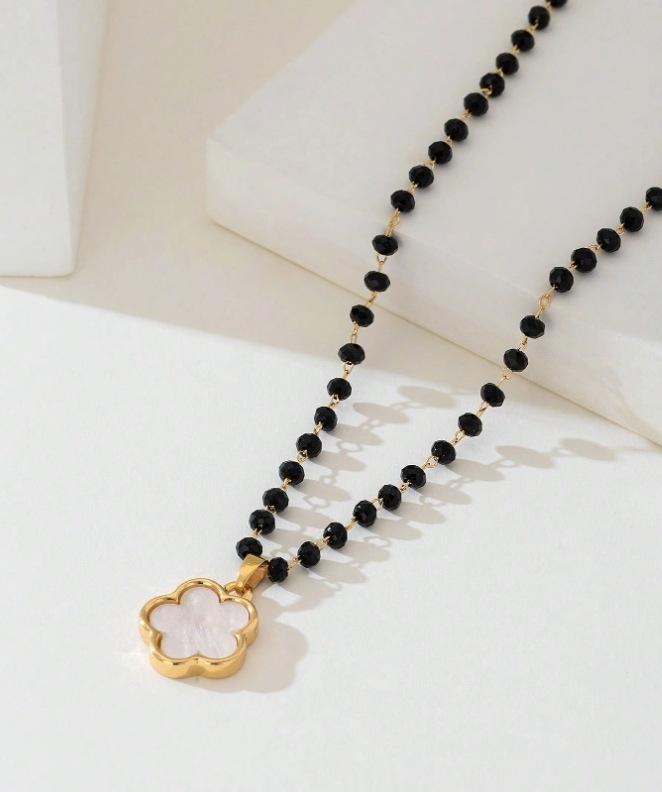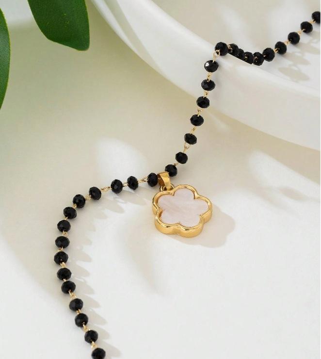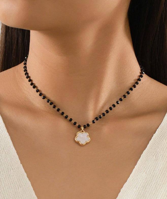 Collar con colgante de trébol de cinco hojas con cadena de cuentas de cristal negro de temperamento de moda transfronteriza entre Europa y Estados Unidos, diseño de cadena de clavícula con sentido