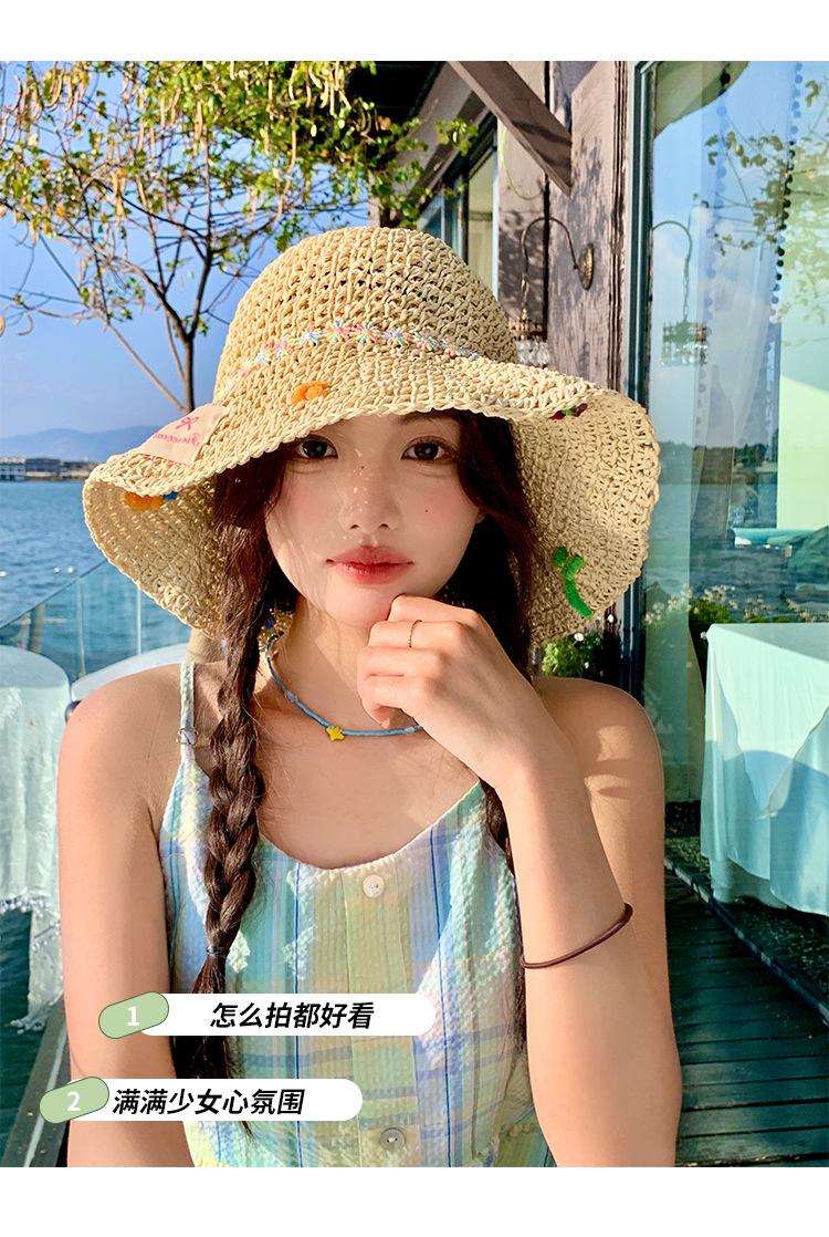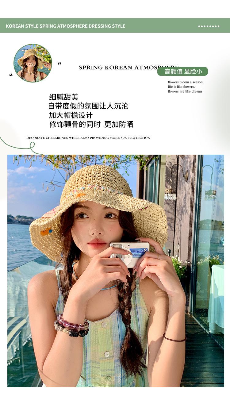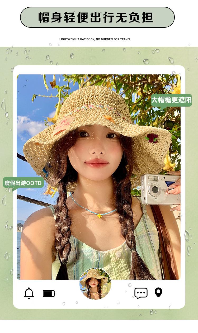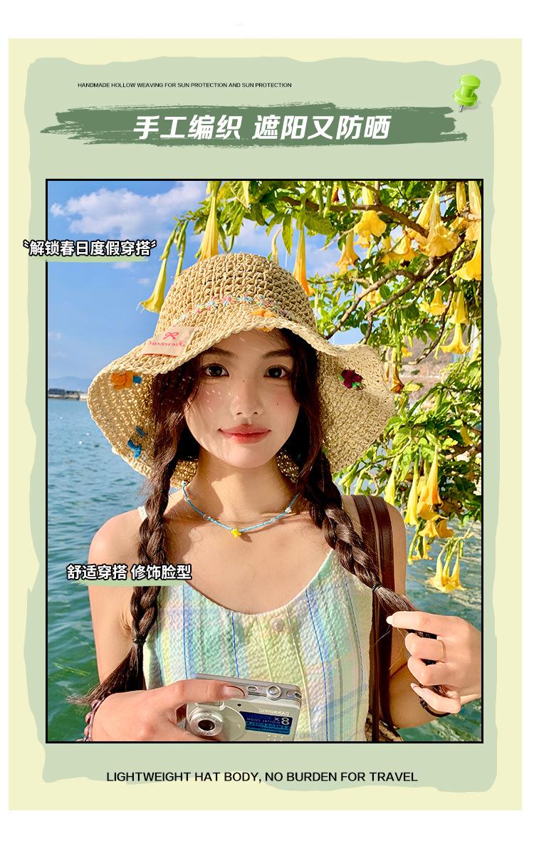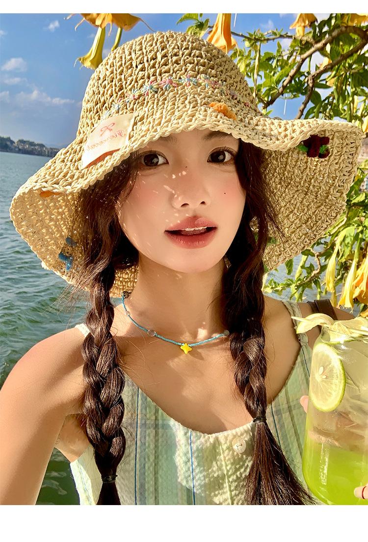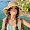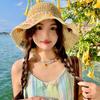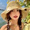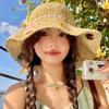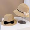 Sombrero Pescador Tejido con Parche de Lazo para Mujer Verano 2025 Nuevo Ala Grande Playa Mar Sombra Sombrero de Paja