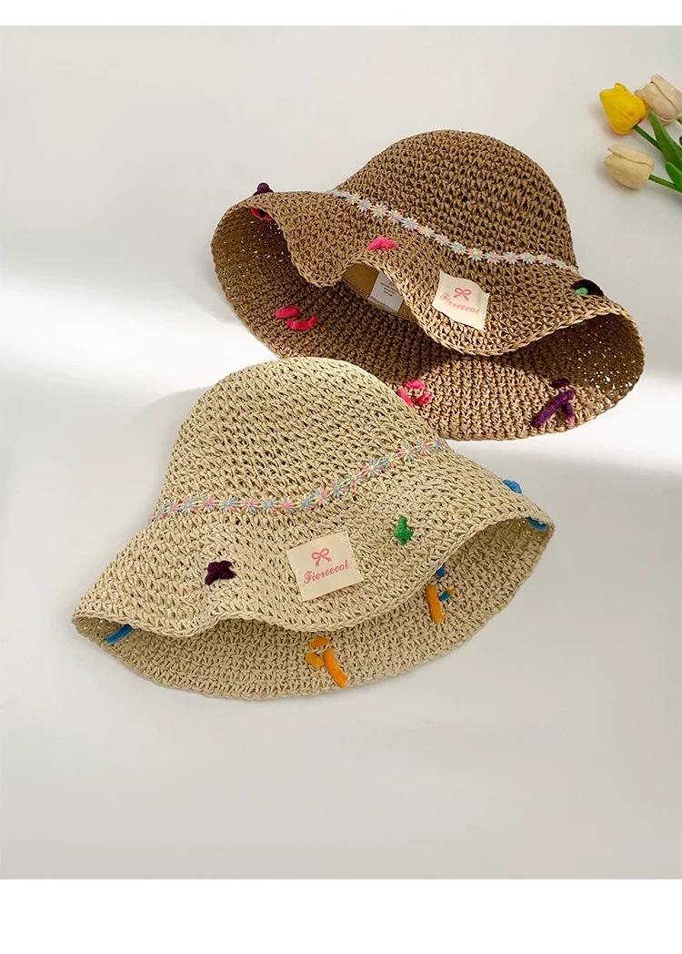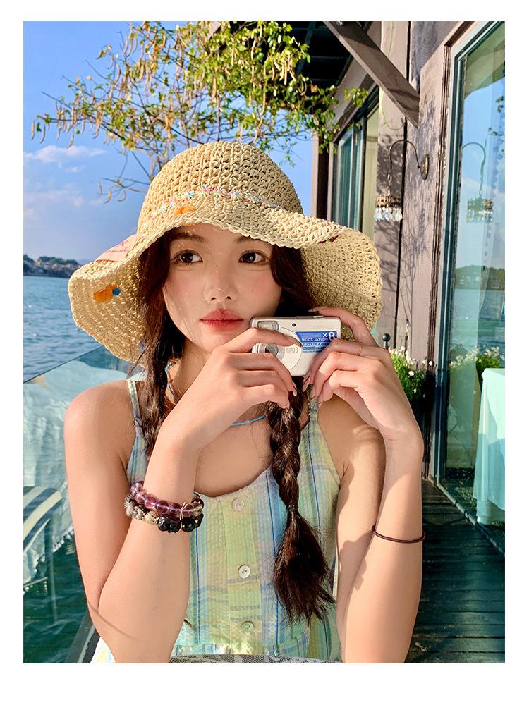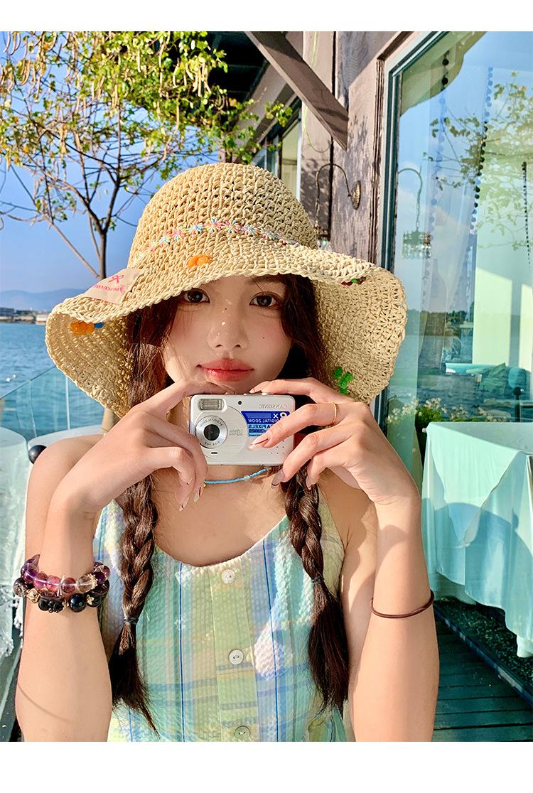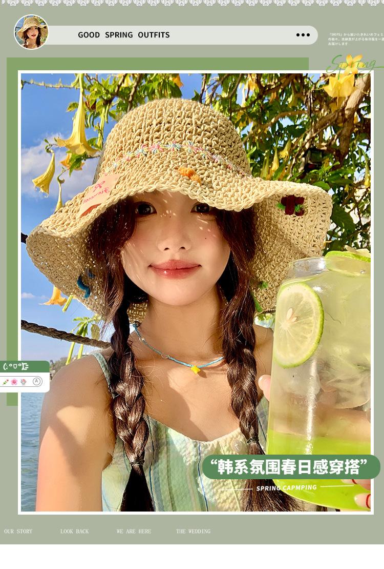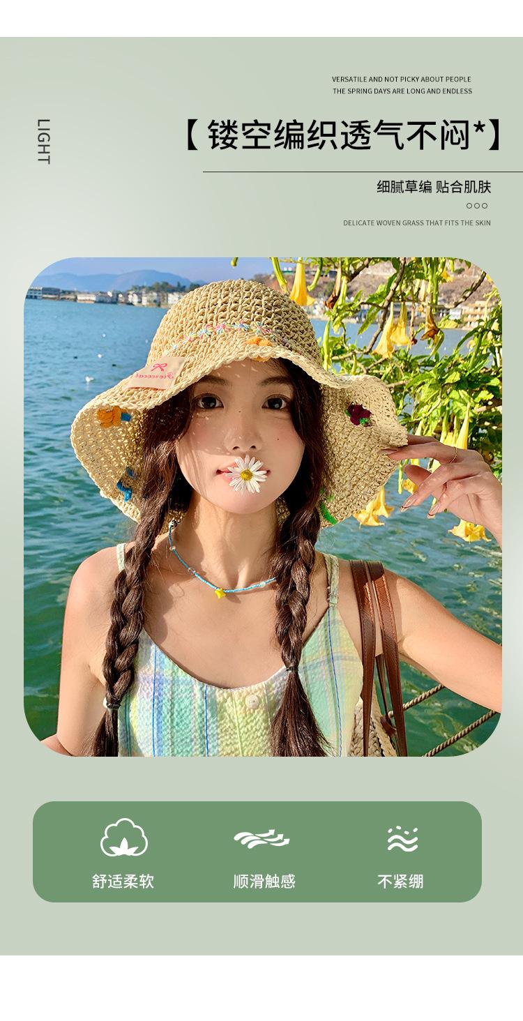 Sombrero Pescador Tejido con Parche de Lazo para Mujer Verano 2025 Nuevo Ala Grande Playa Mar Sombra Sombrero de Paja