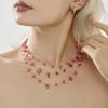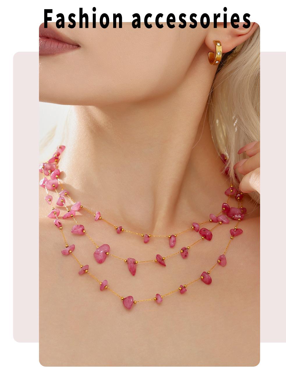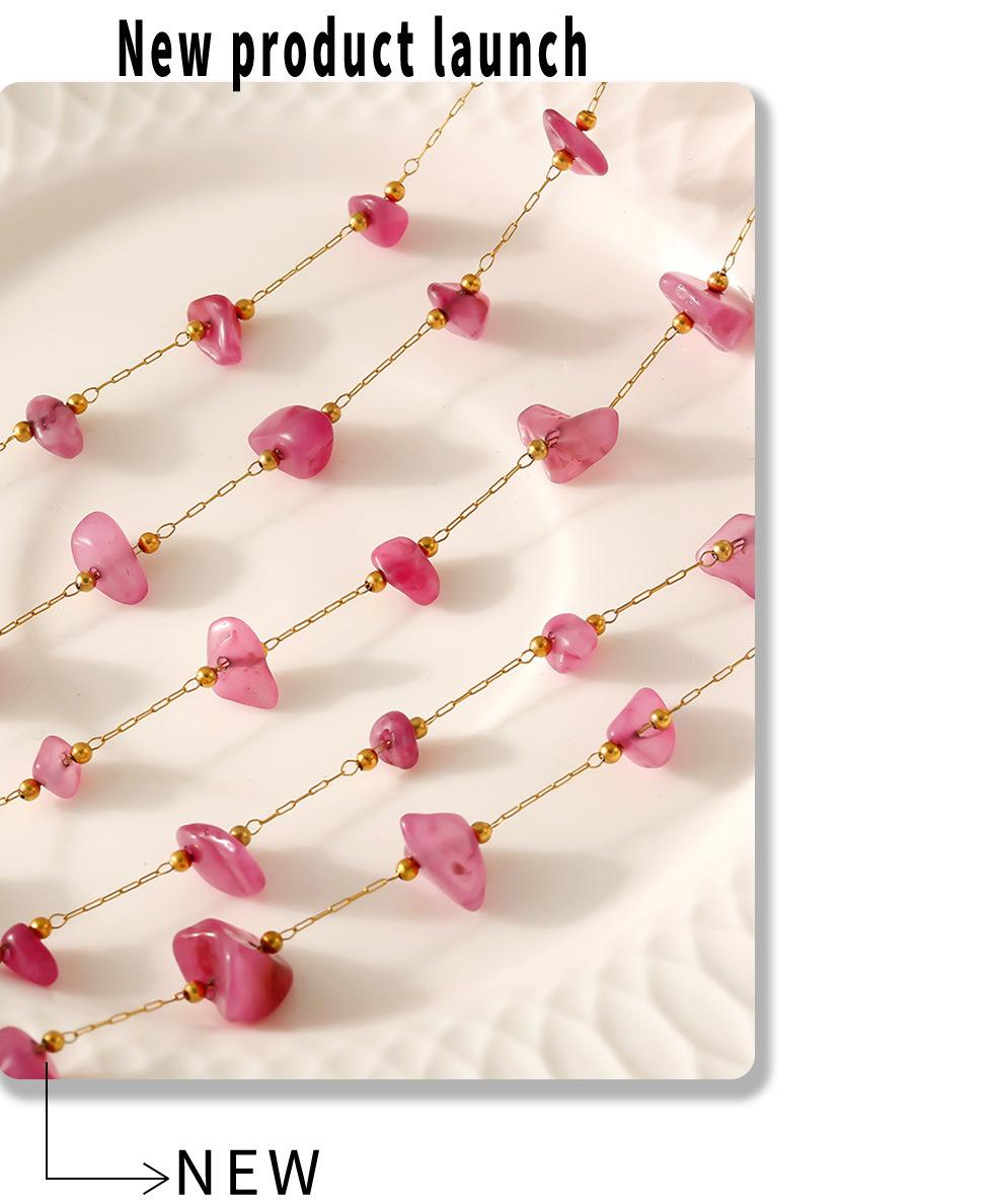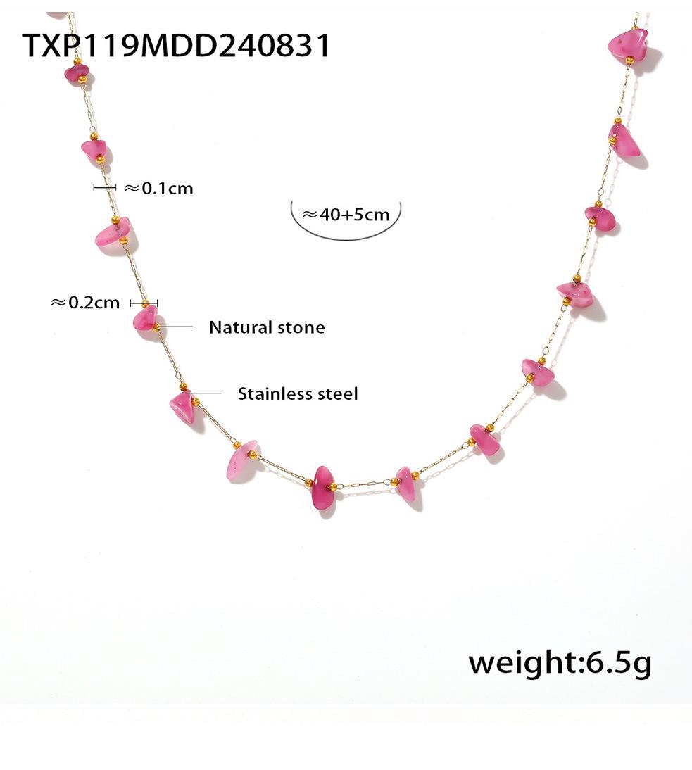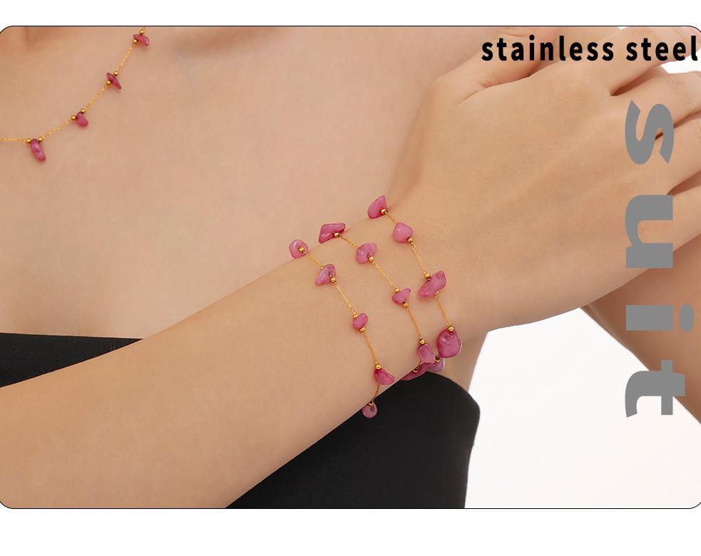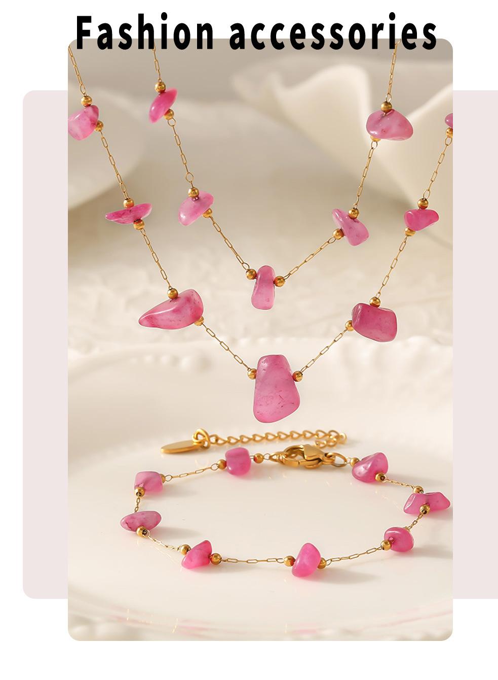 Collar y pulsera de clavícula de acero inoxidable estilo bohemio con piedra natural rosa, de lujo, hecho a mano, para mujer.