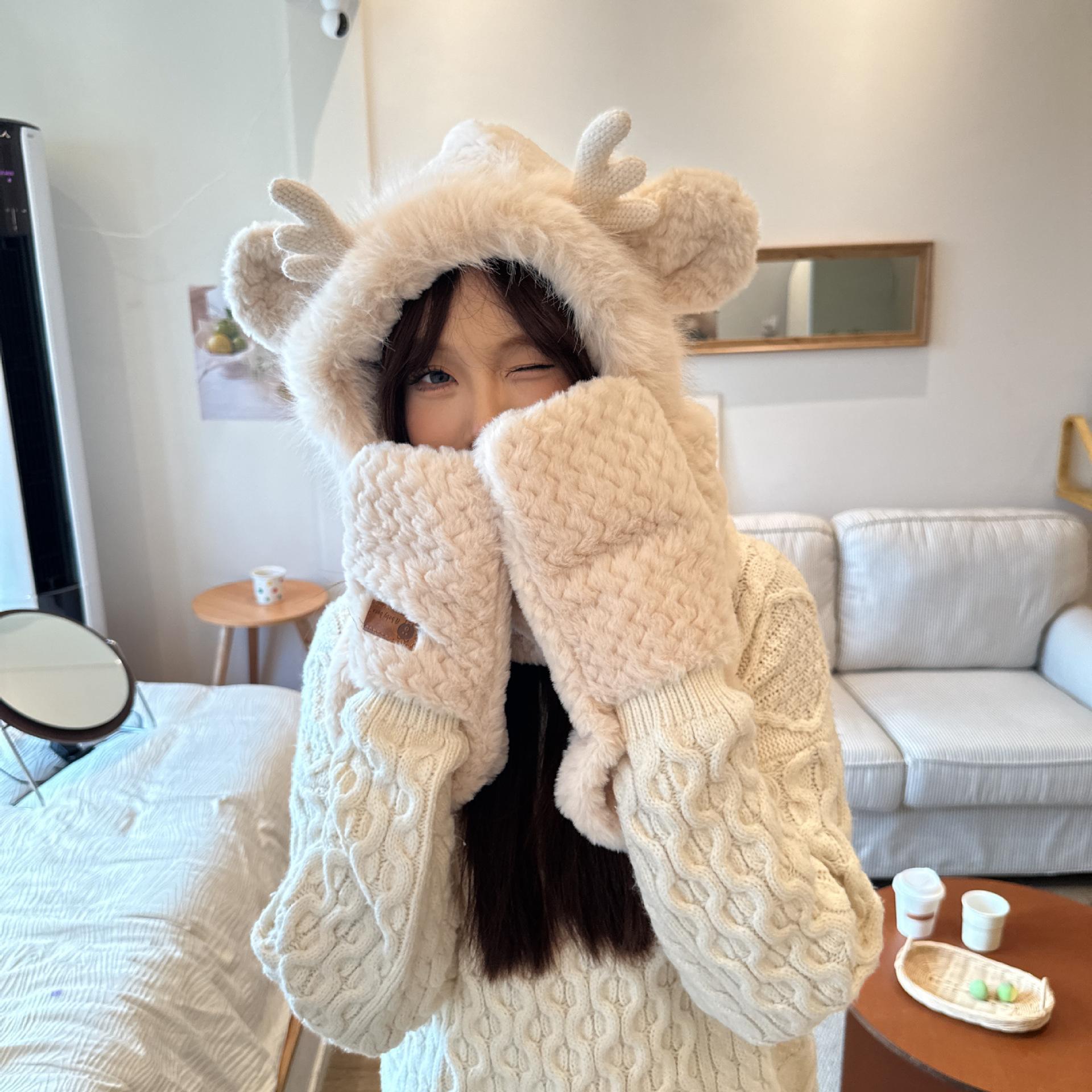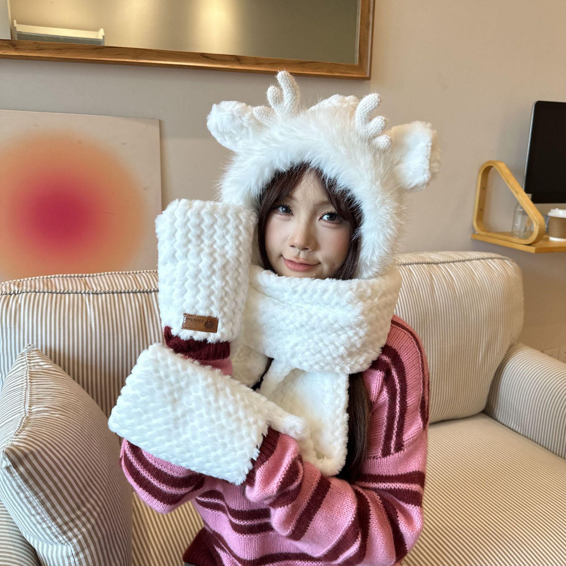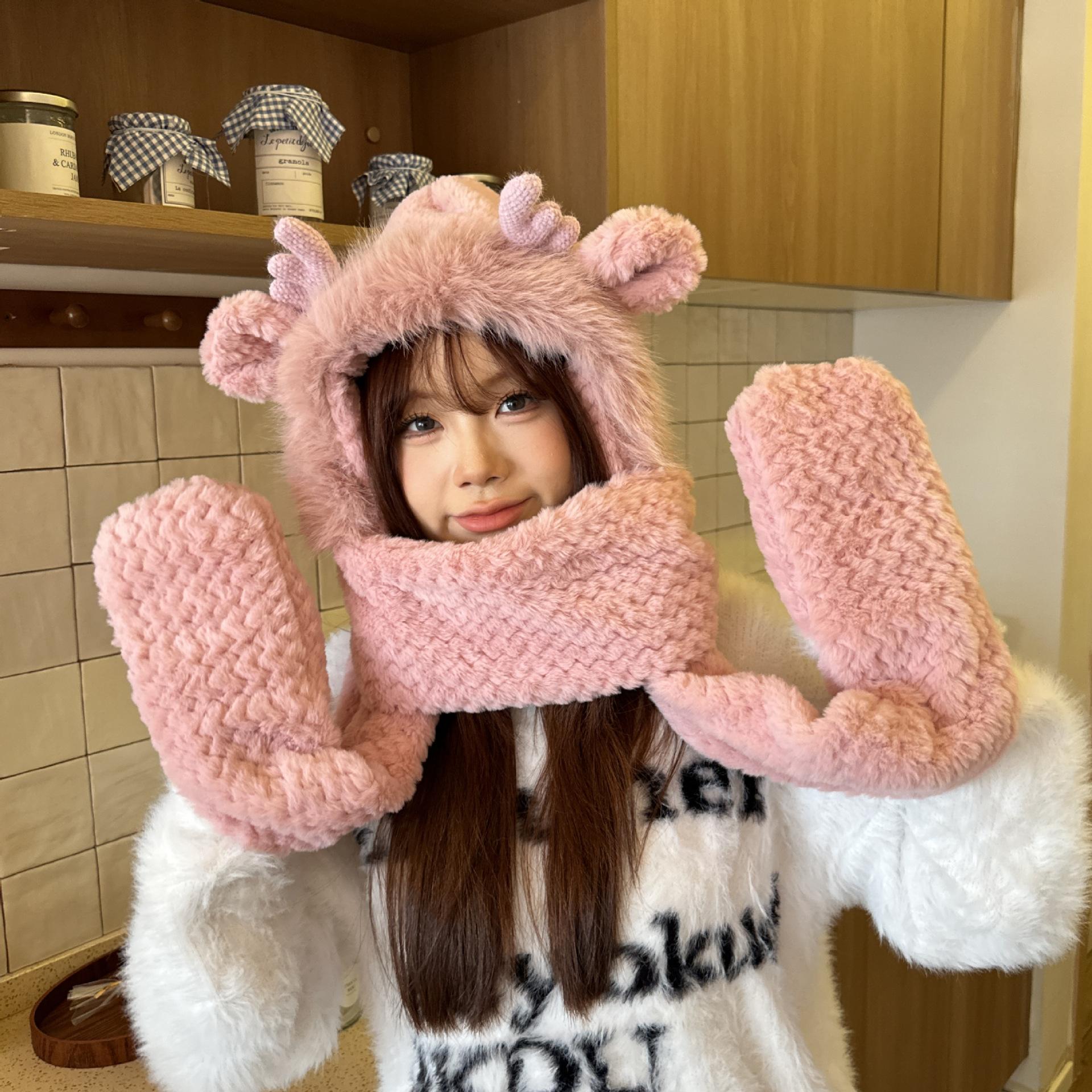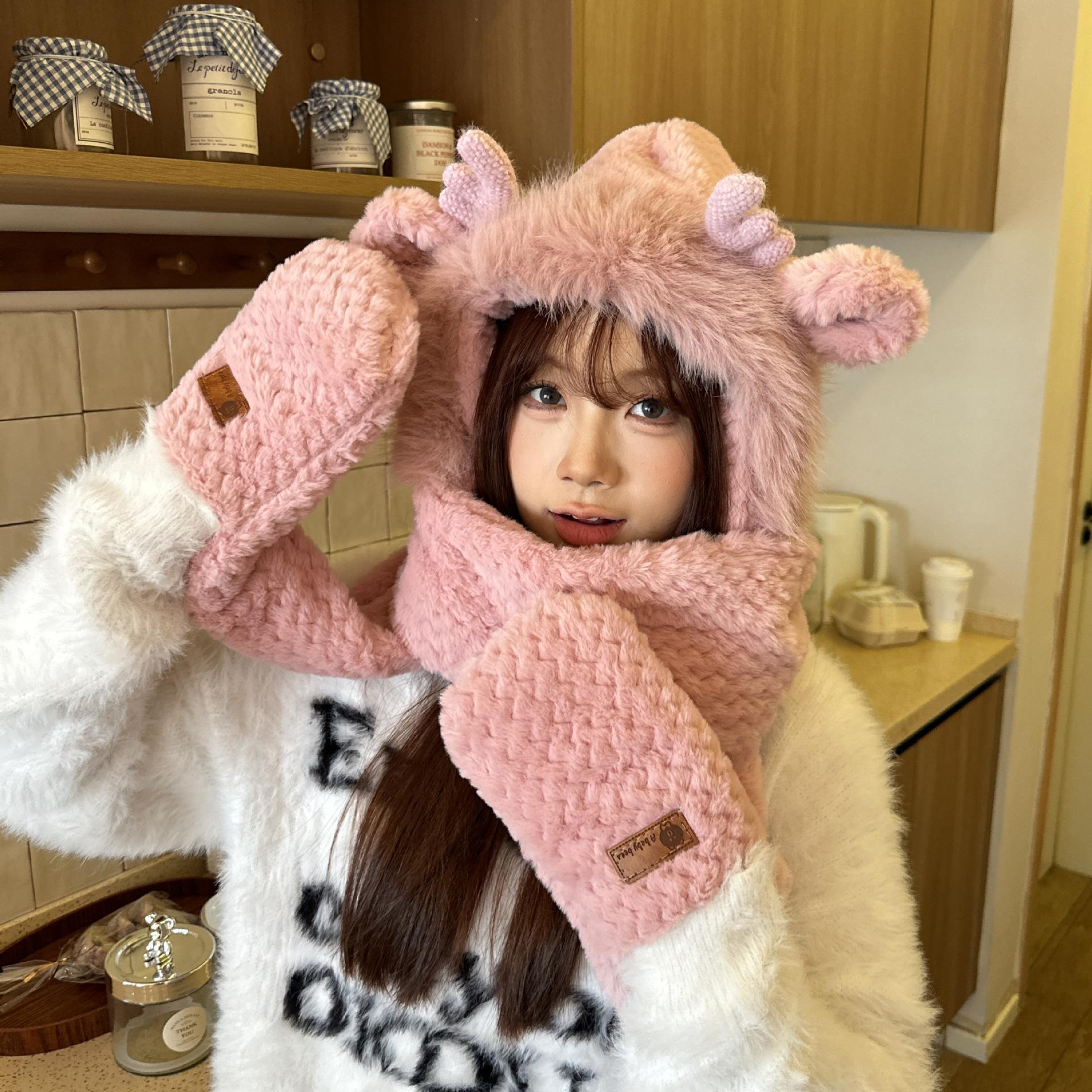Sombrero de Oso, Bufanda y Guantes Todo en Uno de Dibujos Animados Invierno para Mujer Ciclismo al Aire Libre a Prueba de Frío y Cálido Bufanda Gruesa Conjunto de Tres Piezas