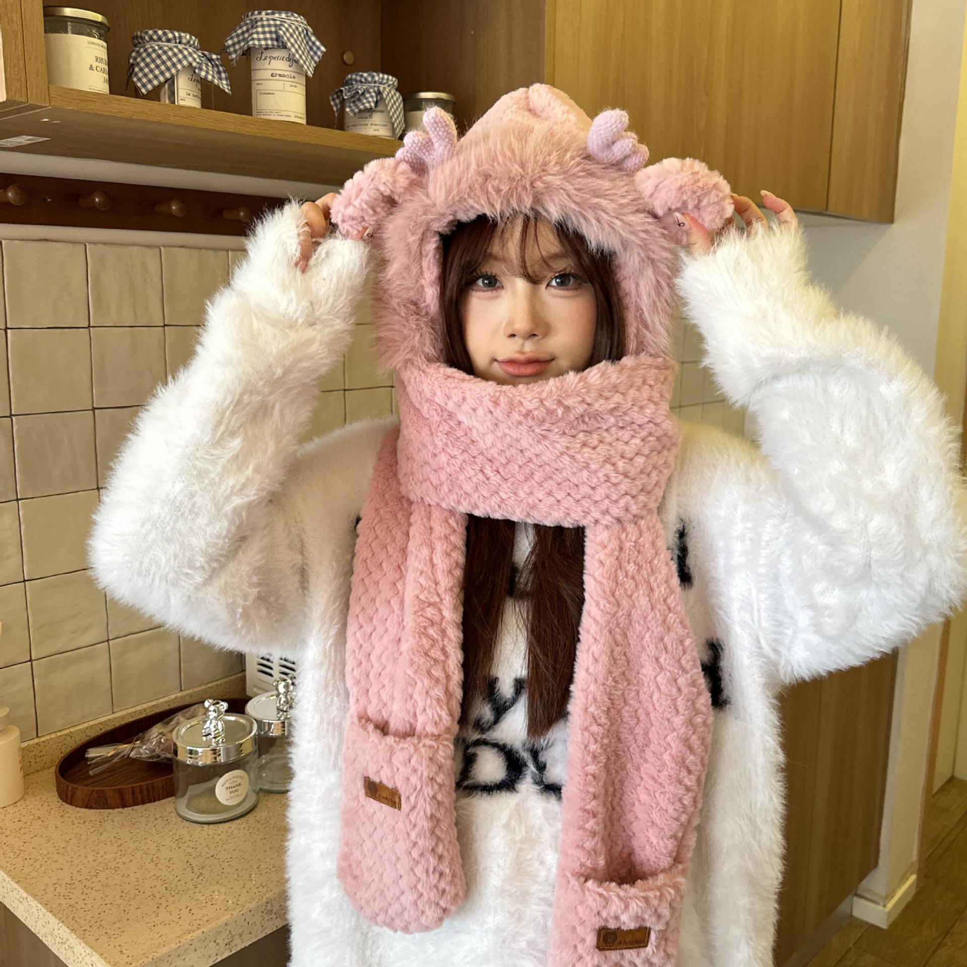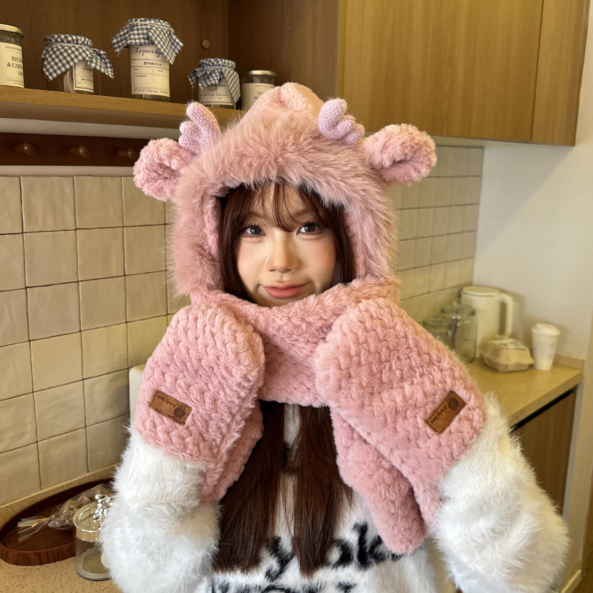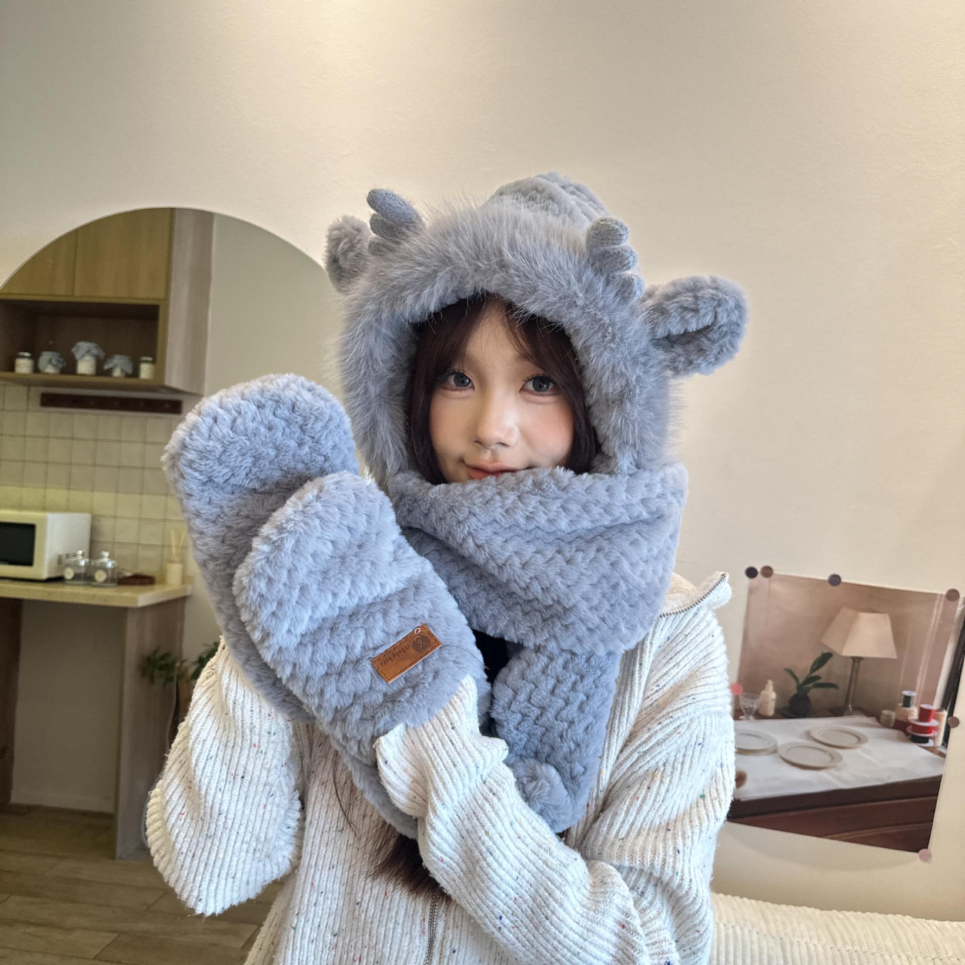Sombrero de Oso, Bufanda y Guantes Todo en Uno de Dibujos Animados Invierno para Mujer Ciclismo al Aire Libre a Prueba de Frío y Cálido Bufanda Gruesa Conjunto de Tres Piezas