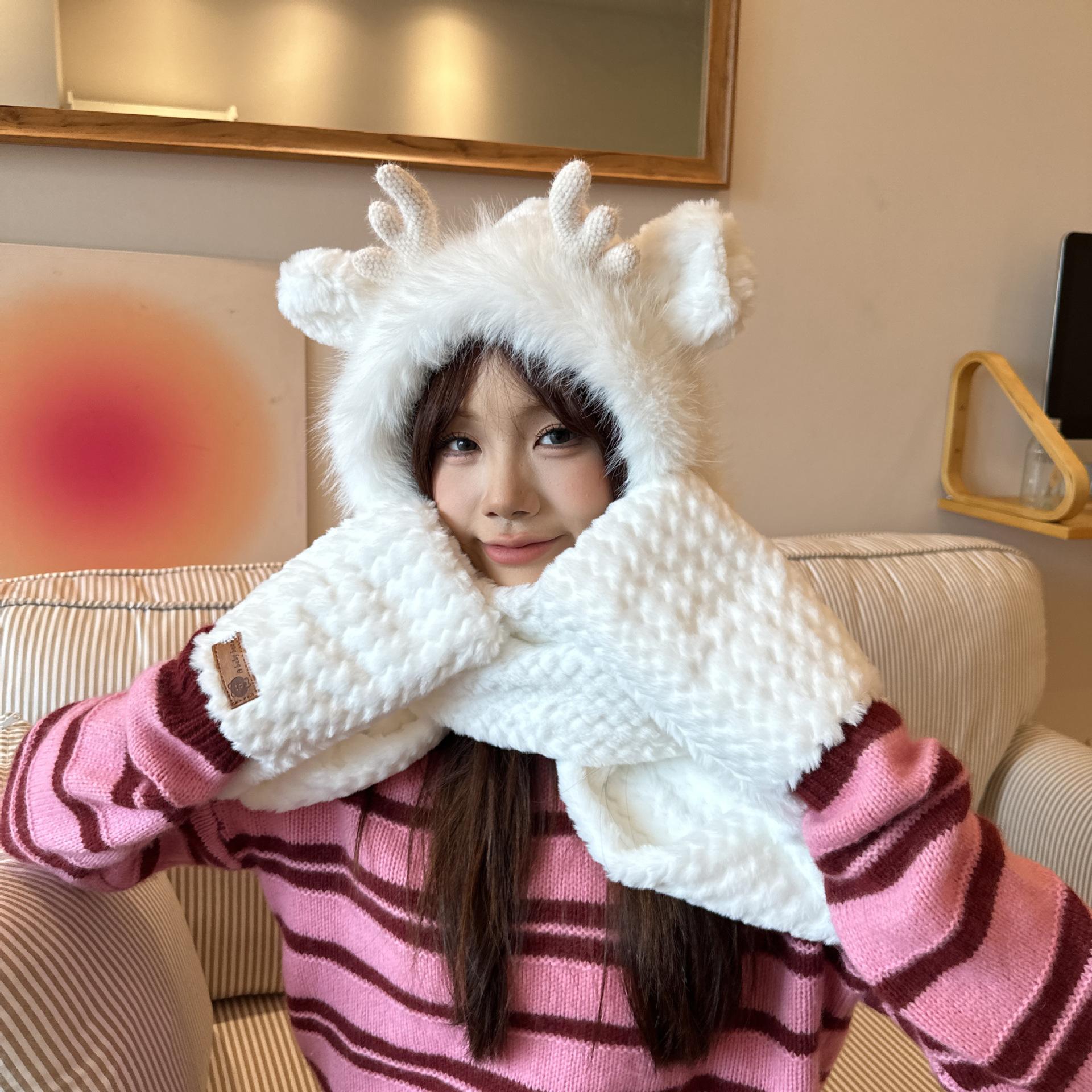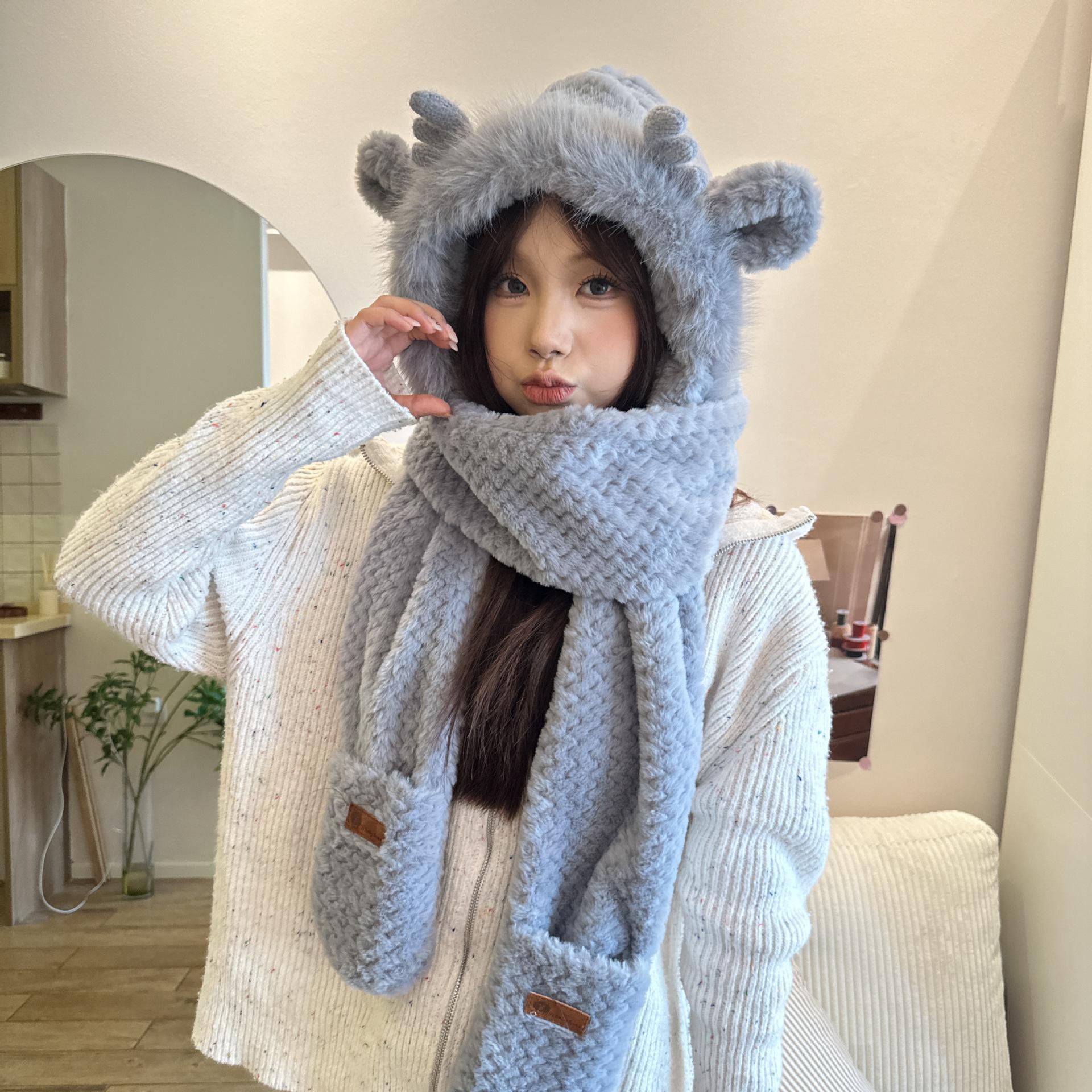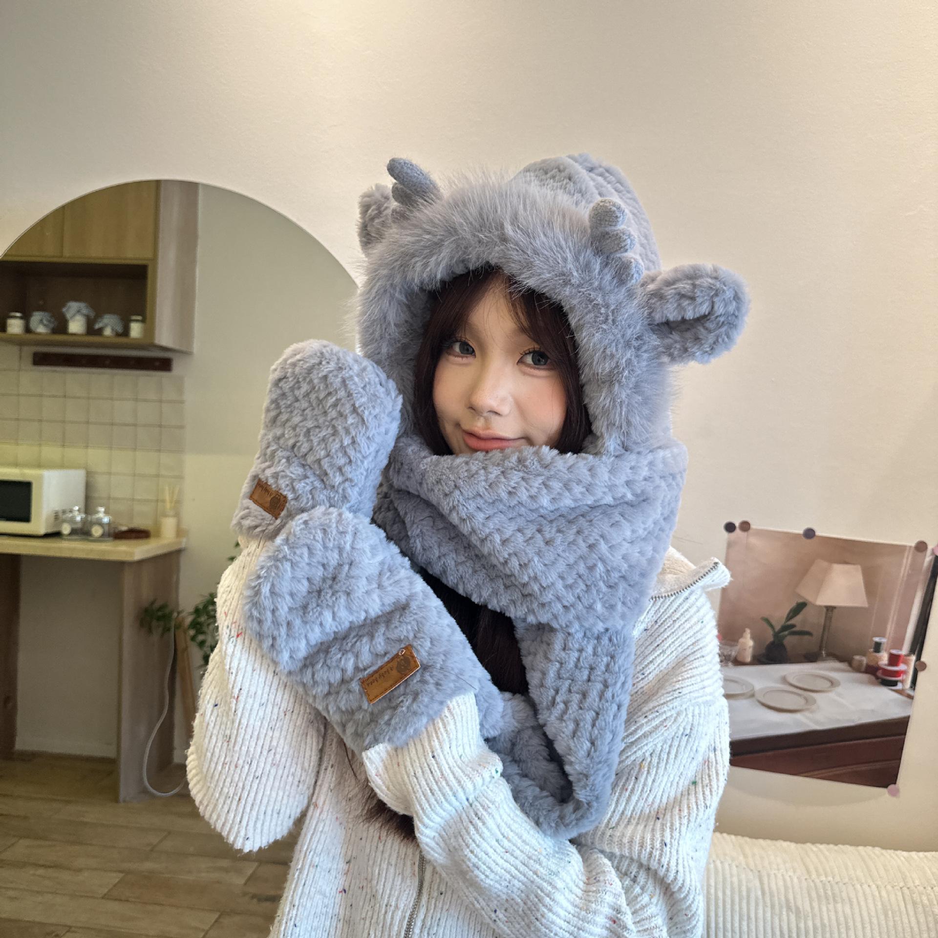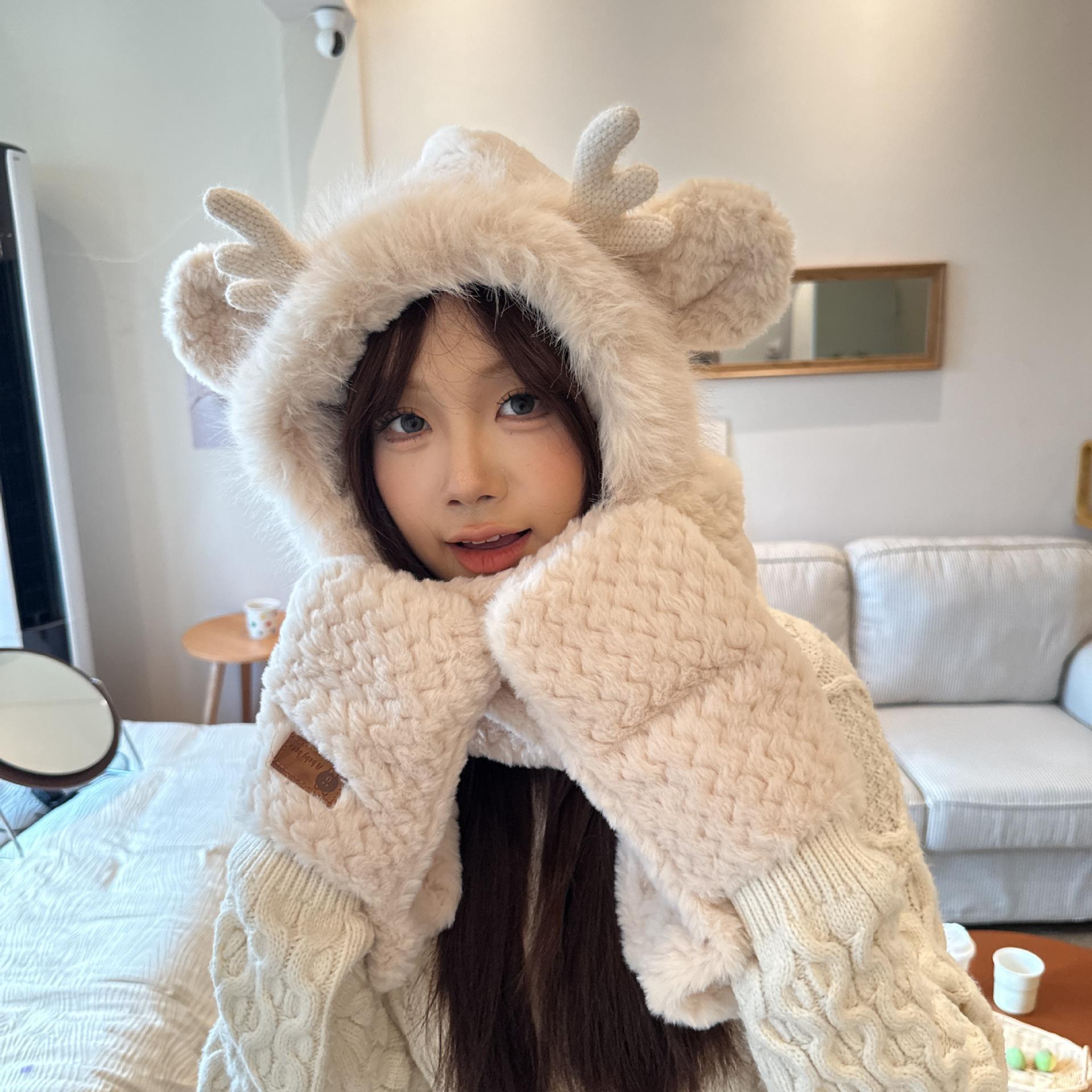 Sombrero de Oso, Bufanda y Guantes Todo en Uno de Dibujos Animados Invierno para Mujer Ciclismo al Aire Libre a Prueba de Frío y Cálido Bufanda Gruesa Conjunto de Tres Piezas