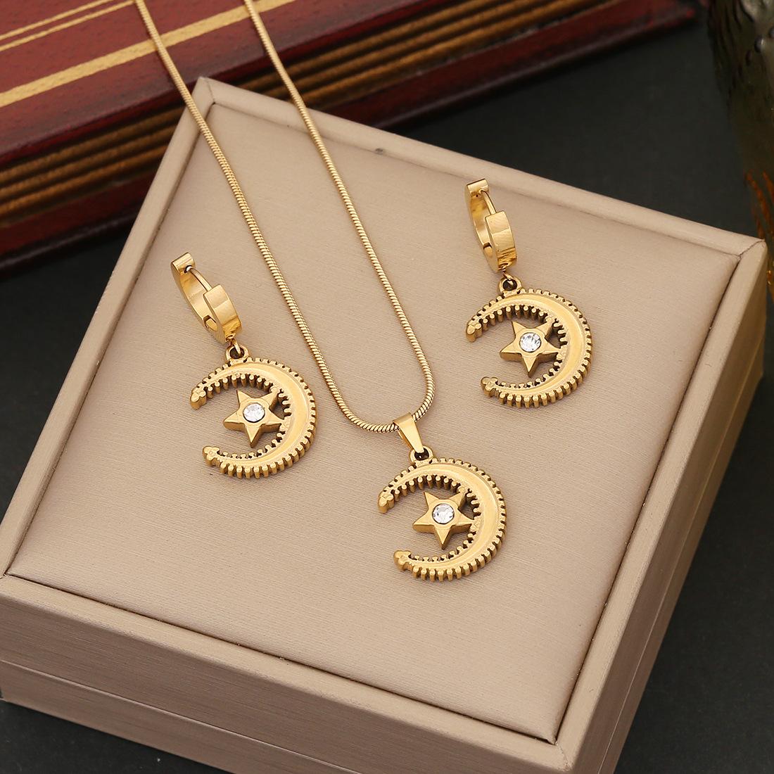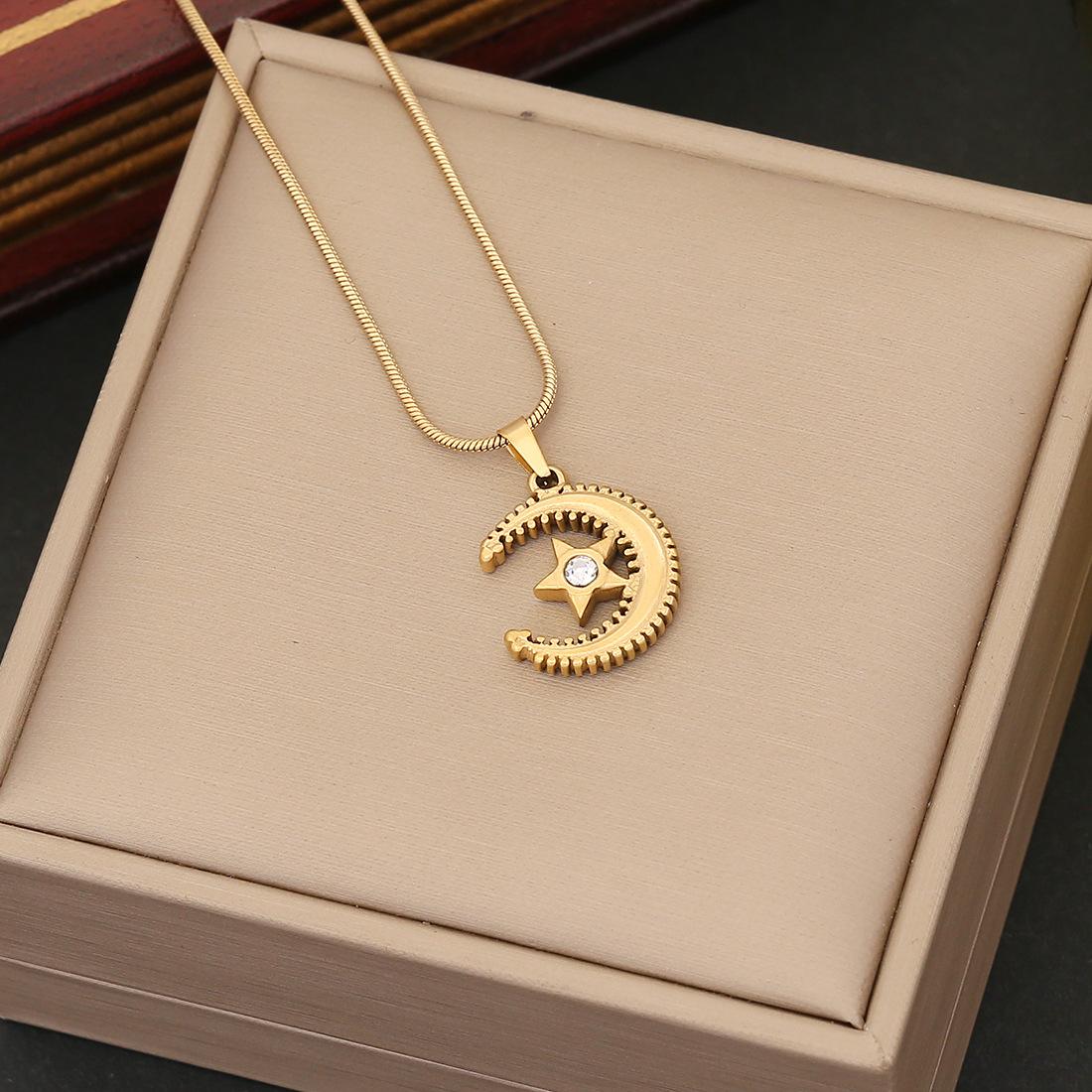 [Bingmeng] Collar de acero inoxidable con diseño de estrella y luna, ideal para el suministro transfronterizo de joyas europeas y americanas N1338