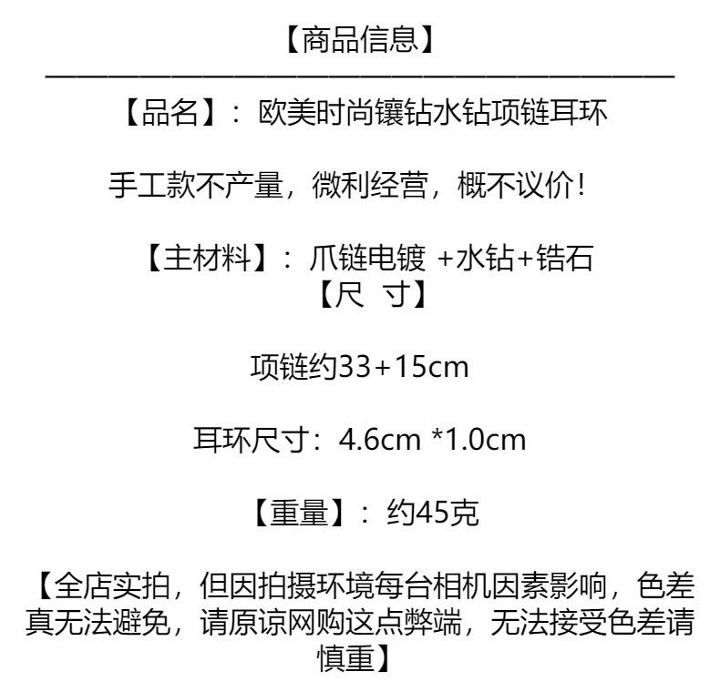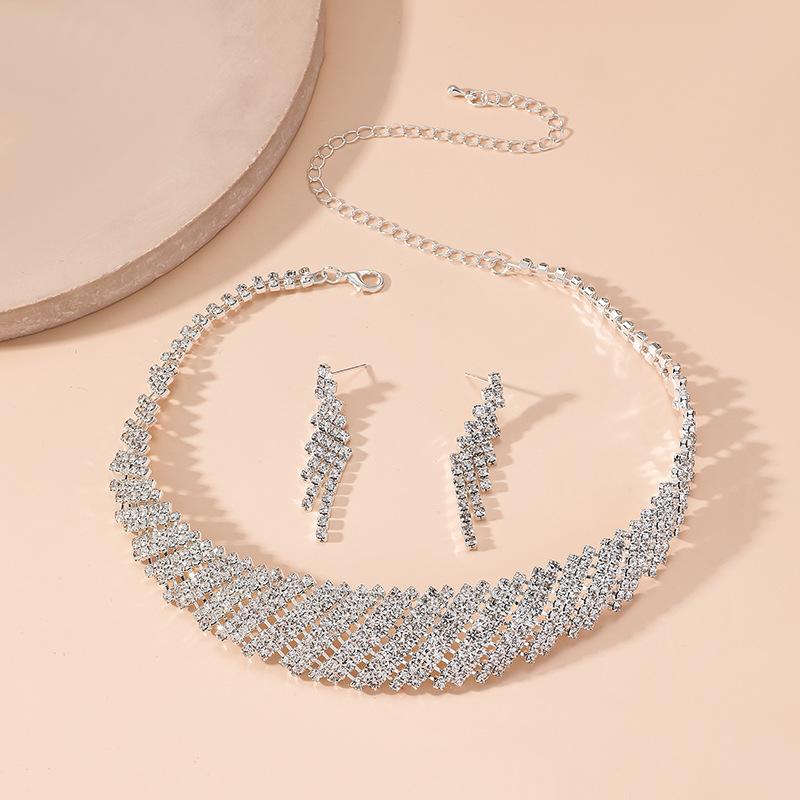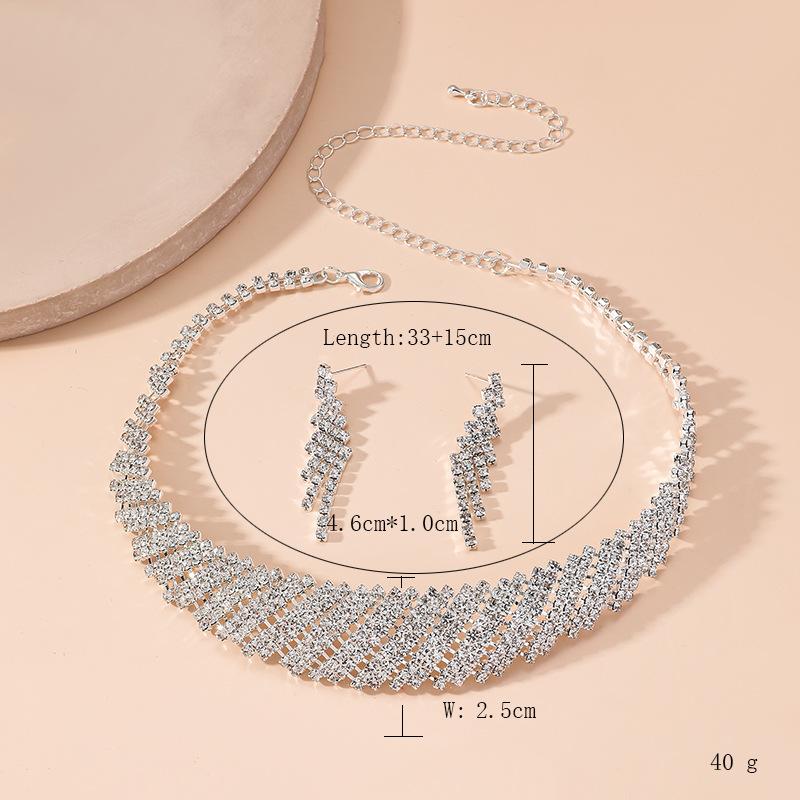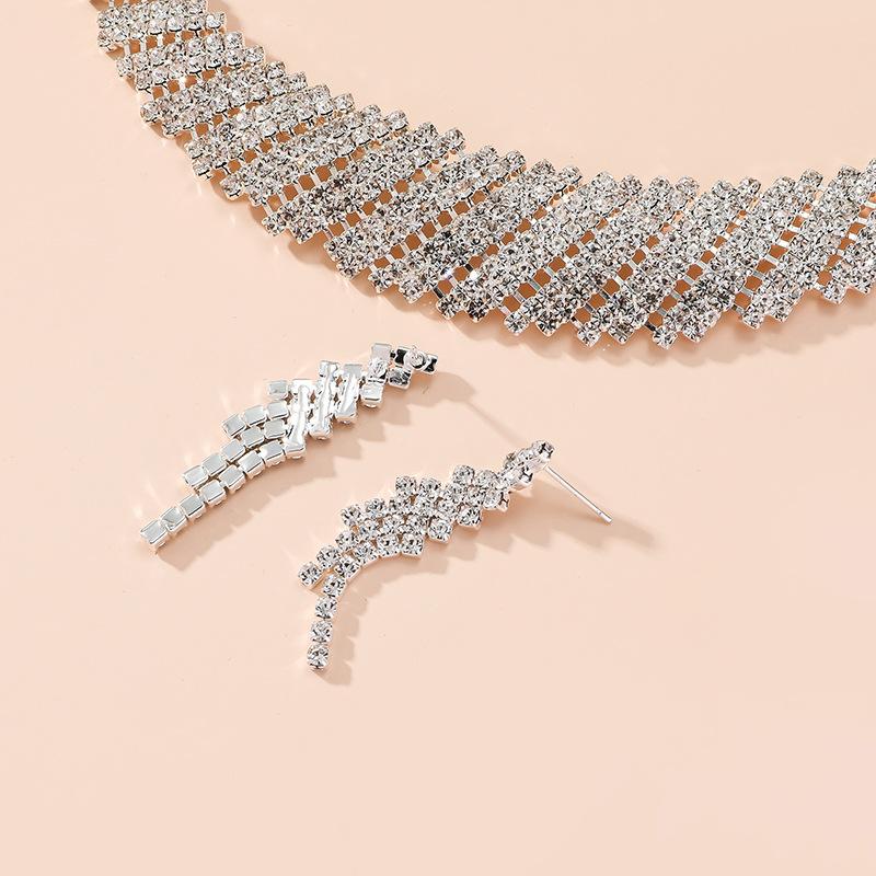 Joyería de la serie de cadena de garras de nueva moda europea y americana, juego de collar y aretes de diamantes de imitación, collar de cadena de clavícula para cena para mujer