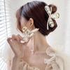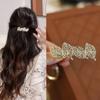 6.5cm-gold background white diamond four-leaf rhinestone spring clip