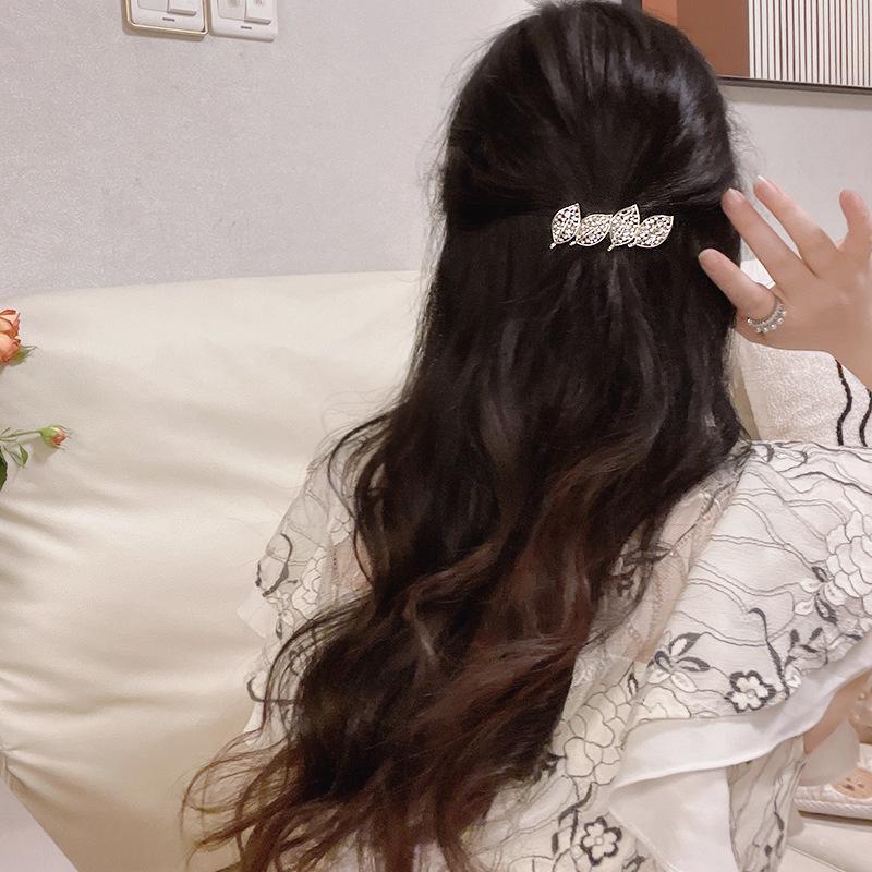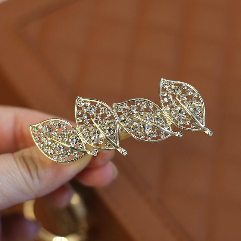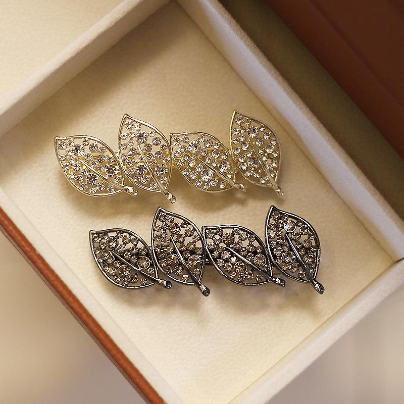 Nuevas pinzas para el cabello pequeñas con hojas de diamantes de imitación, accesorios para el cabello con pinzas laterales con resorte Mori.
