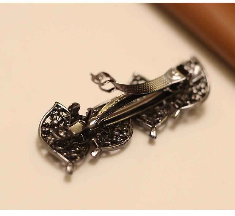 6.5cm-gun black four-leaf rhinestone spring clip, 6.5cm-gold background white diamond four-leaf rhinestone spring clip