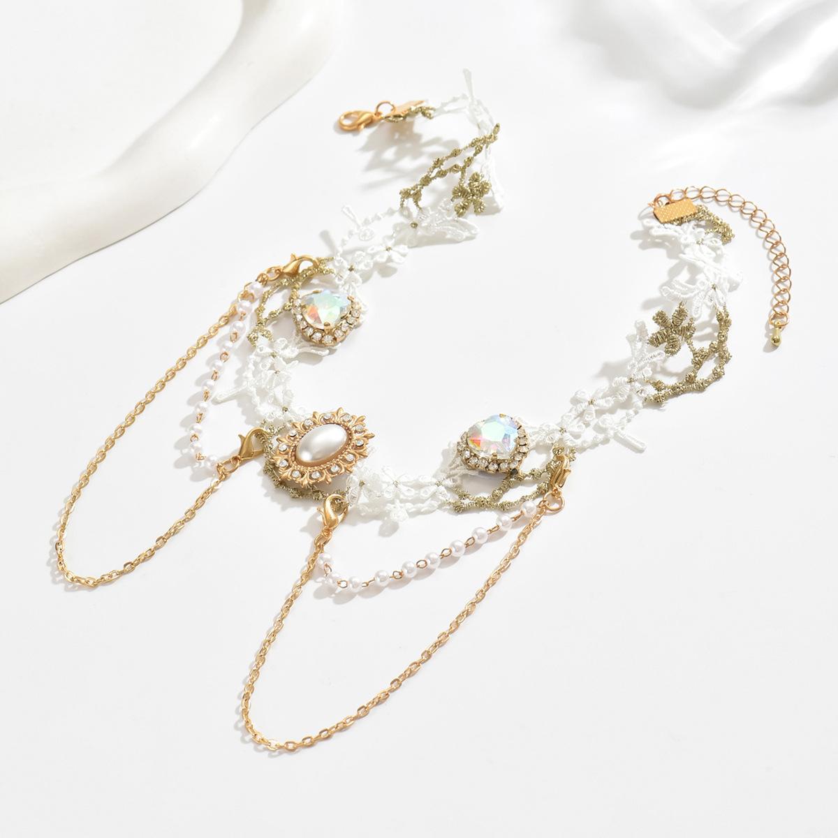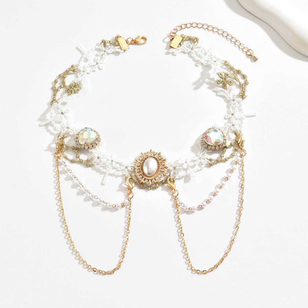Collar Choker con Sentido del Diseño Lolita Encaje Blanco Cadena Ins Borla de Perlas Pedrería Cadena de Cuello Collar
