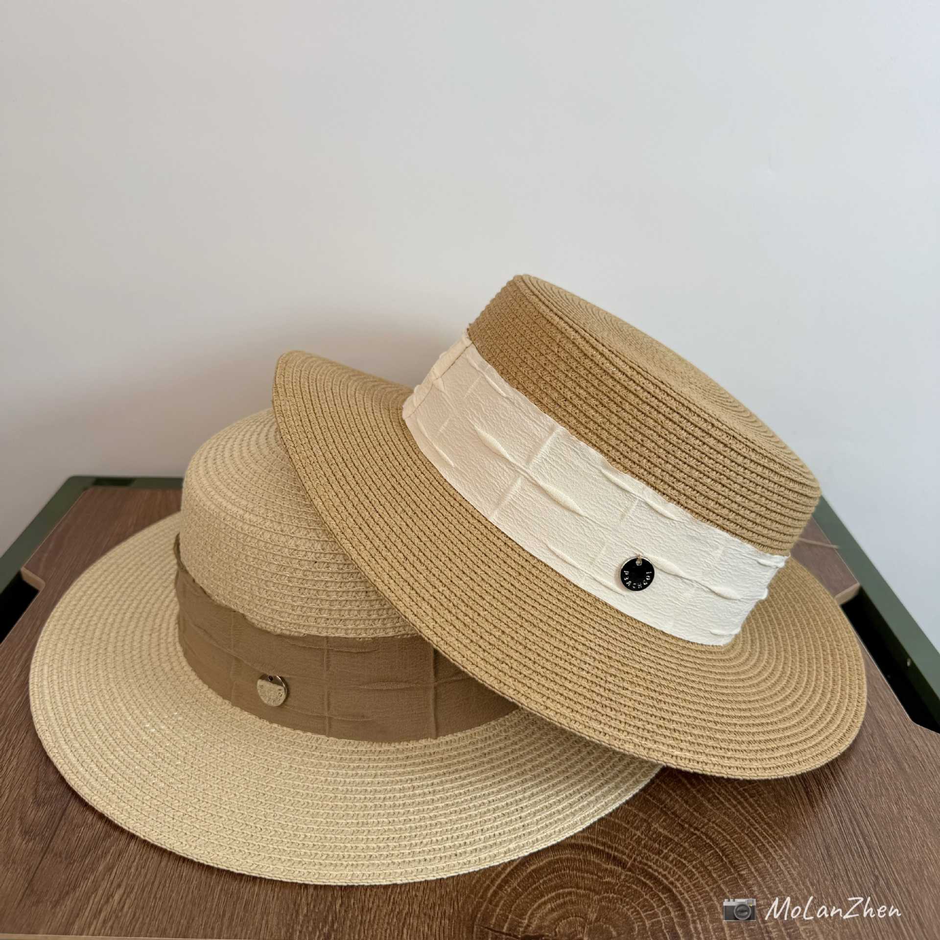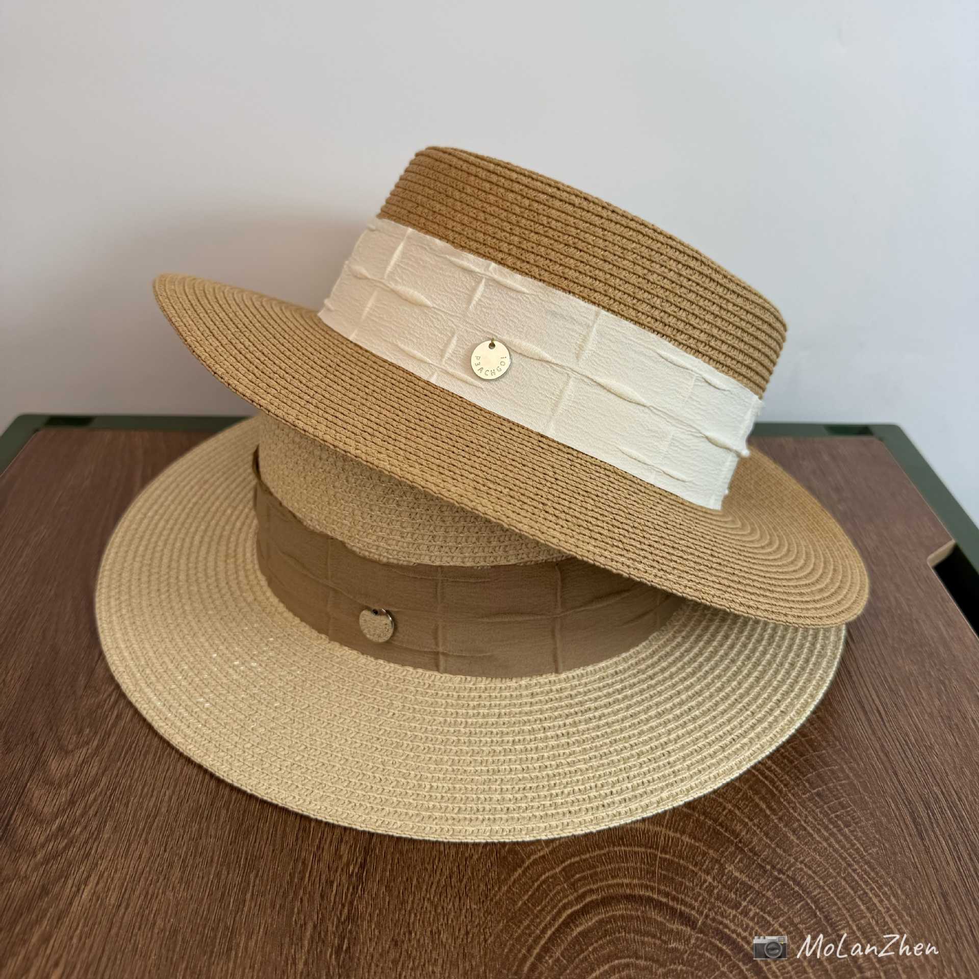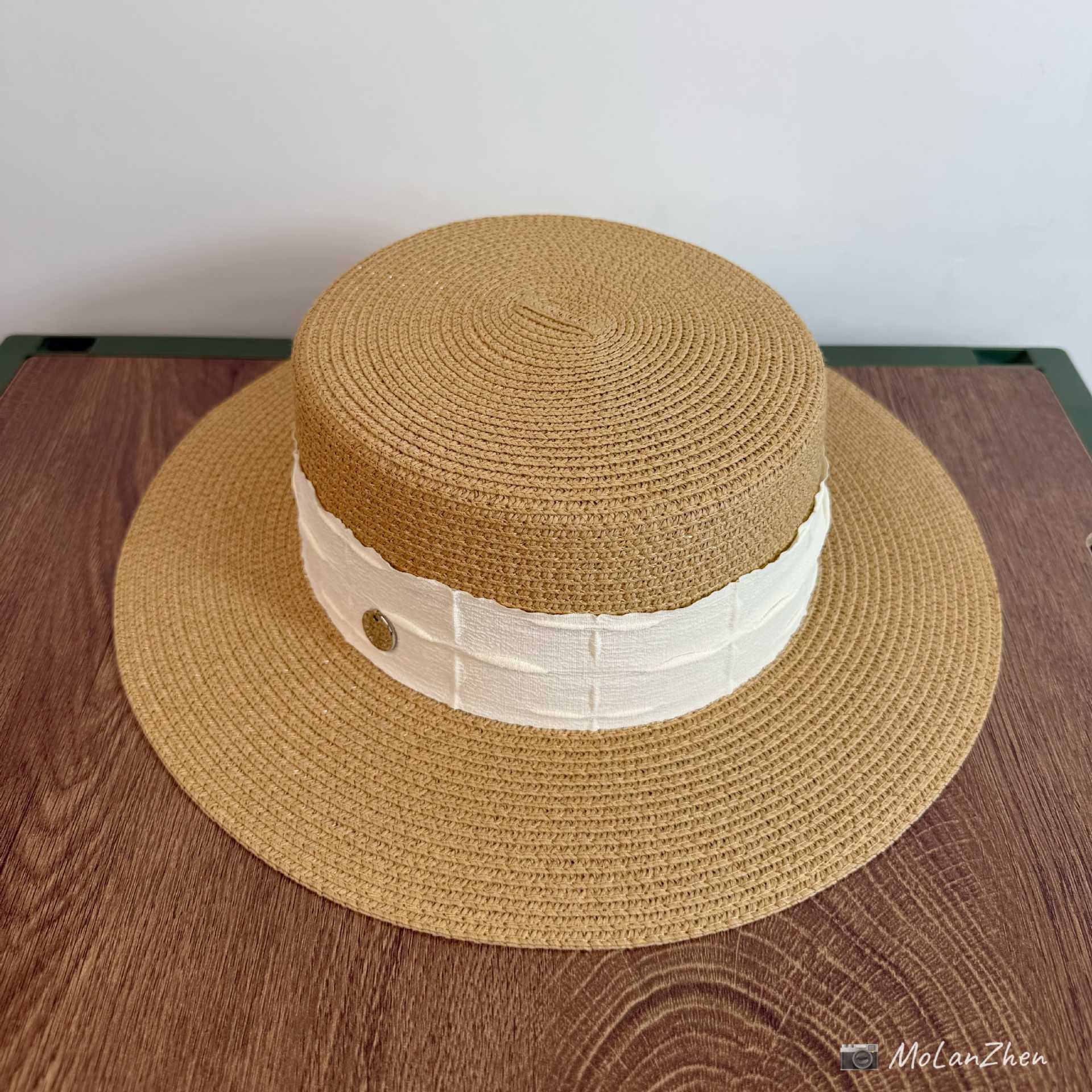 Sombrero de paja de estilo francés con parte superior plana para mujer, ideal para vacaciones en la playa, verano, playa, ala grande, protector solar, sombrero de copa plana de moda.