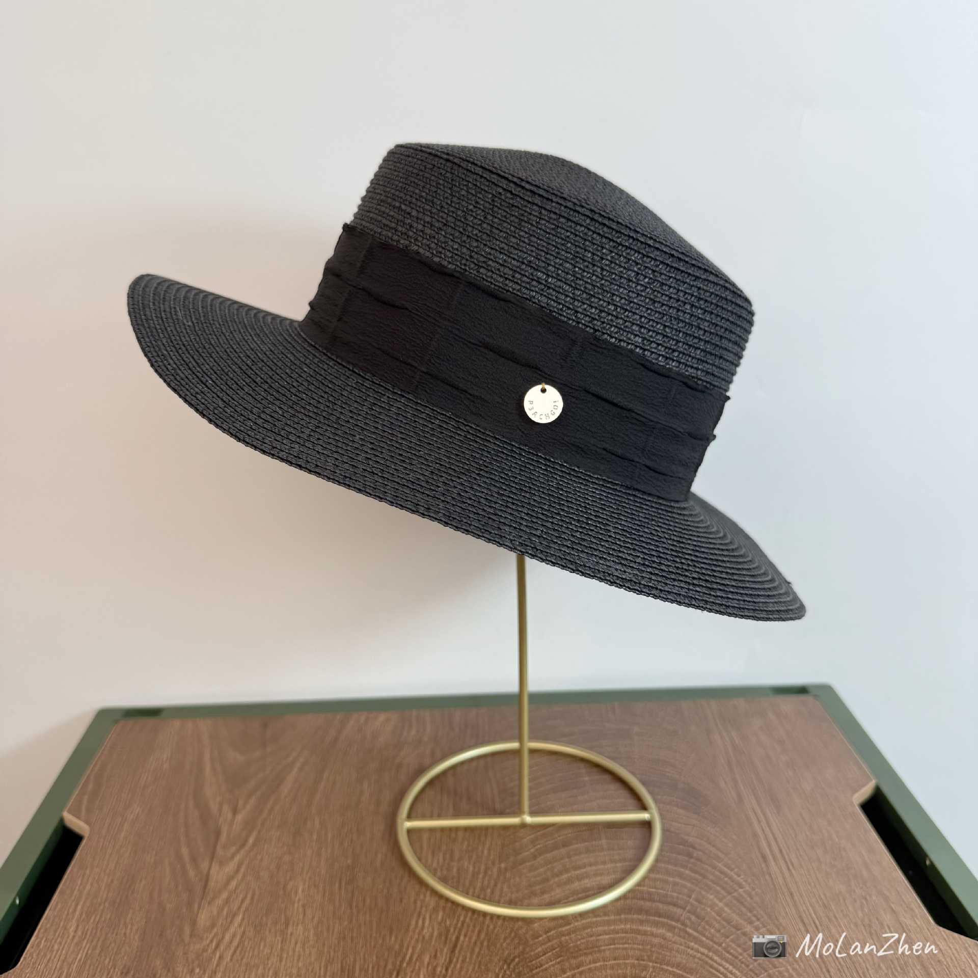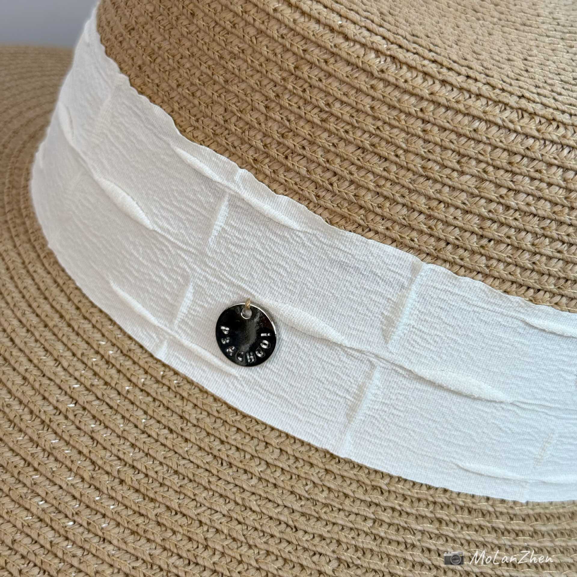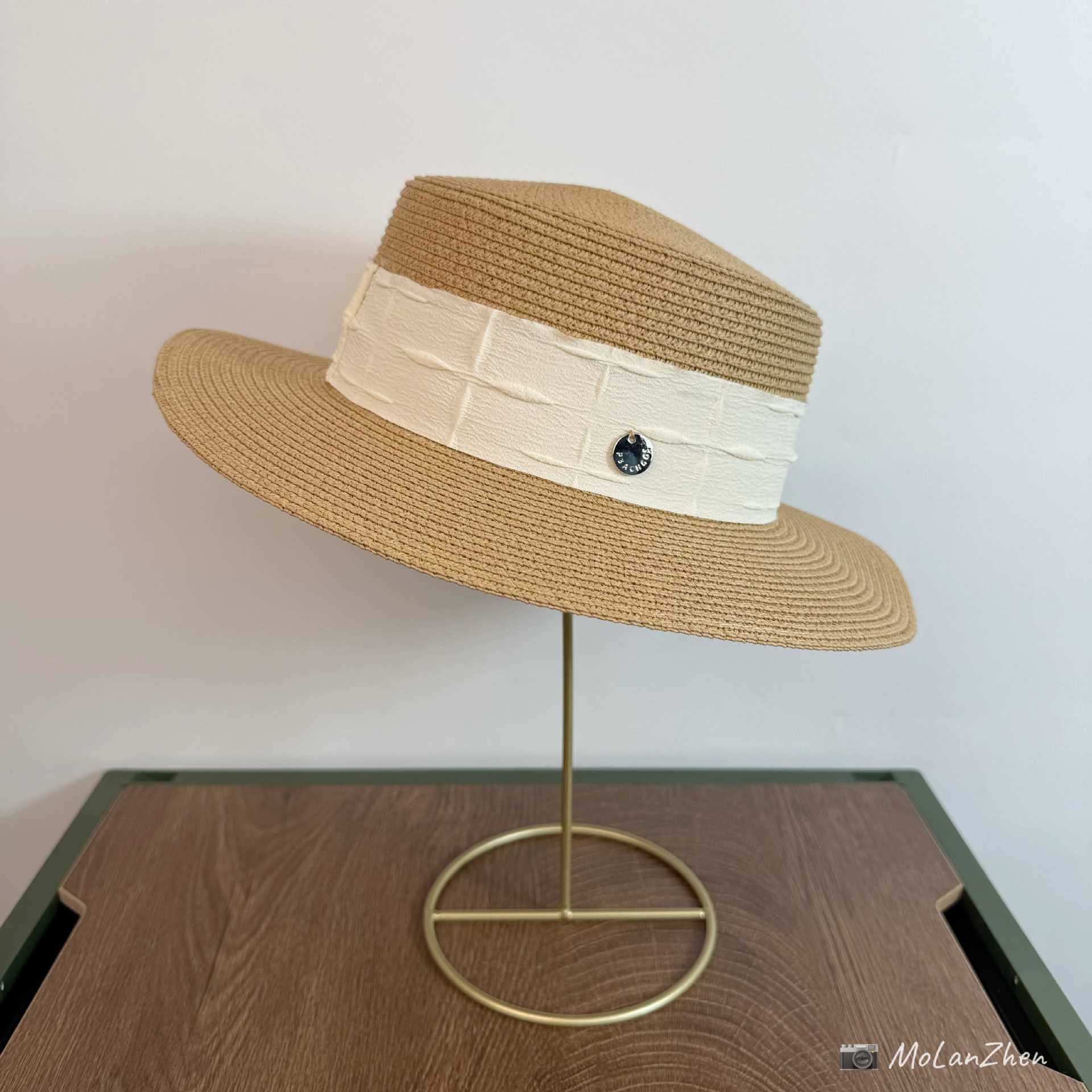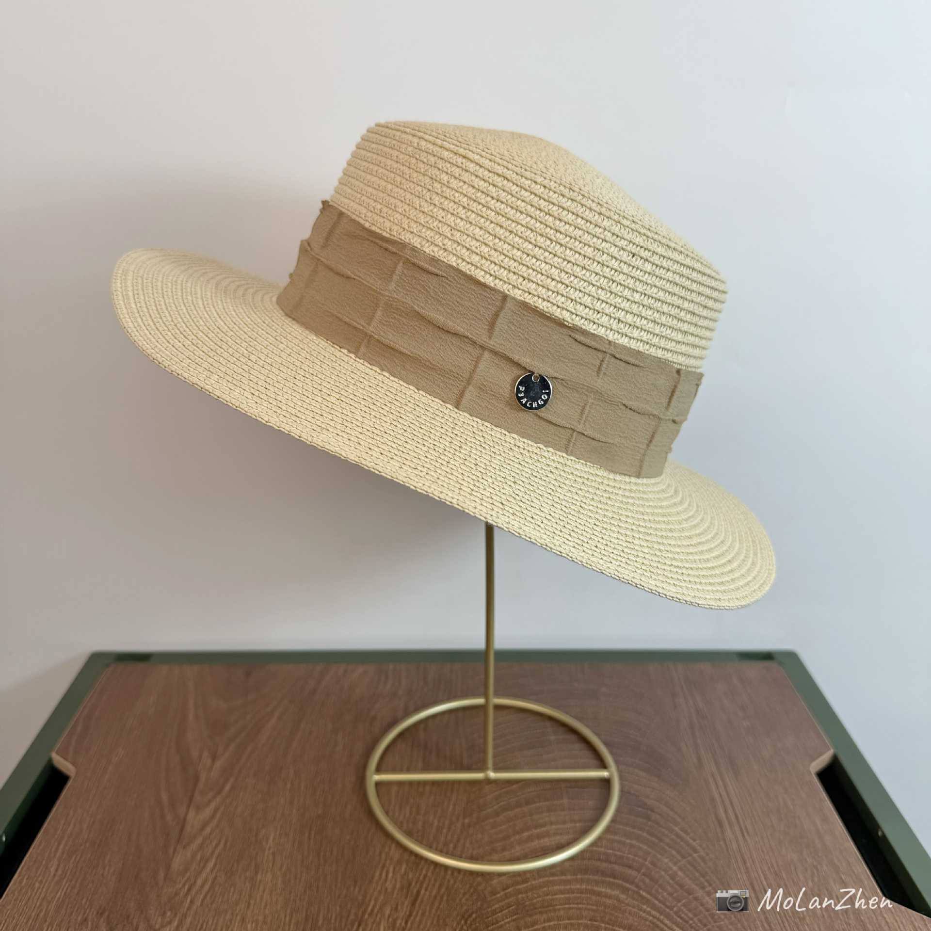 Sombrero de paja de estilo francés con parte superior plana para mujer, ideal para vacaciones en la playa, verano, playa, ala grande, protector solar, sombrero de copa plana de moda.