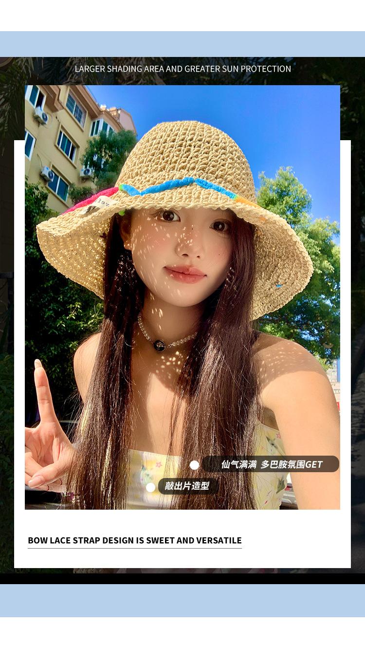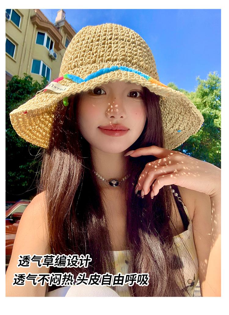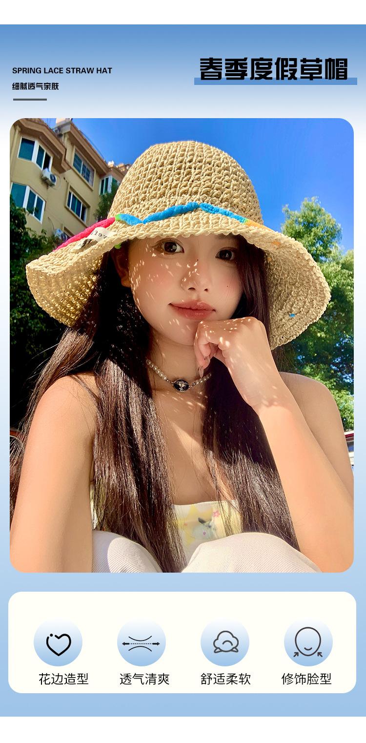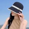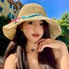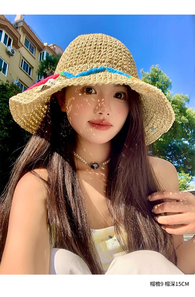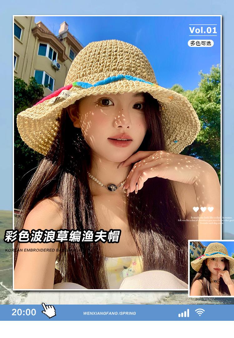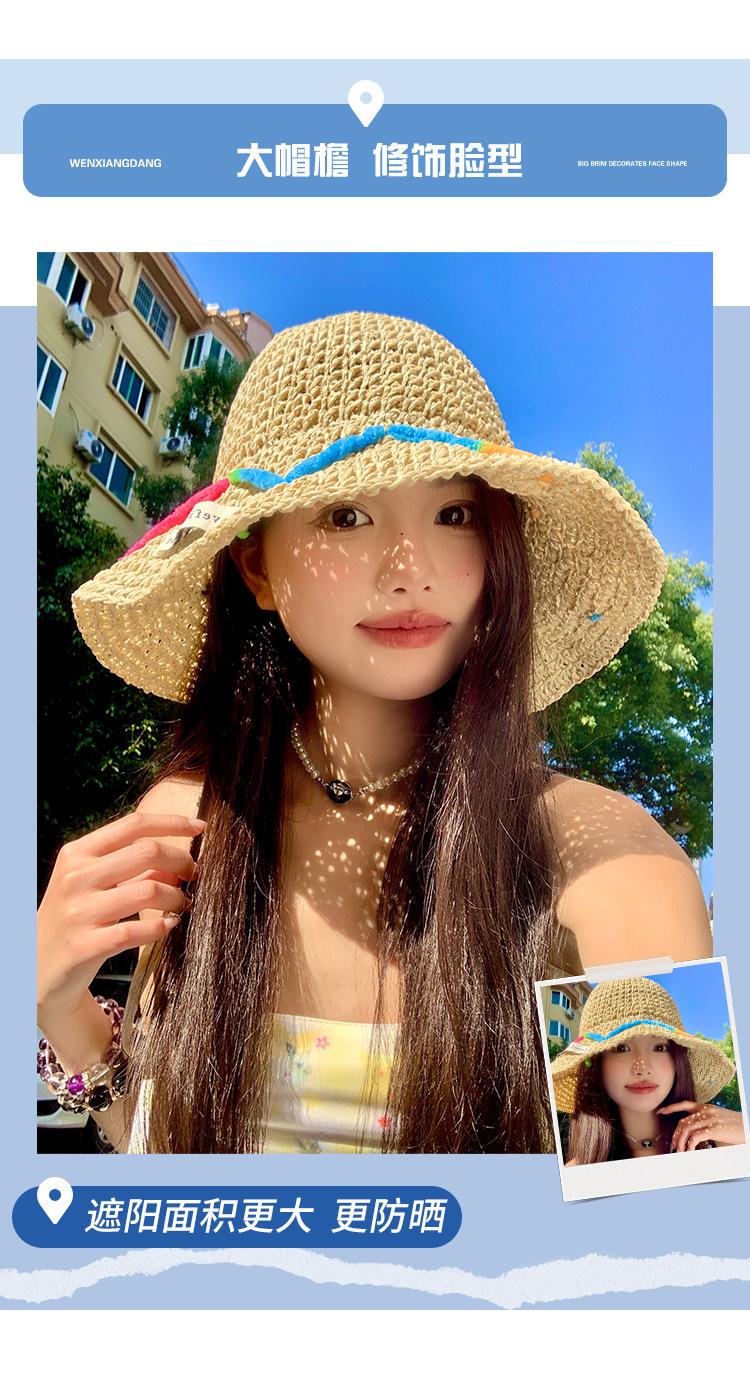 2025 Nuevo Sombrero de Paja Tejido a Mano Sombrero de Playa para Vacaciones de Verano para Mujer Ala Ancha Protección UV Sombrero de Pescador