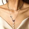 Collar de tres capas con cadena de lentejuelas circulares simples de moda de joyería transfronteriza, colgante con incrustaciones de diamantes de imitación a juego, cadena de suéter