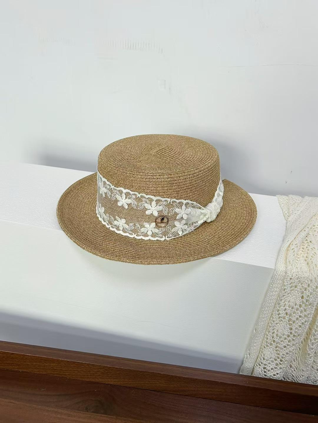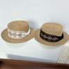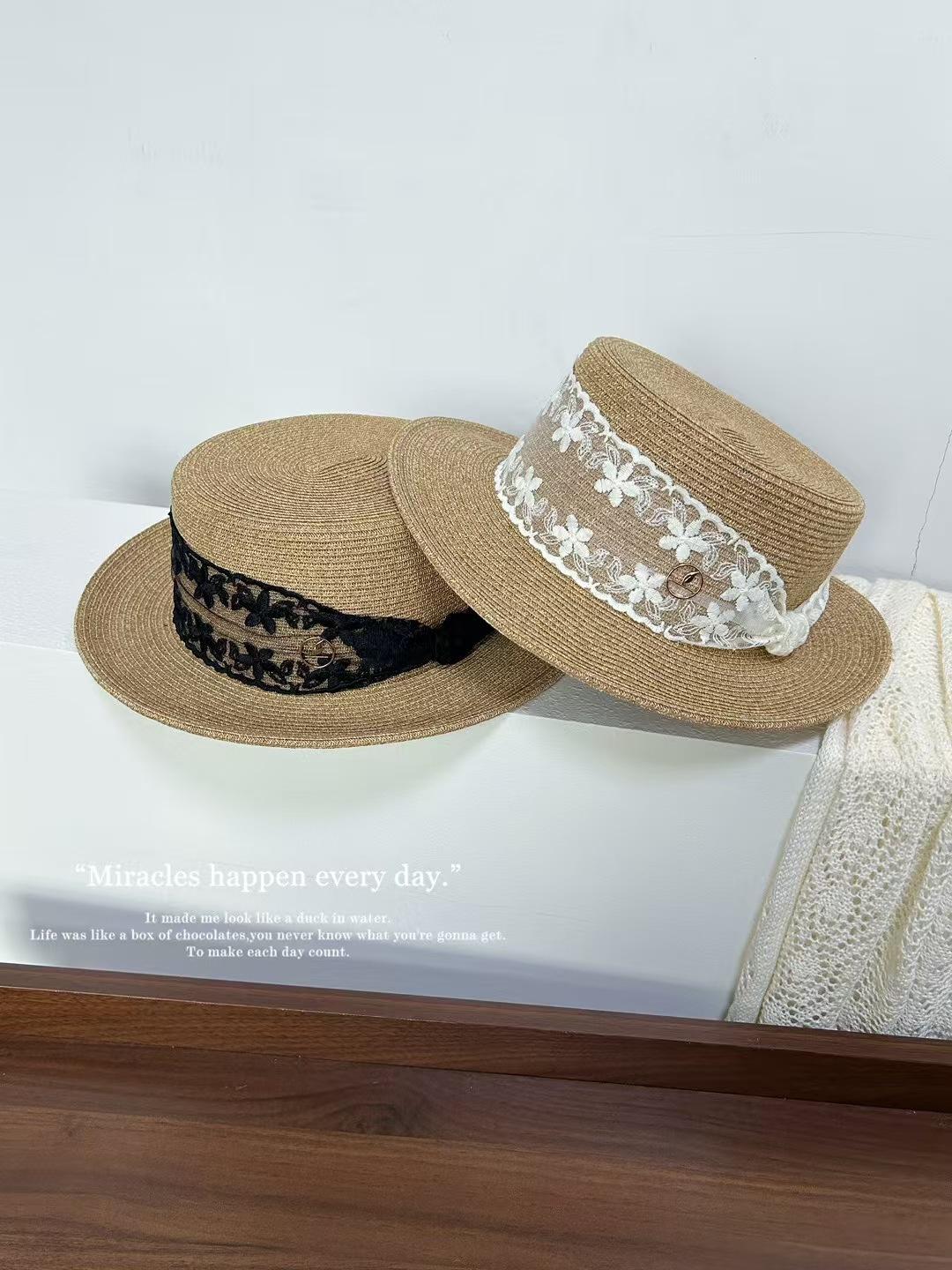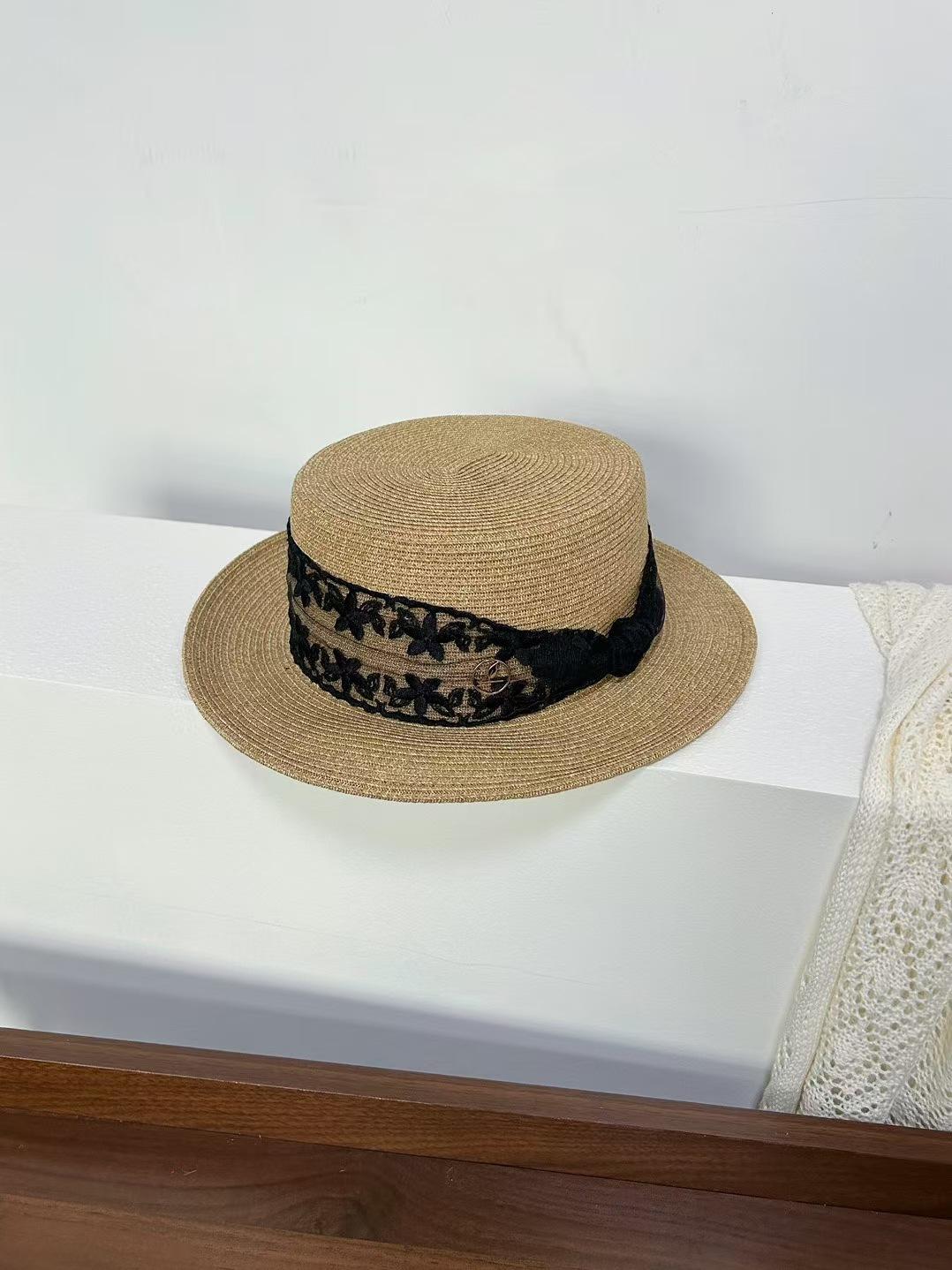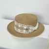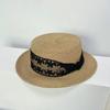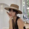 Sombrero de paja de ala ancha de copa plana tejido a mano para dama, protección solar de playa para vacaciones de verano, celebridad de internet, sombrero francés para dama