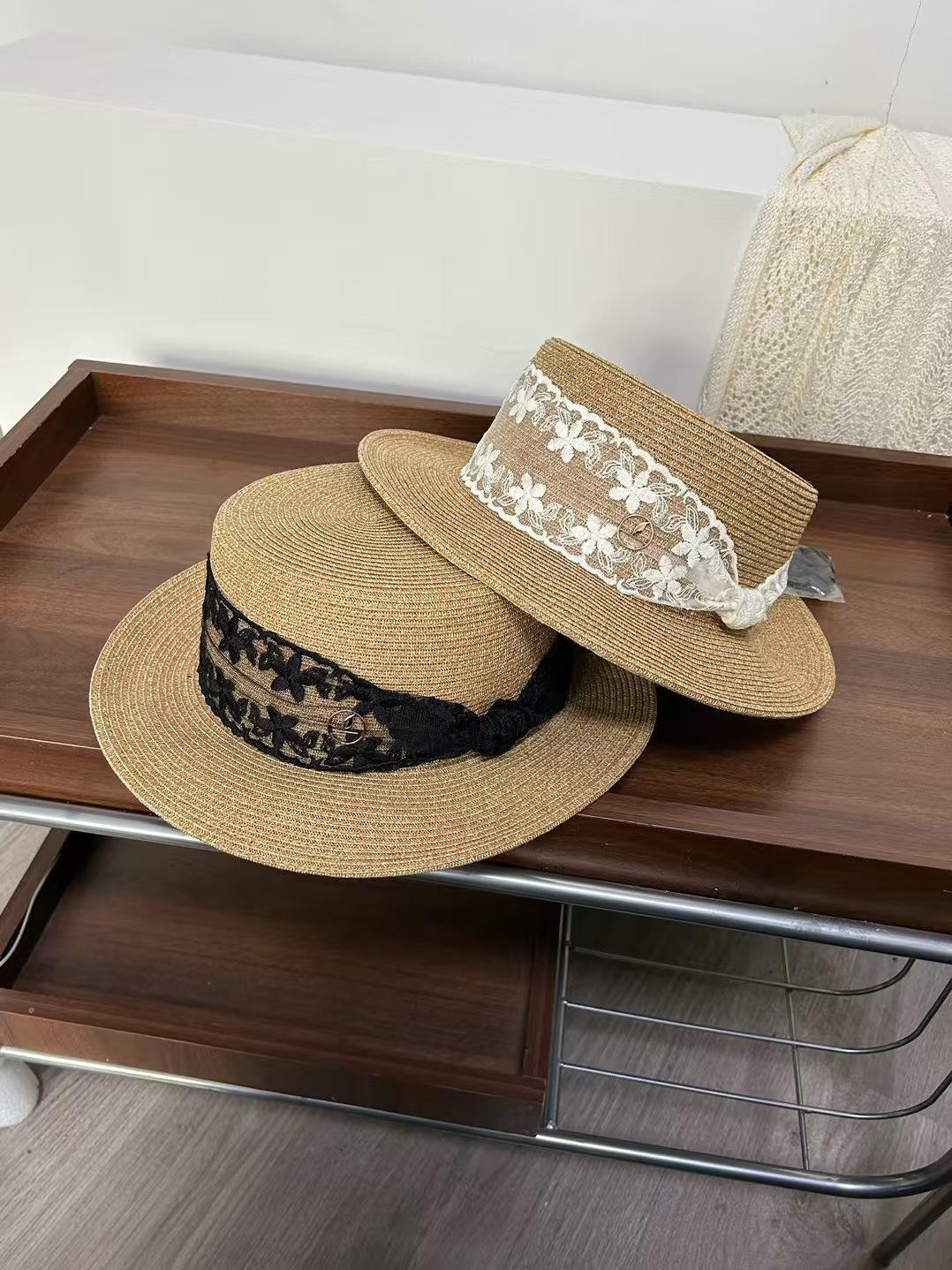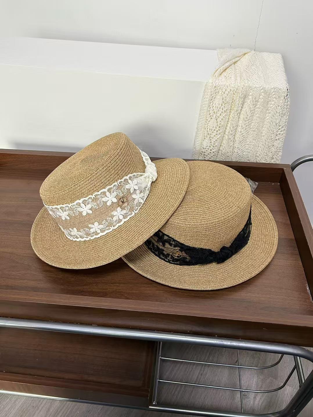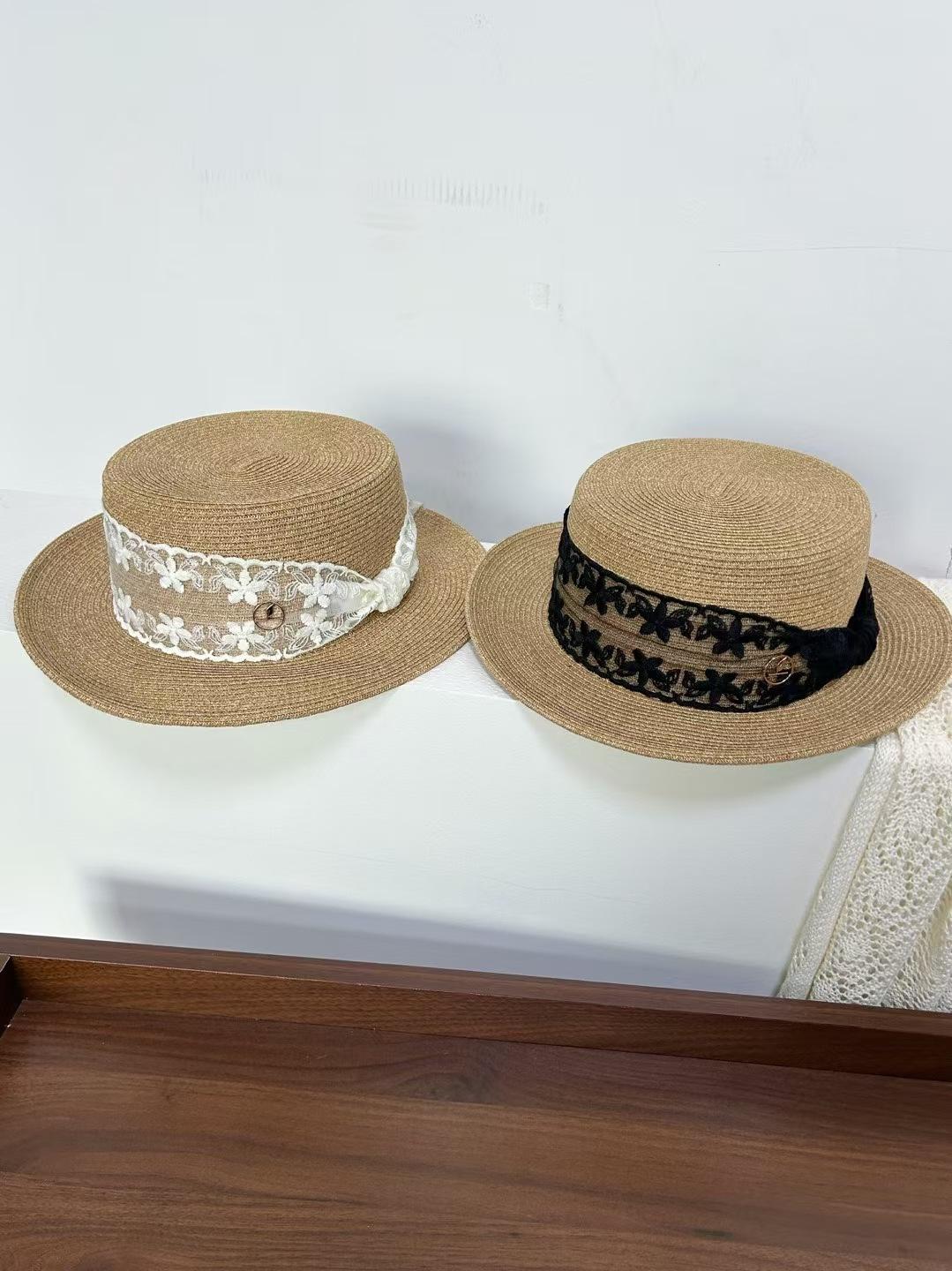 Sombrero de paja de ala ancha de copa plana tejido a mano para dama, protección solar de playa para vacaciones de verano, celebridad de internet, sombrero francés para dama