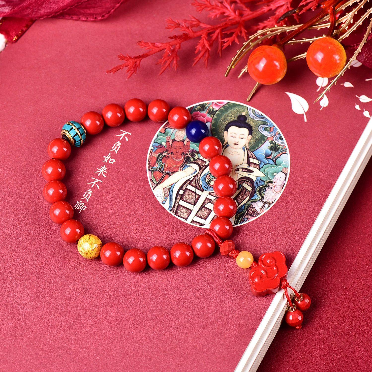 Pulsera de arena roja de alto contenido de Cinnabar Boutique Xiangyun Ruyi, diseño original, pulsera para mujer, fuente de joyería, fabricante