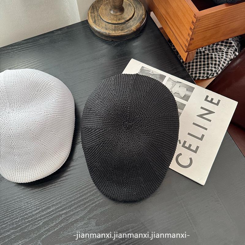 Boina de punto fino y transpirable de estilo coreano para mujer, de primavera y verano, de color liso, combinable con todo.