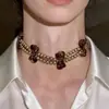 Collar de perlas estilo Spice Girl estilo americano con diseño de nicho vintage, collar de doble capa con lazo de leopardo, gargantilla, cadena de clavícula para mujer